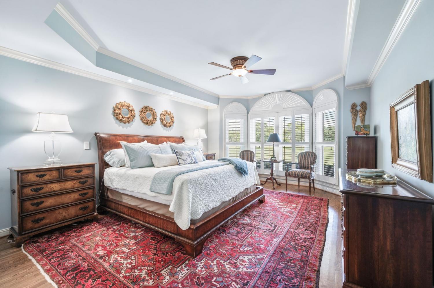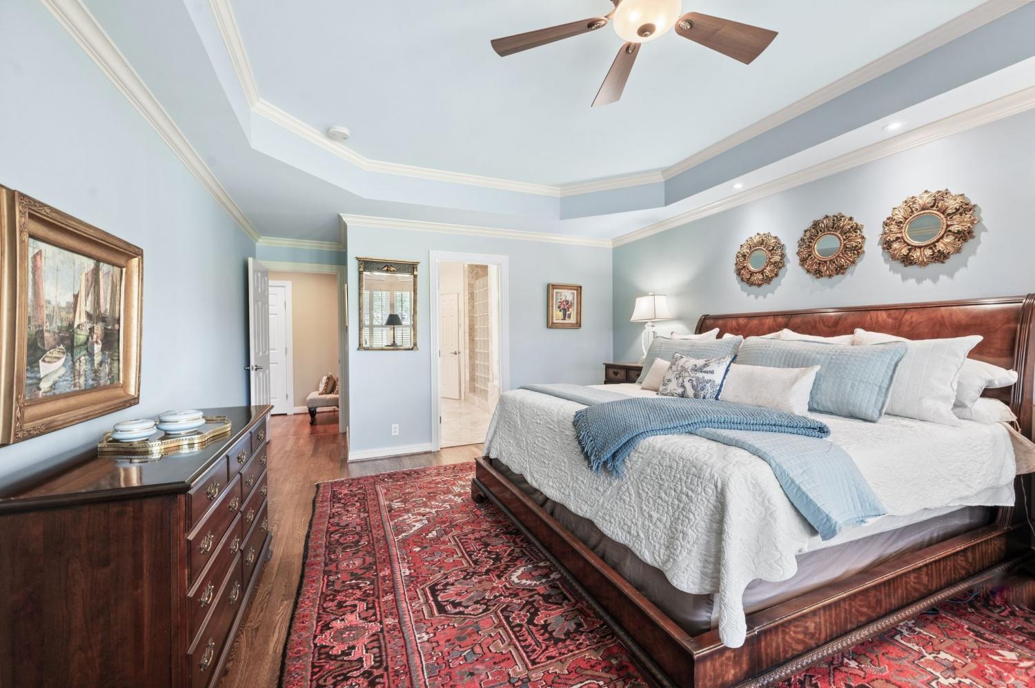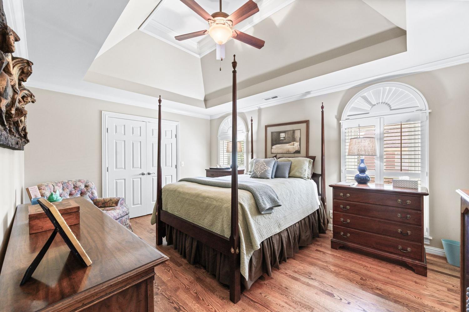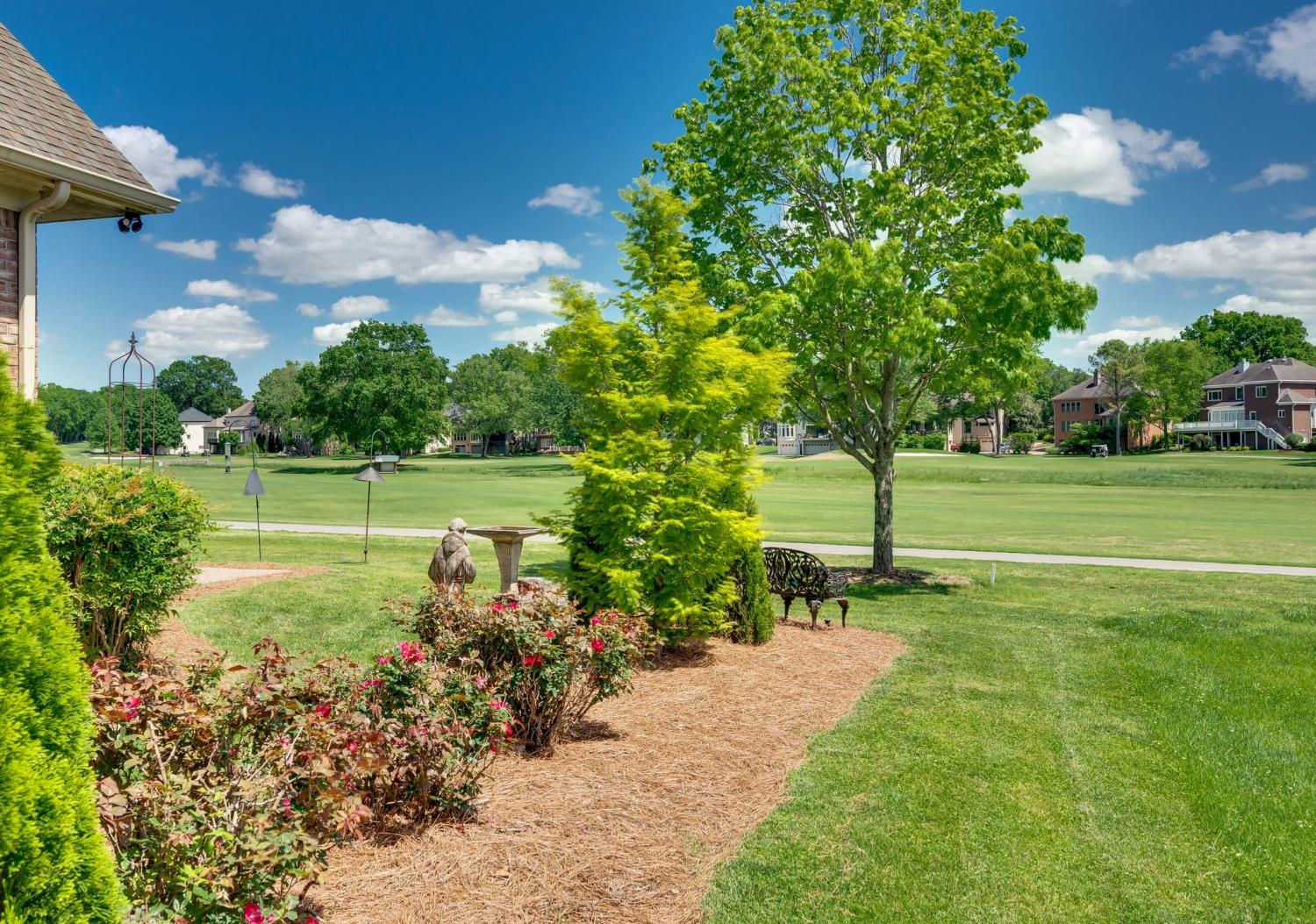 Prime location meets timeless elegance in this all-brick sanctuary, perfectly positioned on a highly sought-after cul-de-sac lot overlooking the 3rd and 8th fairways of Brentwood Country Club. Enjoy breathtaking golf course views and serene living at its finest. This beautifully maintained 4-bedroom, 5-bathroom home offers a thoughtfully designed floor plan that blends comfort, functionality, and classic charm. The oversized kitchen features a spacious eat-in area and is equipped with premium appliances, including a Sub-Zero refrigerator, Viking gas cooktop, custom drawer microwave, and double ovens—ideal for both everyday living and entertaining. The home boasts hardwood flooring throughout both levels, fresh interior paint, and abundant natural light. Each bedroom includes a private en-suite bath and walk-in closet, with custom built-ins featured in three of the bathrooms for added convenience and storage. The primary suite is a true retreat, complete with a custom California Closet system and new windows. Additional upgrades include a tankless water heater, plantation shutters throughout, and a fully renovated garage featuring vented air, custom built-in cabinetry, plantation shutters , and professionally installed epoxy flooring system. Designed for both formal and casual living, the home includes a formal living room and dining room, a spacious great room with a fireplace on the main level, and a large bonus room upstairs with a second fireplace. A dedicated flex space is perfect for a home office. The impressive two-story foyer and family room create a grand entrance, while the newly added patio awning enhances outdoor living and entertaining. This exceptional property offers unmatched quality, space, and views—truly a rare opportunity in one of Brentwood’s most desirable locations.