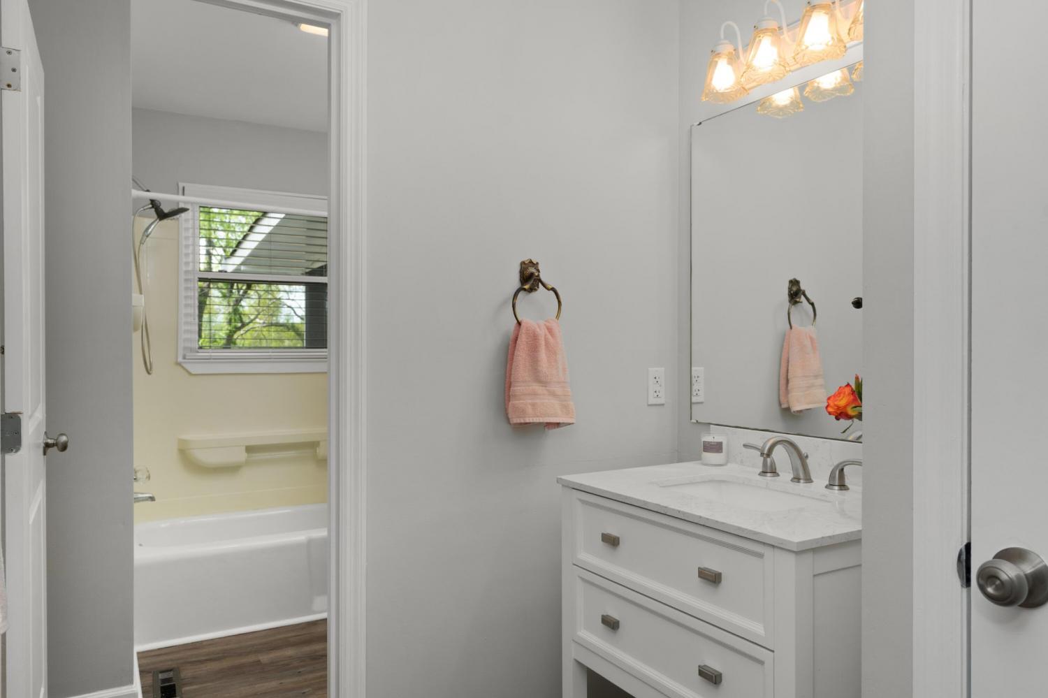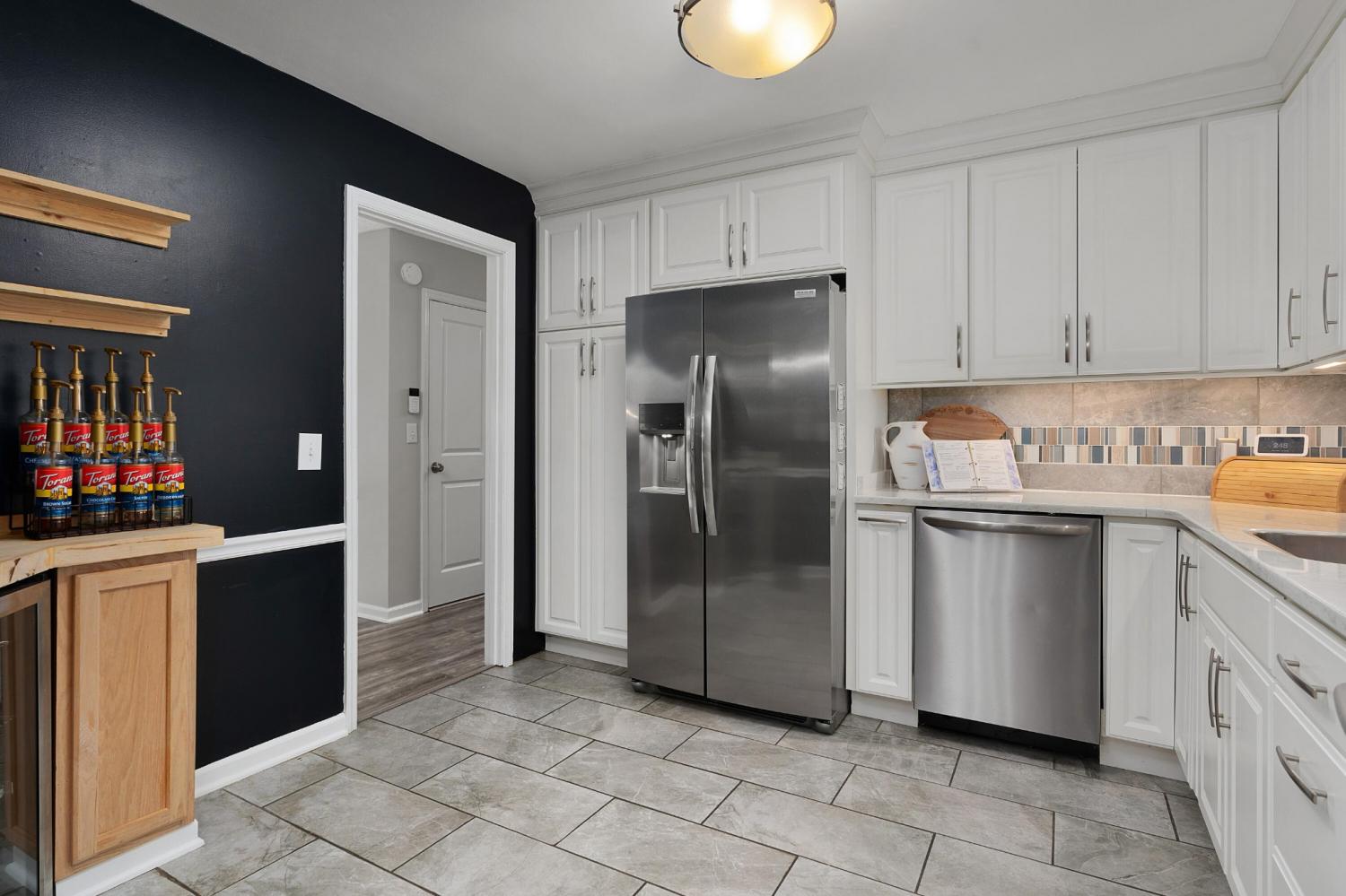 Updated 3 bedroom 2.5 with a finished basement and a pool in the established River Oaks neighborhood in Harrison approximately 20 minutes from downtown Chattanooga and close to schools, Chickamauga Lake and the shopping and restaurants of Hwy 58. This modernized split foyer home boasts LVP flooring, quartz countertops, all of the bedrooms on one level, a 2-bay garage, great outdoor living space and mature landscaping. The first floor features a spacious living room with an electric fireplace which adjoins the dining room and kitchen. The dining room has a sliding glass door to the large, screened porch overlooking the pool providing a great flow for indoor to outdoor entertaining and everyday living. The kitchen has quartz countertops, stainless appliances, pull-out pantry drawers and a new built-in coffee bar with a beverage fridge. The primary bedroom has 2 closets and opens to the primary bath with an elongated vanity with make-up area and a separate area with the tiled shower and commode. The 2 guest bedrooms share the use of the full hall bath with furniture-style vanity and a tub/shower combo. The basement level has zero large family/rec room with a gas fireplace, a laundry room with a half bath and access to the covered patio and pool with decking. There is plenty of yard space in front and in back for your furry friends and outdoor fun, so please call for more information and to schedule your private showing today. Information is deemed reliable but not guaranteed. Buyer to verify any and all information they deem important.
