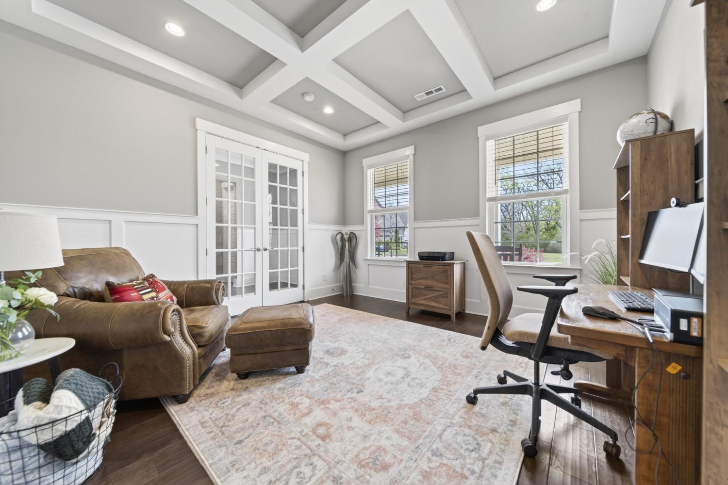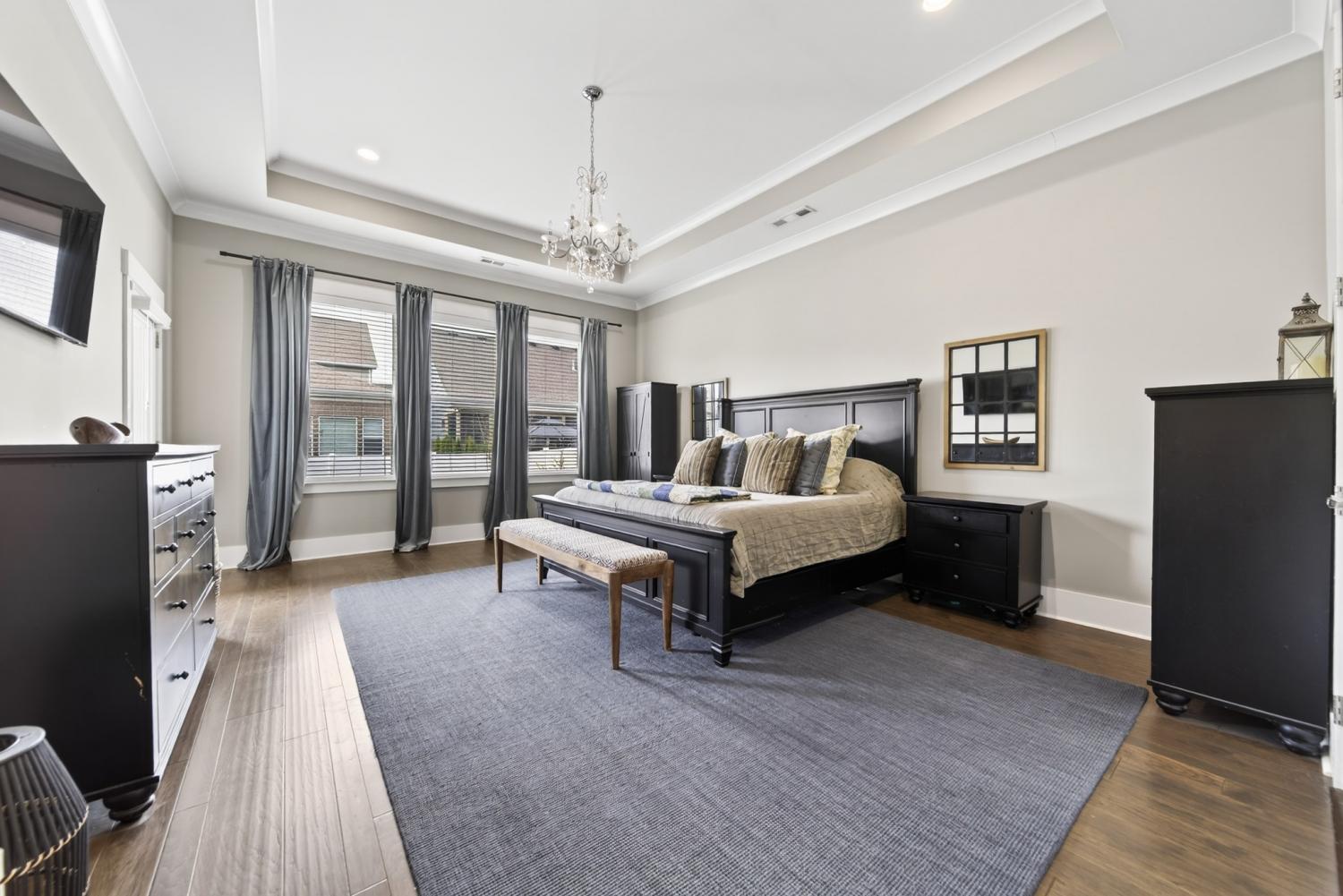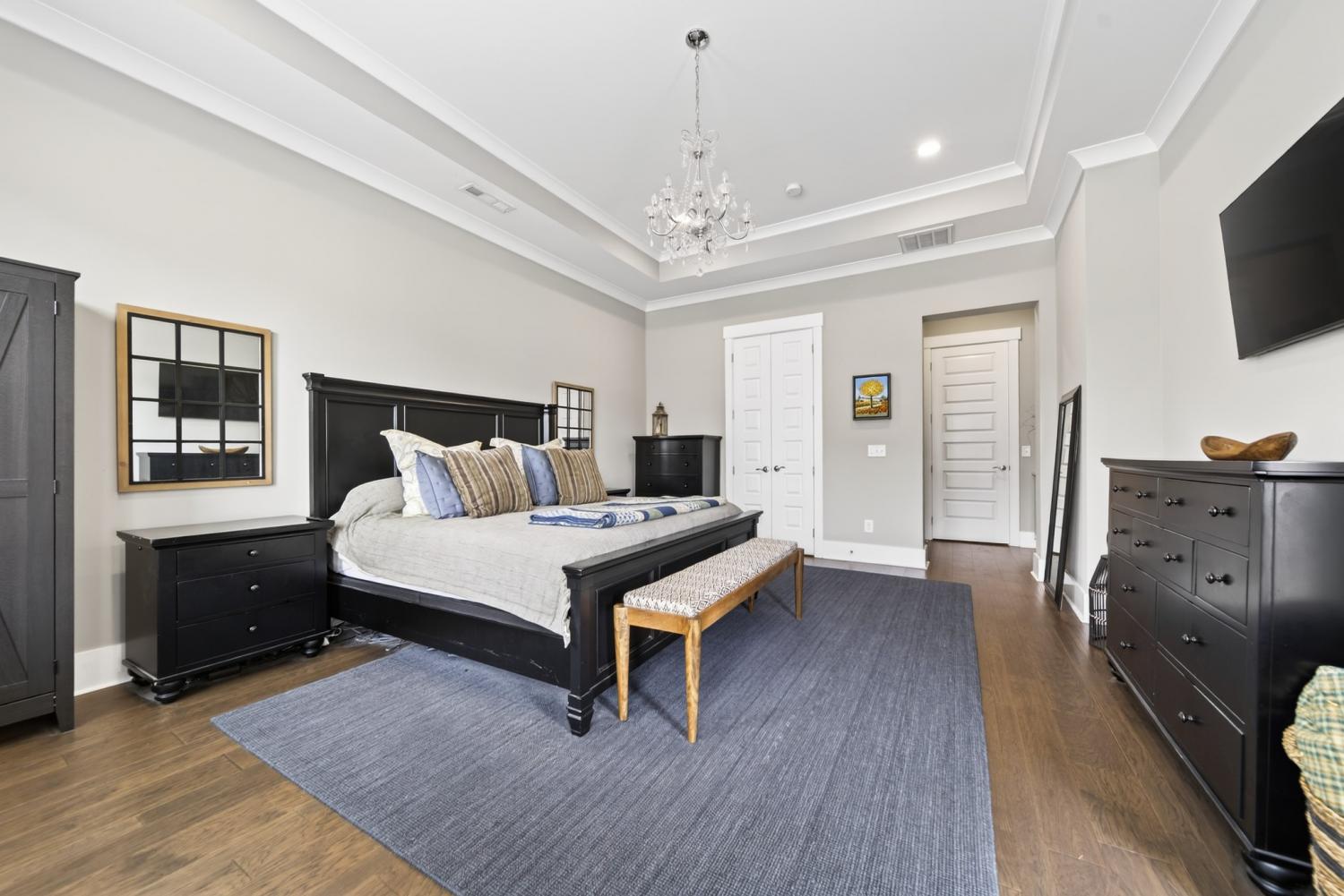 Impeccably maintained, all-brick home, gracefully positioned on one of the larger lots/homesites in Hendersonville's premier luxury enclave, Durham Farms. Thoughtfully designed with refined finishes and timeless style, this residence offers an exceptional open concept layout with expansive living and entertaining spaces throughout. The gourmet chef's kitchen is both stunning and functional, appointed with premium stainless steel appliances, double ovens, an oversized island, and walk-in pantry. An additional "second kitchen" utility room with full size refrigerator, tons of cabinets and work island is adjoined thru a sliding barn door...all seamlessly flowing into the dining area and the grand living room, which features coffered ceilings, custom floating shelves and a showplace 10 ft. floor to ceiling stone gas fireplace. There is a an additional office on the main level and a large bonus room upstairs on the 2nd level with walk-in storage. The home offers four generously sized bedrooms, each with its own private en-suite bath and large walk-in closet, ensuring both comfort and privacy. The main level hosts two bedrooms, including the sizable primary retreat with patio walk-out door, a custom designed closet, spa-like bath, designer tile shower, and dual vanities. Outdoor living includes beautifully landscaped grounds, inground irrigation system, a fully fenced private backyard, two covered porches and a an inviting patio, perfect for relaxing or grilling out. Residents of Durham Farms enjoy resort - style amenities including an elegant clubhouse, pool, state of the art fitness center, scenic walking trails, green spaces, and dog parks-all just a short drive to downtown Nashville. This home blends luxury, space and convenience in one exceptional package.