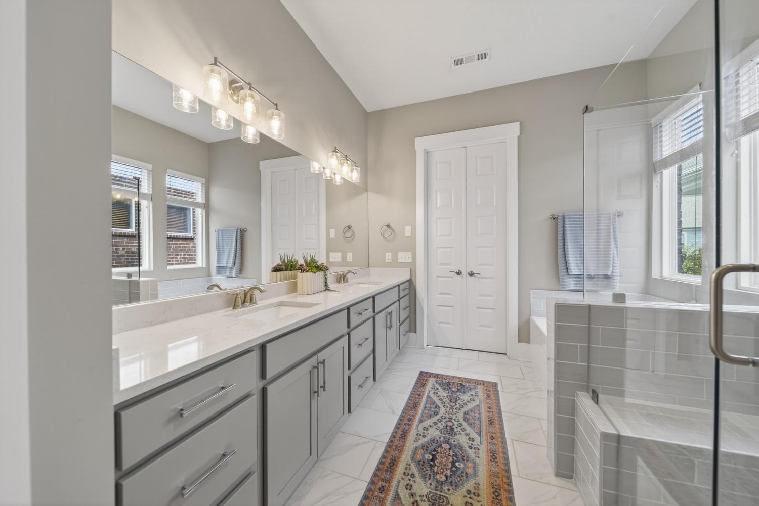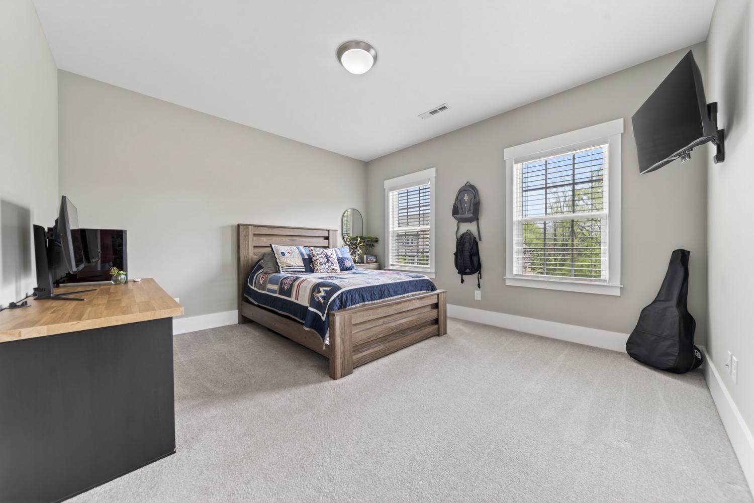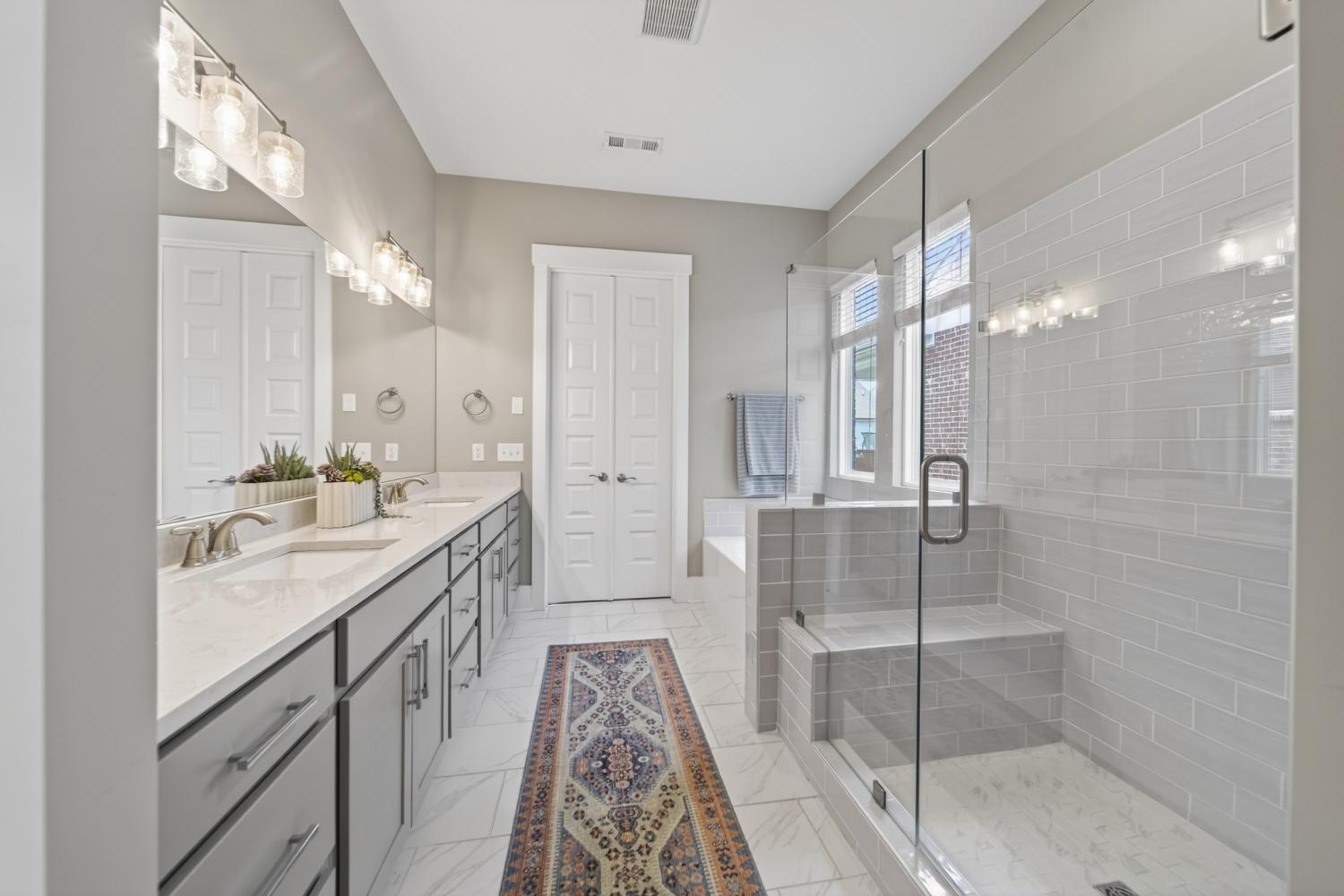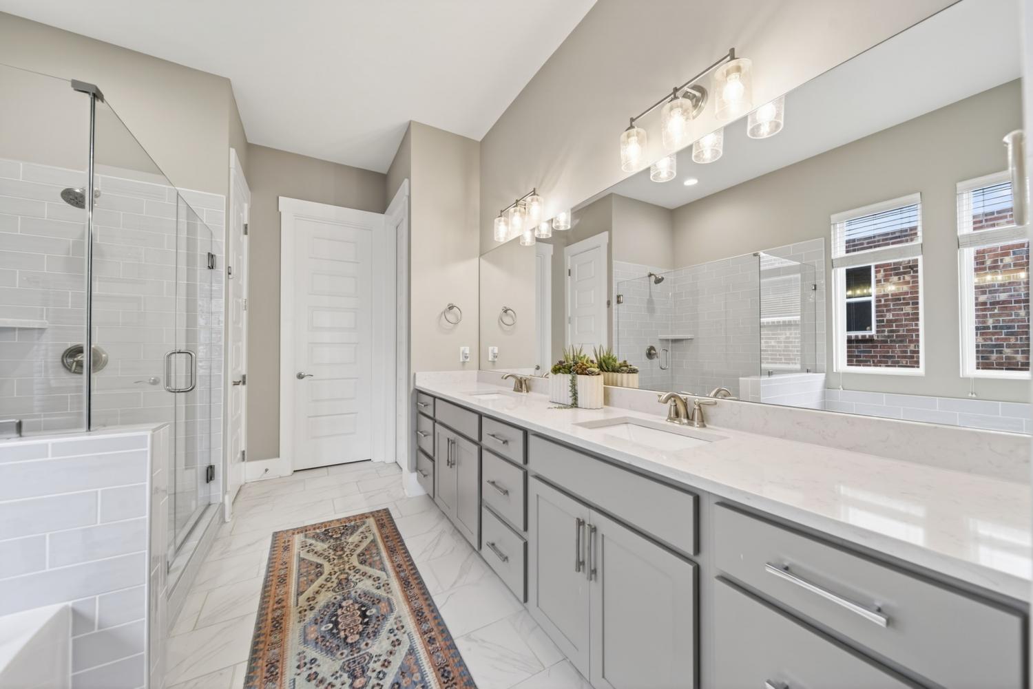 Impeccably maintained, all-brick home, gracefully positioned on one of the larger lots/homesites in Hendersonville's premier luxury enclave, Durham Farms. Thoughtfully designed with refined finishes and timeless style, this residence offers an exceptional open concept layout with expansive living and entertaining spaces throughout. The gourmet chef's kitchen is both stunning and functional, appointed with premium stainless steel appliances, double ovens, an oversized island, and walk-in pantry. An additional "second kitchen" utility room with full size refrigerator, tons of cabinets and work island is adjoined thru a sliding barn door...all seamlessly flowing into the dining area and the grand living room, which features coffered ceilings, custom floating shelves and a showplace 10 ft. floor to ceiling stone gas fireplace. There is a an additional office on the main level and a large bonus room upstairs on the 2nd level with walk-in storage. The home offers four generously sized bedrooms, each with its own private en-suite bath and large walk-in closet, ensuring both comfort and privacy. The main level hosts two bedrooms, including the sizable primary retreat with patio walk-out door, a custom designed closet, spa-like bath, designer tile shower, and dual vanities. Outdoor living includes beautifully landscaped grounds, inground irrigation system, a fully fenced private backyard, two covered porches and a an inviting patio, perfect for relaxing or grilling out. Residents of Durham Farms enjoy resort - style amenities including an elegant clubhouse, pool, state of the art fitness center, scenic walking trails, green spaces, and dog parks-all just a short drive to downtown Nashville. This home blends luxury, space and convenience in one exceptional package.