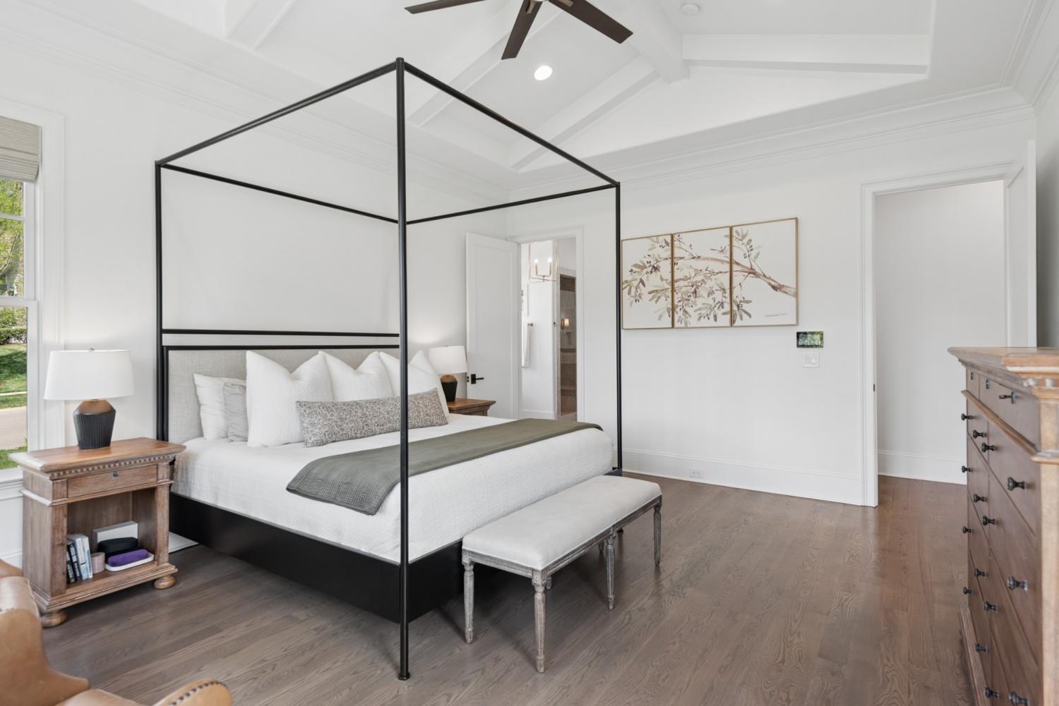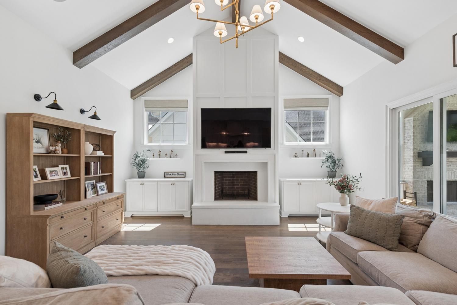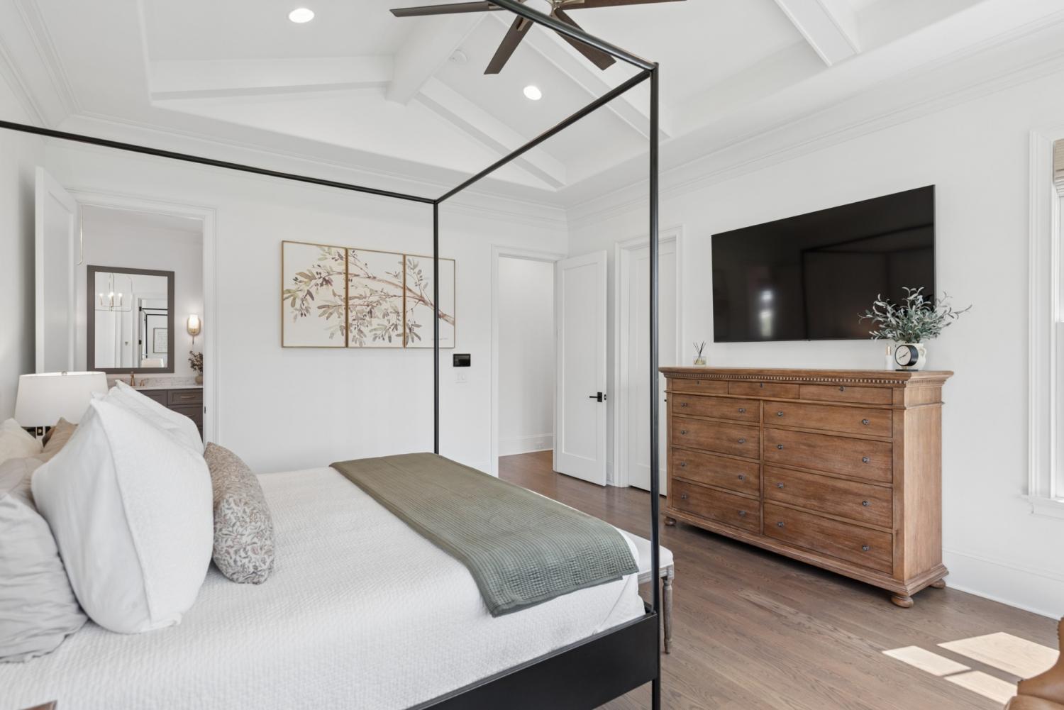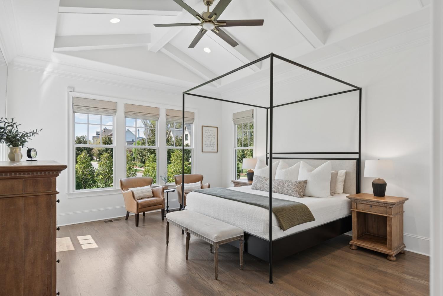 A beautifully appointed and designed home offering 4,096 square feet of open living on a coveted corner lot in The Grove, with Grove community amenities within walking distance. Immaculately cared for with a bright and open floor plan. Five bedrooms, five full baths, and two half baths. Corner homesite with beautiful morning and evening views from your outdoor living area overlooking a meandoring creek along the backside of property. Interior highlights include wide-plank hardwoods, designer lighting, open-concept chef’s kitchen with a view into the vaulted great room featuring exposed beams and a fireplace, main level primary suite, main level guest bedroom and/or office, additional front entrance into the mudroom with direct access to the adjacent garage, laundry, pantry and kitchen. The garage is a two-plus car garage with extended space for storage or a golf cart. Second level living includes three ensuite bedrooms, large open concept bonus room and plenty of storage! This homes open-spacious floor plan and outdoor living space is perfect for entertaining and includes covered porch with fireplace and retractable shades leading onto a sizeable patio, outdoor grilling area, and ample room for entertaining. The level backyard provides space to enjoy the outdoors. This home is walking distance to The Grove Magnolia Park amenities, including: The Bridge Bar and Restaurant, Pool and Tennis/pickleball facilities. This home is also equipped with a Control 4 system, doorbell, security system and speakers throughout the home.