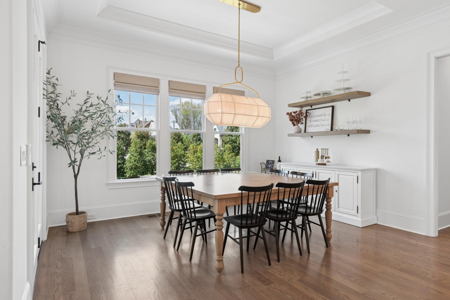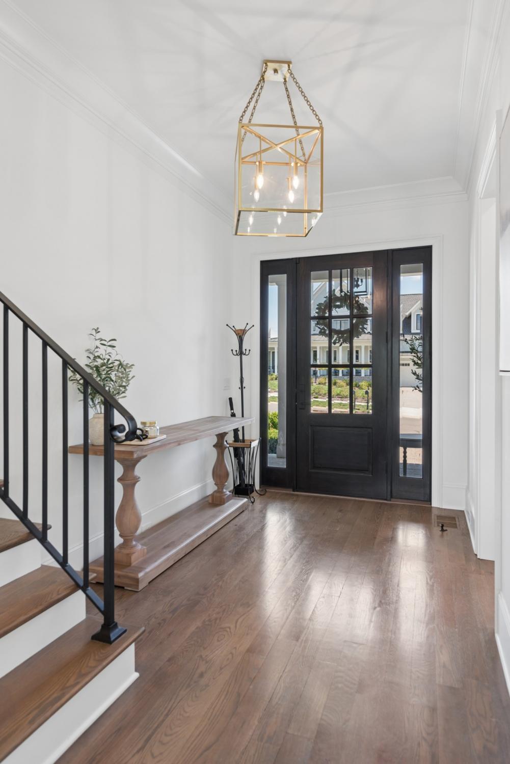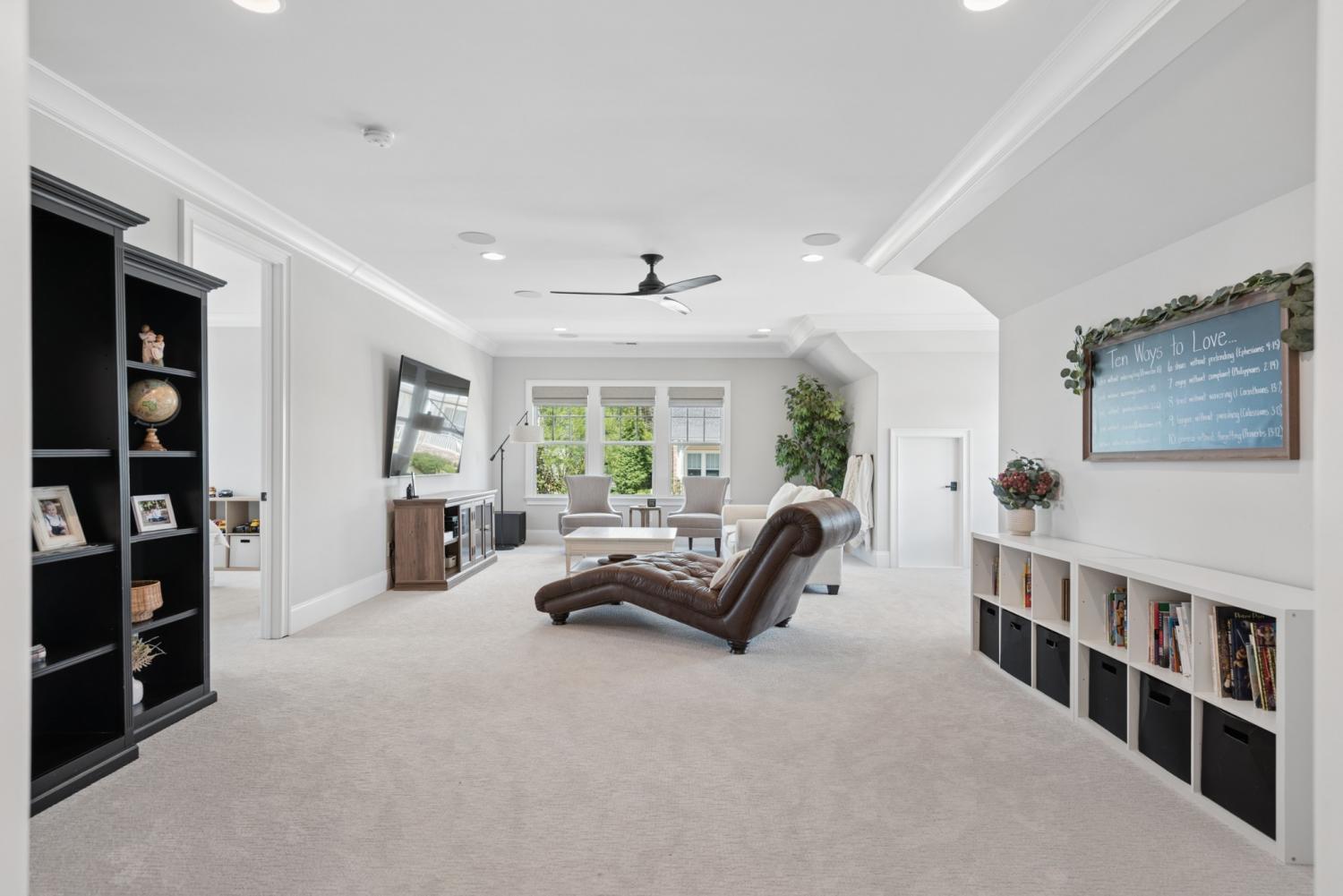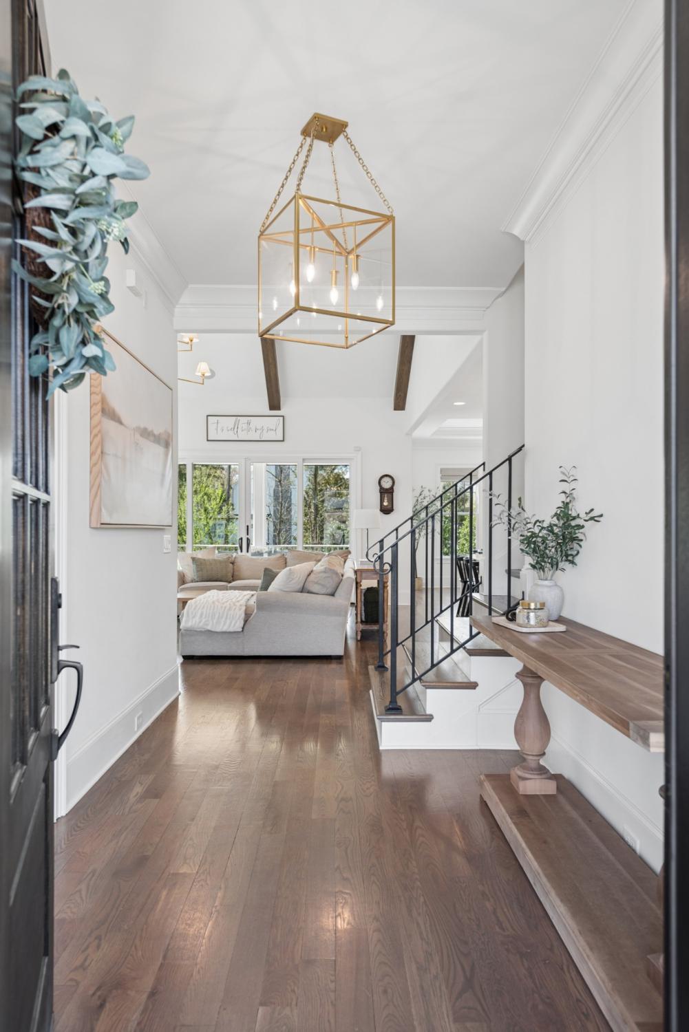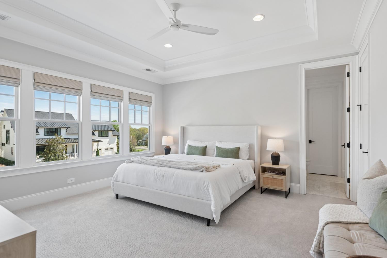 A beautifully appointed and designed home offering 4,096 square feet of open living on a coveted corner lot in The Grove, with Grove community amenities within walking distance. Immaculately cared for with a bright and open floor plan. Five bedrooms, five full baths, and two half baths. Corner homesite with beautiful morning and evening views from your outdoor living area overlooking a meandoring creek along the backside of property. Interior highlights include wide-plank hardwoods, designer lighting, open-concept chef’s kitchen with a view into the vaulted great room featuring exposed beams and a fireplace, main level primary suite, main level guest bedroom and/or office, additional front entrance into the mudroom with direct access to the adjacent garage, laundry, pantry and kitchen. The garage is a two-plus car garage with extended space for storage or a golf cart. Second level living includes three ensuite bedrooms, large open concept bonus room and plenty of storage! This homes open-spacious floor plan and outdoor living space is perfect for entertaining and includes covered porch with fireplace and retractable shades leading onto a sizeable patio, outdoor grilling area, and ample room for entertaining. The level backyard provides space to enjoy the outdoors. This home is walking distance to The Grove Magnolia Park amenities, including: The Bridge Bar and Restaurant, Pool and Tennis/pickleball facilities. This home is also equipped with a Control 4 system, doorbell, security system and speakers throughout the home.