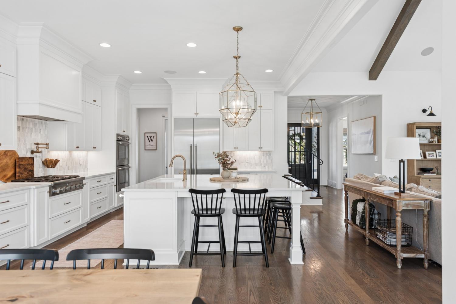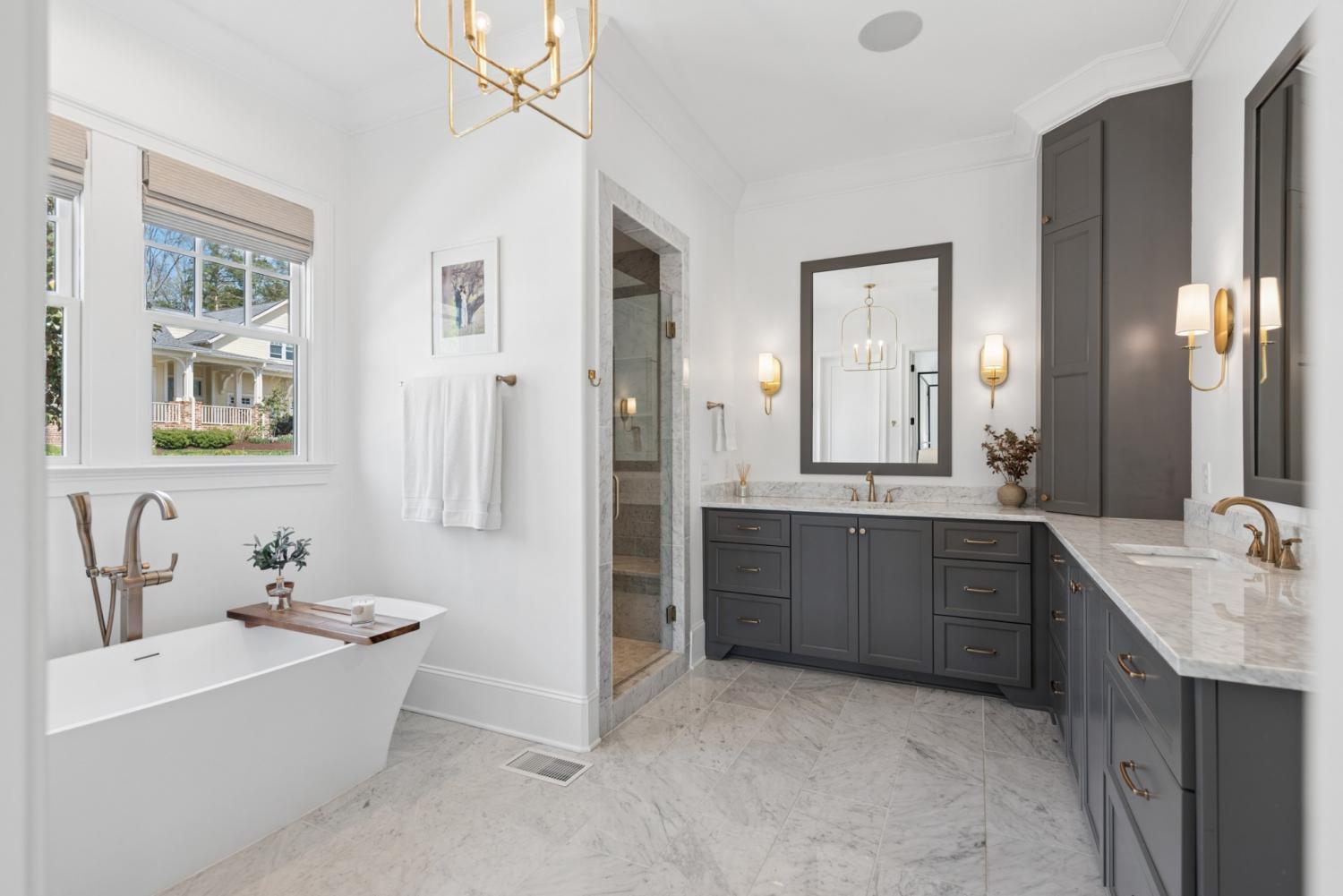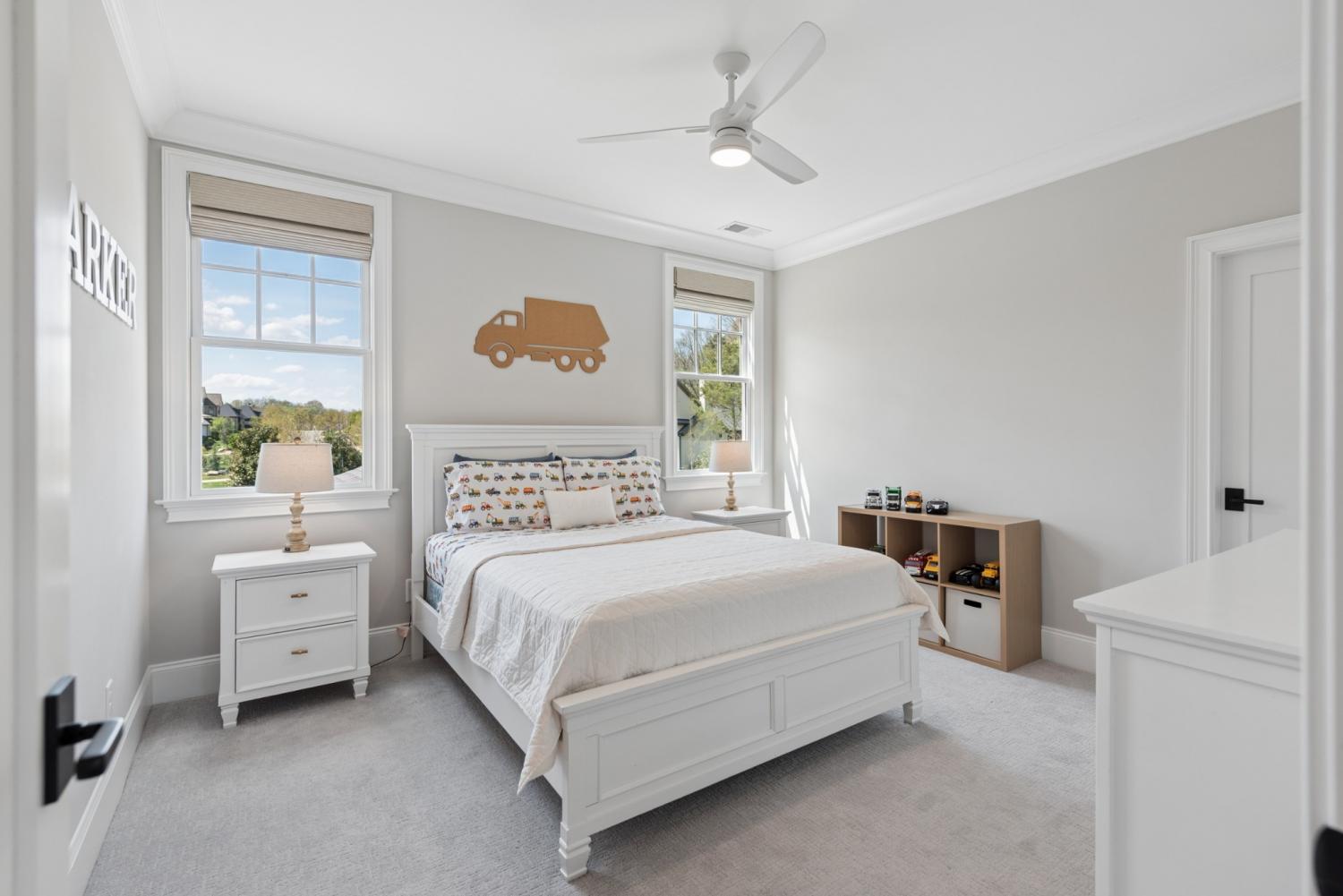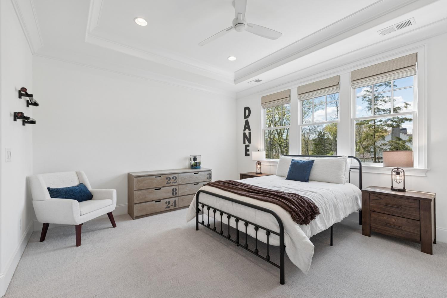 A beautifully appointed and designed home offering 4,096 square feet of open living on a coveted corner lot in The Grove, with Grove community amenities within walking distance. Immaculately cared for with a bright and open floor plan. Five bedrooms, five full baths, and two half baths. Corner homesite with beautiful morning and evening views from your outdoor living area overlooking a meandoring creek along the backside of property. Interior highlights include wide-plank hardwoods, designer lighting, open-concept chef’s kitchen with a view into the vaulted great room featuring exposed beams and a fireplace, main level primary suite, main level guest bedroom and/or office, additional front entrance into the mudroom with direct access to the adjacent garage, laundry, pantry and kitchen. The garage is a two-plus car garage with extended space for storage or a golf cart. Second level living includes three ensuite bedrooms, large open concept bonus room and plenty of storage! This homes open-spacious floor plan and outdoor living space is perfect for entertaining and includes covered porch with fireplace and retractable shades leading onto a sizeable patio, outdoor grilling area, and ample room for entertaining. The level backyard provides space to enjoy the outdoors. This home is walking distance to The Grove Magnolia Park amenities, including: The Bridge Bar and Restaurant, Pool and Tennis/pickleball facilities. This home is also equipped with a Control 4 system, doorbell, security system and speakers throughout the home.