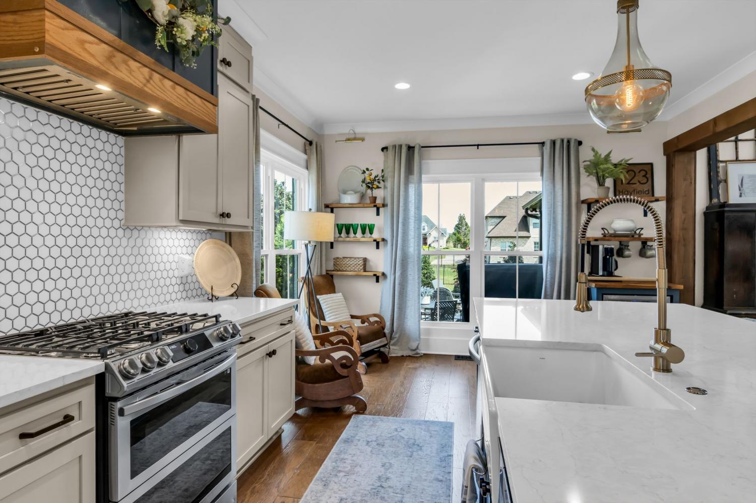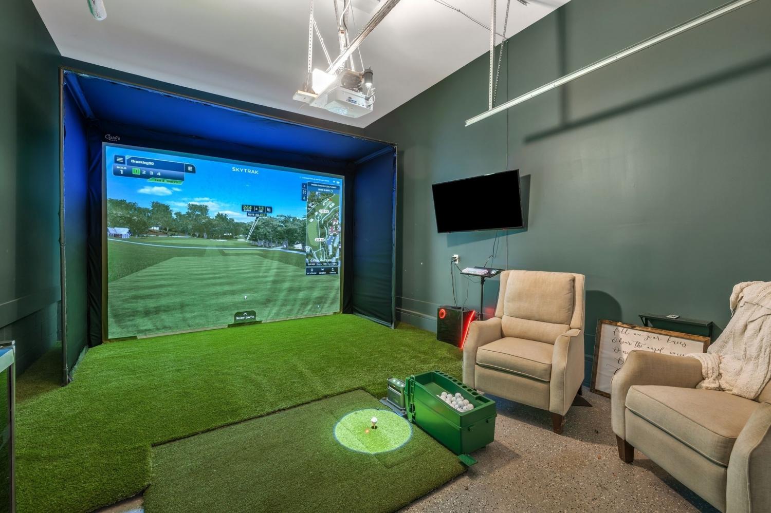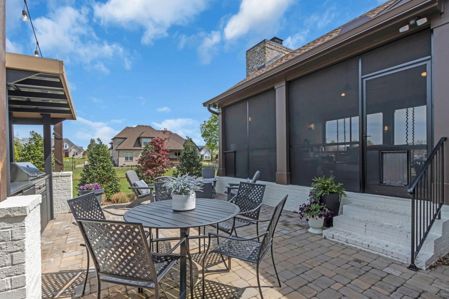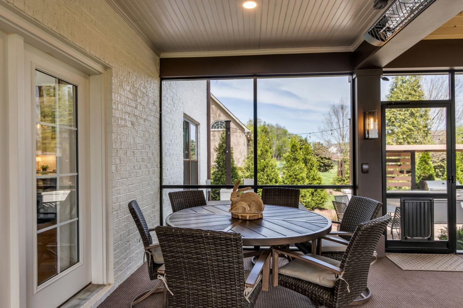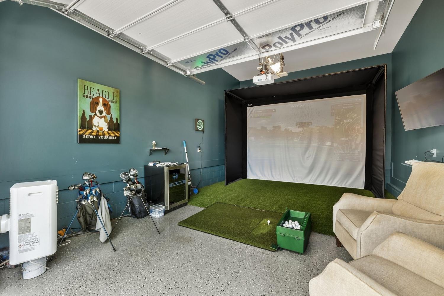 Welcome to your happy place—where every detail has been thoughtfully designed for comfort and convenience. This beautiful home features exceptional finishes and a layout ideal for both everyday living and entertaining. The open kitchen boasts quartz countertops, farmhouse sink, a large island with cabinet storage access on both sides. Additional highlights include a coffee station with beverage cooler, coffee nook, under-counter microwave, double ovens, and a gas cooktop. A stunning cased opening frames the living room, creating an open yet defined space perfect for entertaining or cozy evenings by the fireplace. The primary suite is a private retreat with an adjoining flex space ideal for a home office, nursery, reading nook, or exercise room. Your bathroom will feel like a trip to the spa and the spacious walk in closet is outfitted for maximum storage and organization. Hardwood floors run throughout the main level, as well as the stair treads, catwalk, and hallways. Upstairs offers three additional bedrooms, two full baths, a secondary laundry space, and an expansive bonus room currently used as a bedroom. All bathrooms feature tiled showers and floors with quartz counters, enhanced by upgraded lighting and plumbing fixtures. The large rear ensuite bedroom could easily serve as a second primary suite and includes abundant floored walk-out attic storage. Outside the 20x30 living space is exceptional, featuring a wood-burning FP with gas starter & overhead heaters for year-round enjoyment. A covered patio leads to a fully equipped outdoor kitchen with beverage cooler. The large,level lot features, low voltage landscape lighting & irrigation system. Single garage bay is currently outfitted as a golf simulator complete with portable heating and cooling equipment. Equipment does not convey but is negotiable, or the sellers will convert the space back to a traditional third-car garage. Water softening system, garage fridge&freezer do not convey.Tankless water heater