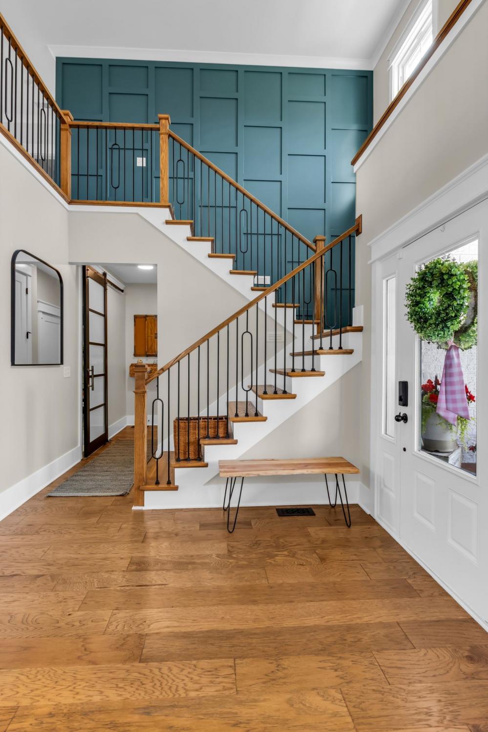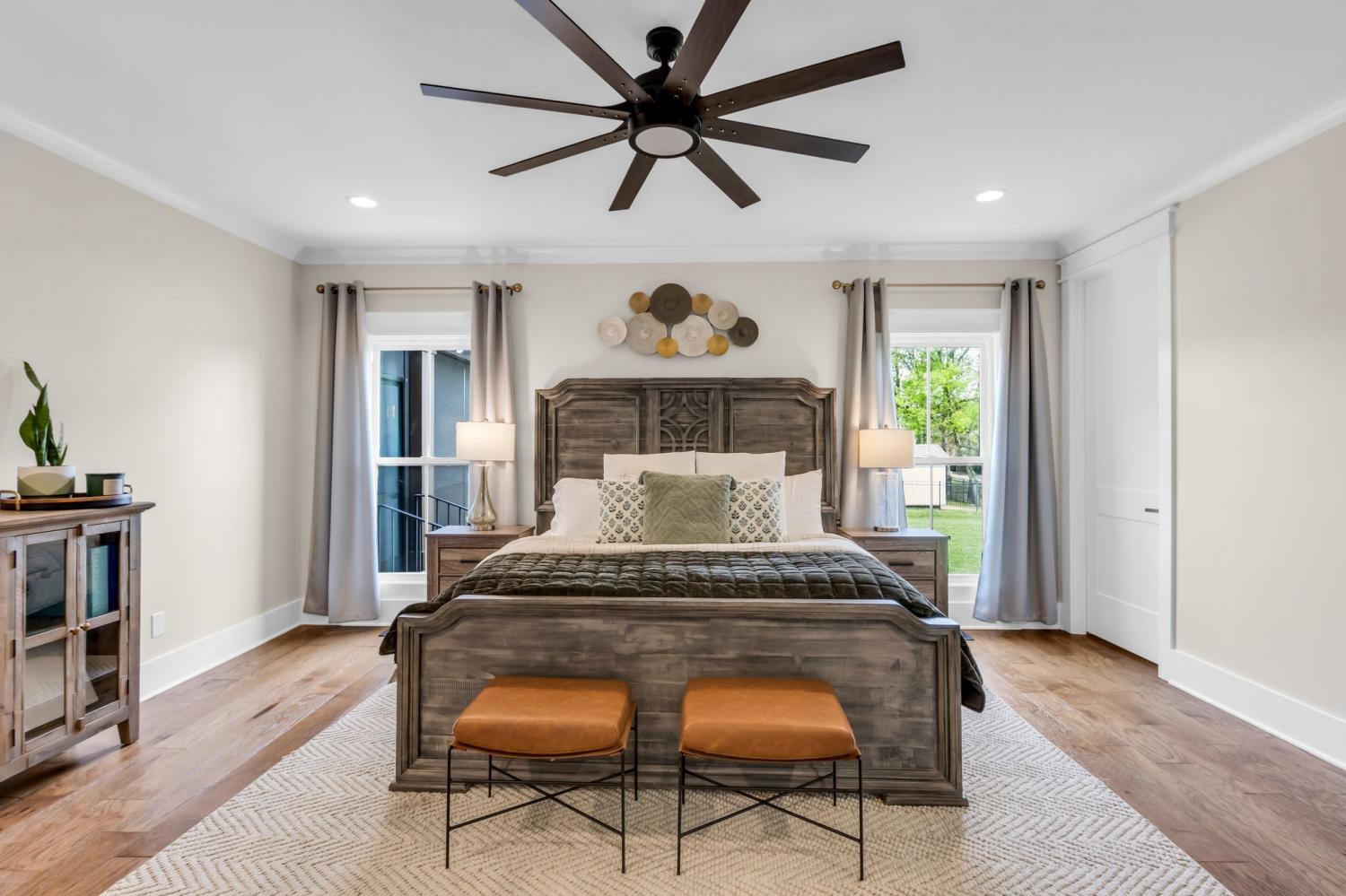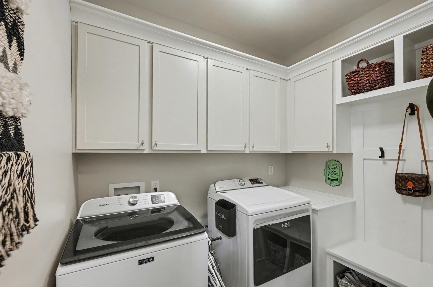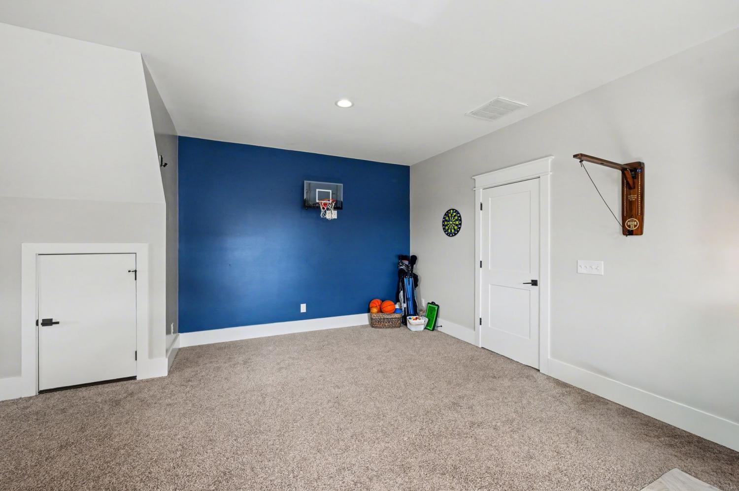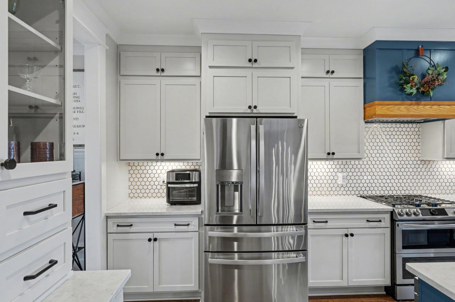 Welcome to your happy place—where every detail has been thoughtfully designed for comfort and convenience. This beautiful home features exceptional finishes and a layout ideal for both everyday living and entertaining. The open kitchen boasts quartz countertops, farmhouse sink, a large island with cabinet storage access on both sides. Additional highlights include a coffee station with beverage cooler, coffee nook, under-counter microwave, double ovens, and a gas cooktop. A stunning cased opening frames the living room, creating an open yet defined space perfect for entertaining or cozy evenings by the fireplace. The primary suite is a private retreat with an adjoining flex space ideal for a home office, nursery, reading nook, or exercise room. Your bathroom will feel like a trip to the spa and the spacious walk in closet is outfitted for maximum storage and organization. Hardwood floors run throughout the main level, as well as the stair treads, catwalk, and hallways. Upstairs offers three additional bedrooms, two full baths, a secondary laundry space, and an expansive bonus room currently used as a bedroom. All bathrooms feature tiled showers and floors with quartz counters, enhanced by upgraded lighting and plumbing fixtures. The large rear ensuite bedroom could easily serve as a second primary suite and includes abundant floored walk-out attic storage. Outside the 20x30 living space is exceptional, featuring a wood-burning FP with gas starter & overhead heaters for year-round enjoyment. A covered patio leads to a fully equipped outdoor kitchen with beverage cooler. The large,level lot features, low voltage landscape lighting & irrigation system. Single garage bay is currently outfitted as a golf simulator complete with portable heating and cooling equipment. Equipment does not convey but is negotiable, or the sellers will convert the space back to a traditional third-car garage. Water softening system, garage fridge&freezer do not convey.Tankless water heater