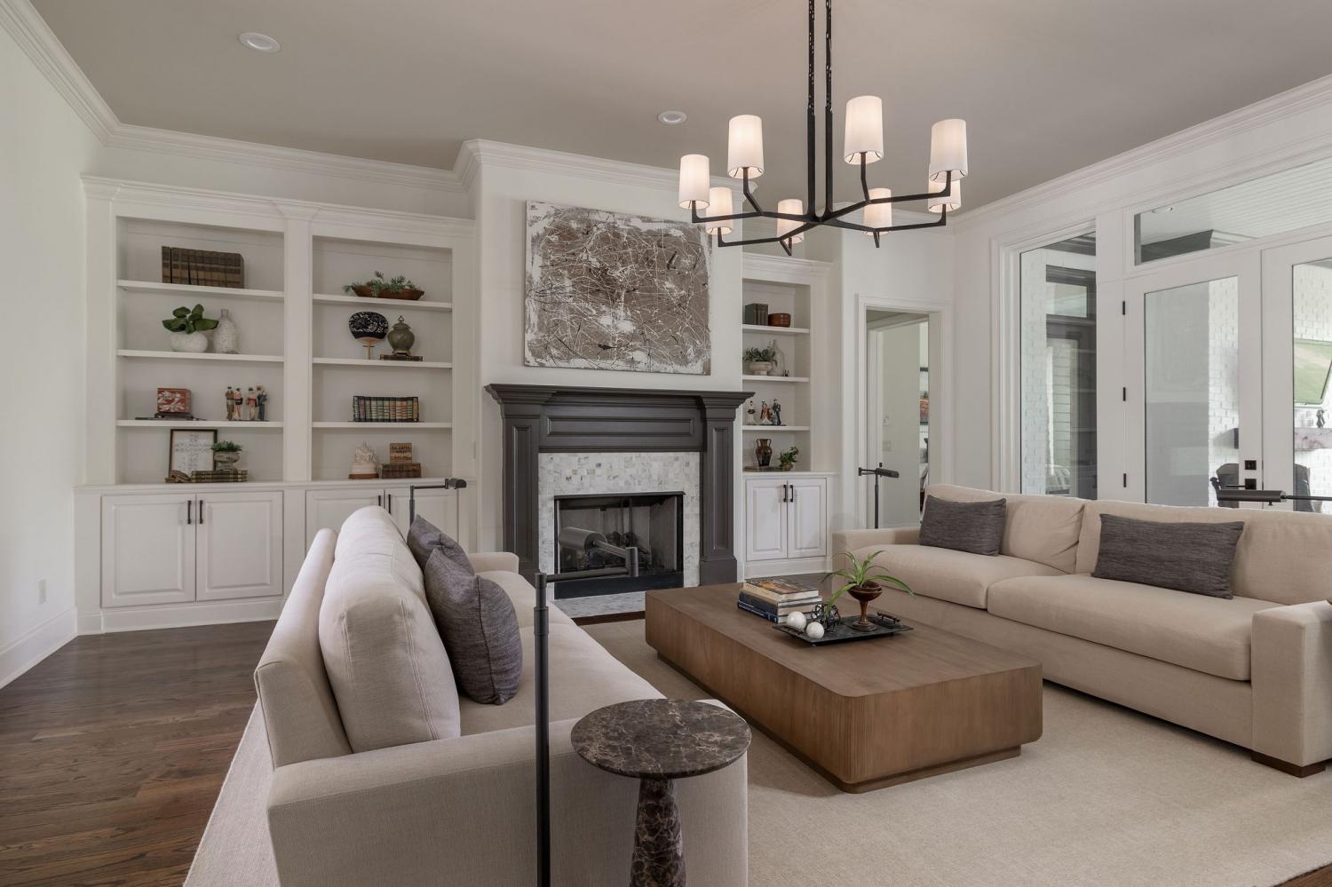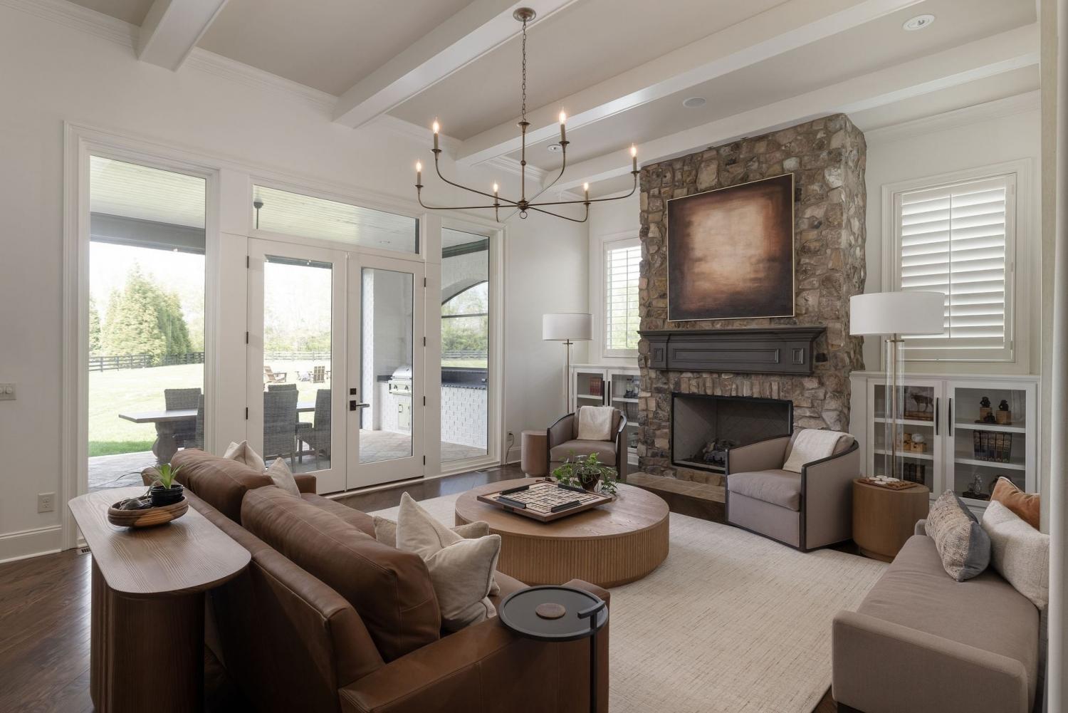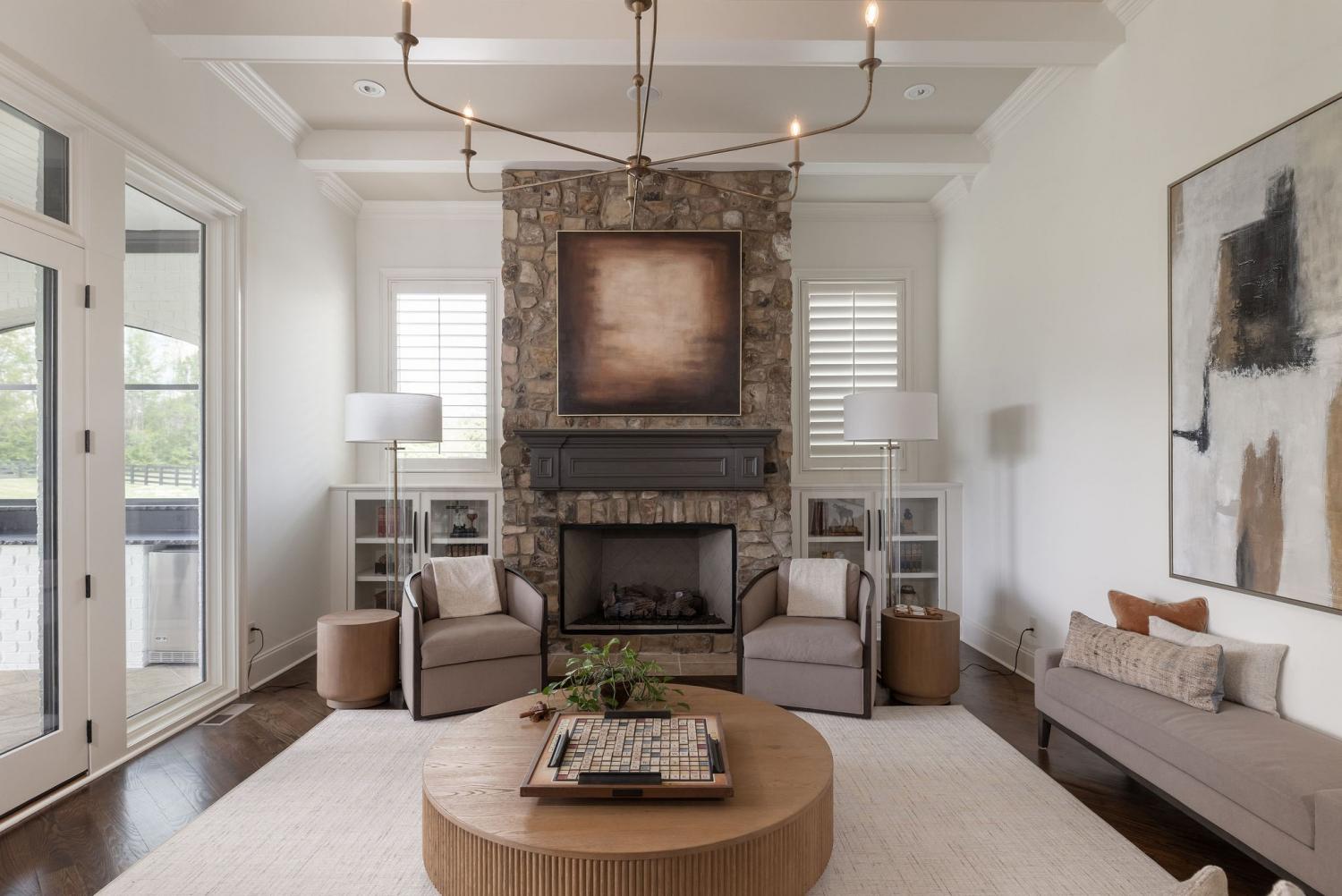 Stunning renovation located in the sought-after Hillsboro Cove community, just a short drive from Historic Downtown Franklin. Situated on over an acre, this meticulously crafted residence offers 5 bedrooms and 5.5 baths, with the primary and guest suites conveniently located on the main level. The heart of the home is the upgraded Chef’s Kitchen, featuring a striking barrel ceiling, Visual Comfort lighting, Kitchen Aid appliances, oversized Island, a hidden office/pantry, and ample storage. Thoughtfully designed for both comfort and entertaining, the main level boasts an elegant dining room with Cole and Son wallpaper, color-drenched office with coffered ceilings and built-ins, spacious living room, a cozy den with stone fireplace, built-ins and bar area. Hardwood Floors throughout the main level. Upstairs, a spacious rec room, flex space, and a theater room provide endless opportunities for relaxation and fun. Step outside to an inviting covered patio, perfect for year-round outdoor living. Enjoy al fresco dining with a built-in gas grill, gather around the fireplace on cool evenings, and take advantage of retractable screens for ultimate comfort. With four garage spaces, abundant closet and storage space, and zoning for Williamson County’s top-rated schools, this exceptional home is truly a must-see! Pool plans designed by JSLA Designs and available upon request!