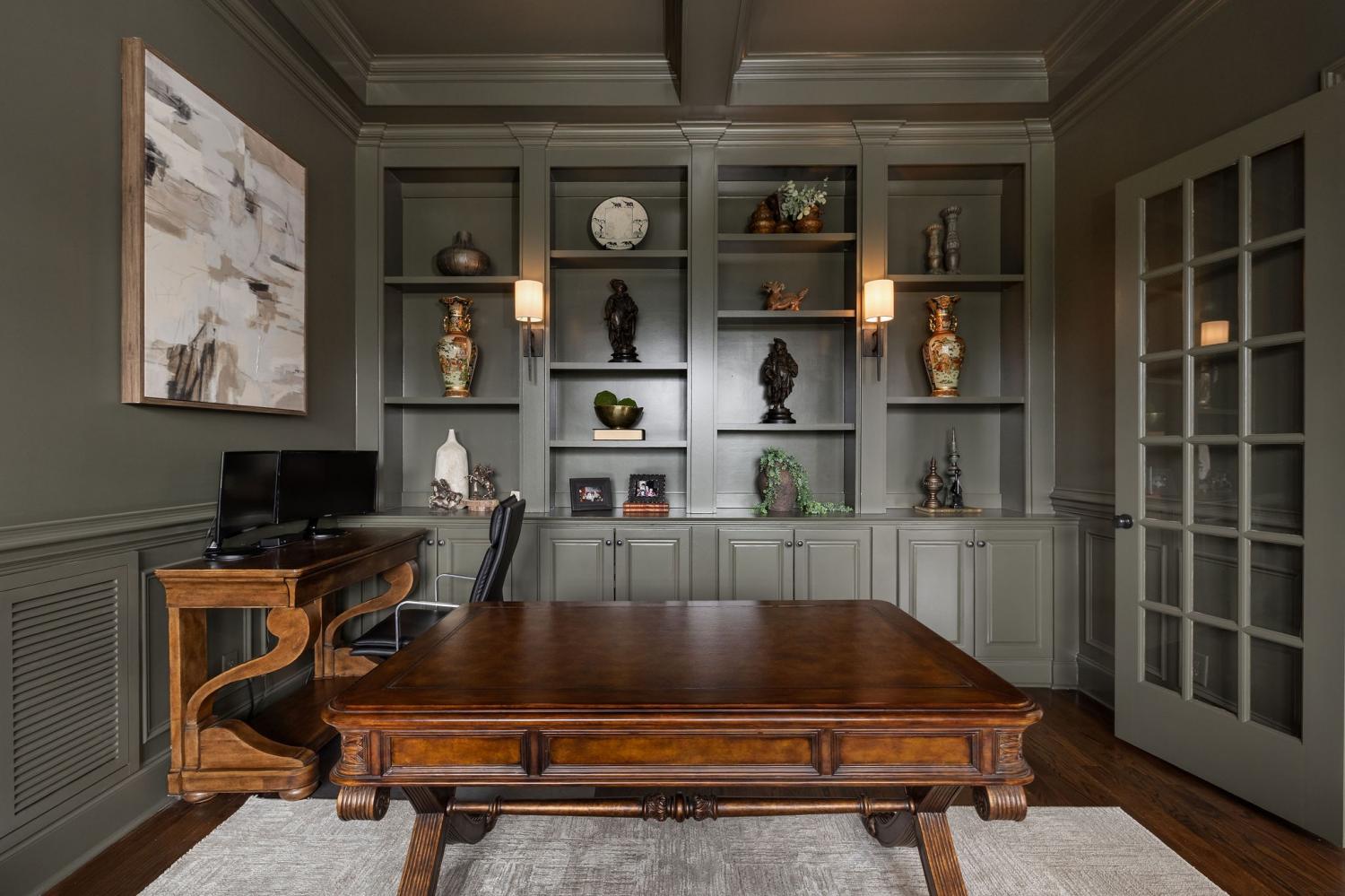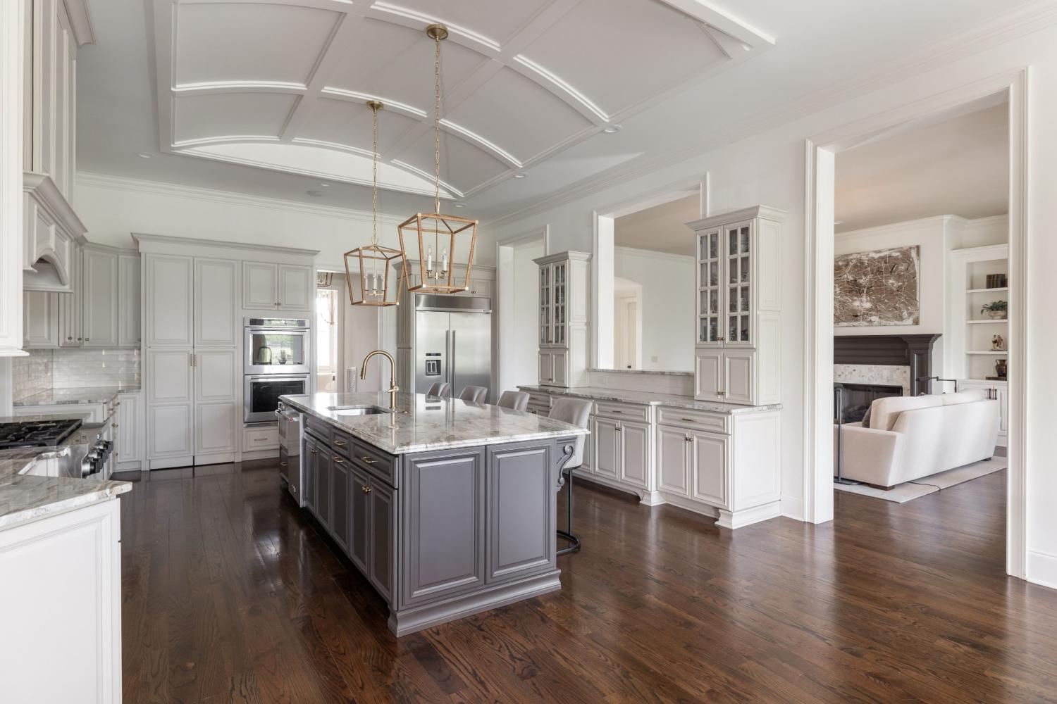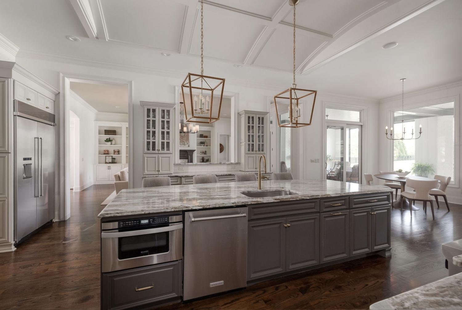 Stunning renovation located in the sought-after Hillsboro Cove community, just a short drive from Historic Downtown Franklin. Situated on over an acre, this meticulously crafted residence offers 5 bedrooms and 5.5 baths, with the primary and guest suites conveniently located on the main level. The heart of the home is the upgraded Chef’s Kitchen, featuring a striking barrel ceiling, Visual Comfort lighting, Kitchen Aid appliances, oversized Island, a hidden office/pantry, and ample storage. Thoughtfully designed for both comfort and entertaining, the main level boasts an elegant dining room with Cole and Son wallpaper, color-drenched office with coffered ceilings and built-ins, spacious living room, a cozy den with stone fireplace, built-ins and bar area. Hardwood Floors throughout the main level. Upstairs, a spacious rec room, flex space, and a theater room provide endless opportunities for relaxation and fun. Step outside to an inviting covered patio, perfect for year-round outdoor living. Enjoy al fresco dining with a built-in gas grill, gather around the fireplace on cool evenings, and take advantage of retractable screens for ultimate comfort. With four garage spaces, abundant closet and storage space, and zoning for Williamson County’s top-rated schools, this exceptional home is truly a must-see! Pool plans designed by JSLA Designs and available upon request!