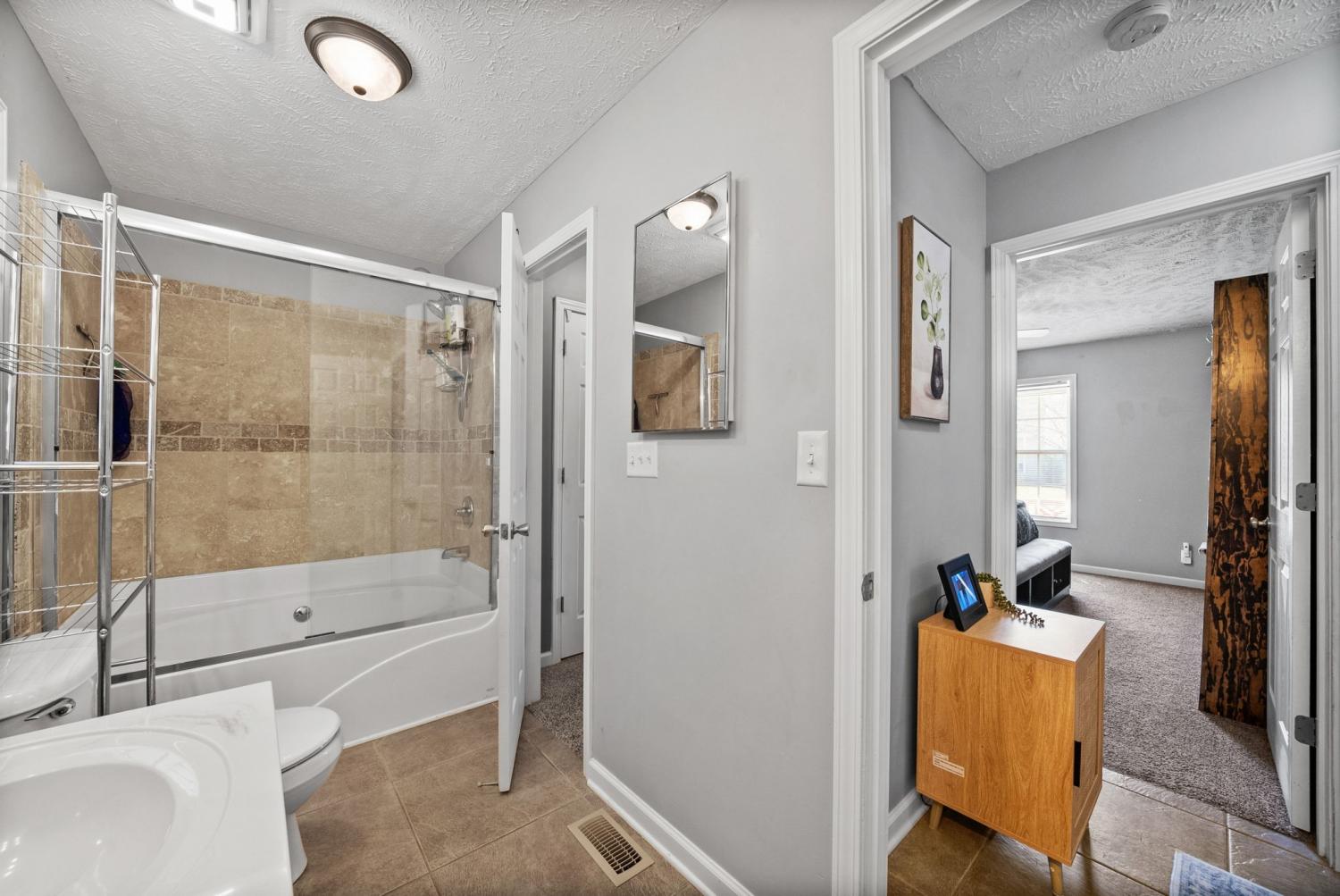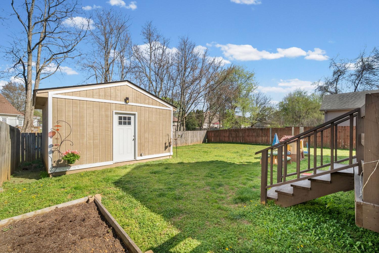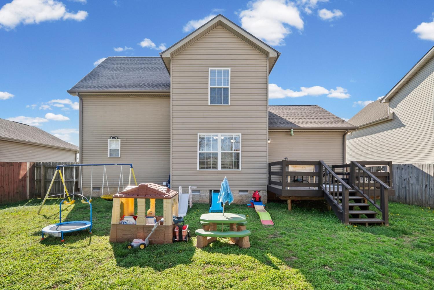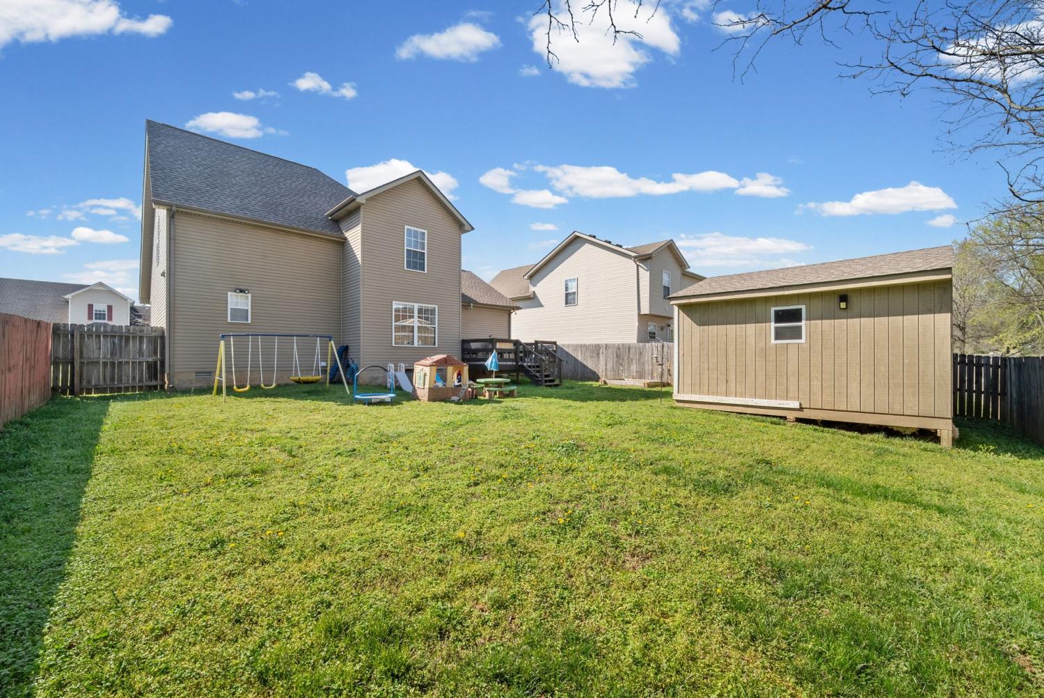 Welcome to this charming home located in the heart of Clarksville! This inviting property offers a functional and comfortable layout perfect for everyday living. The main level features a spacious primary bedroom for added convenience, along with a cozy eat-in kitchen ideal for casual meals and gatherings. Upstairs, you'll find additional bedrooms, providing plenty of space for family, guests, or a home office. Enjoy outdoor living with a covered front patio—perfect for relaxing mornings—and a fully fenced backyard complete with a deck, ideal for entertaining or unwinding in privacy. Conveniently located just minutes from Fort Campbell, shopping, dining, and more, this home offers both comfort and accessibility. With a great combination of space, location, and outdoor features, this home is ready to welcome its next owner!