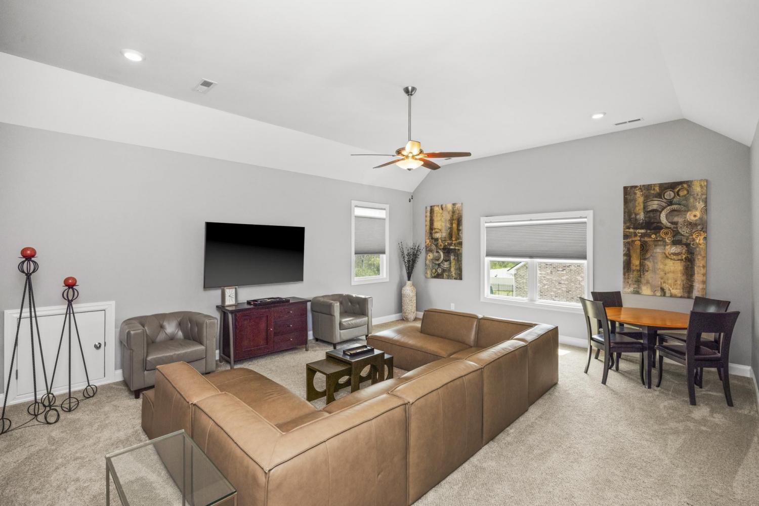 Welcome to this modern open floor plan featuring a chef’s kitchen with spacious pantry. Enjoy main-level living with a primary suite, guest bedroom, and full bath downstairs, plus a beautiful screened porch overlooking the large backyard. Upstairs offers a large bonus room, two additional bedrooms, and a full bath, all in the beautifully manicured Walnut Downs community in Christiana where peaceful surroundings meet the charm of small-town living, just a short drive to Murfreesboro and convenient access to everyday amenities.