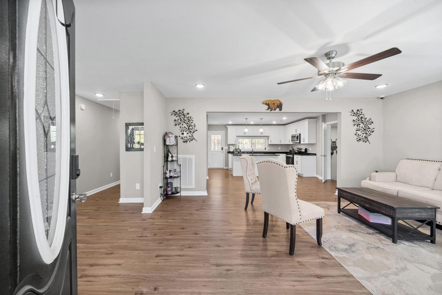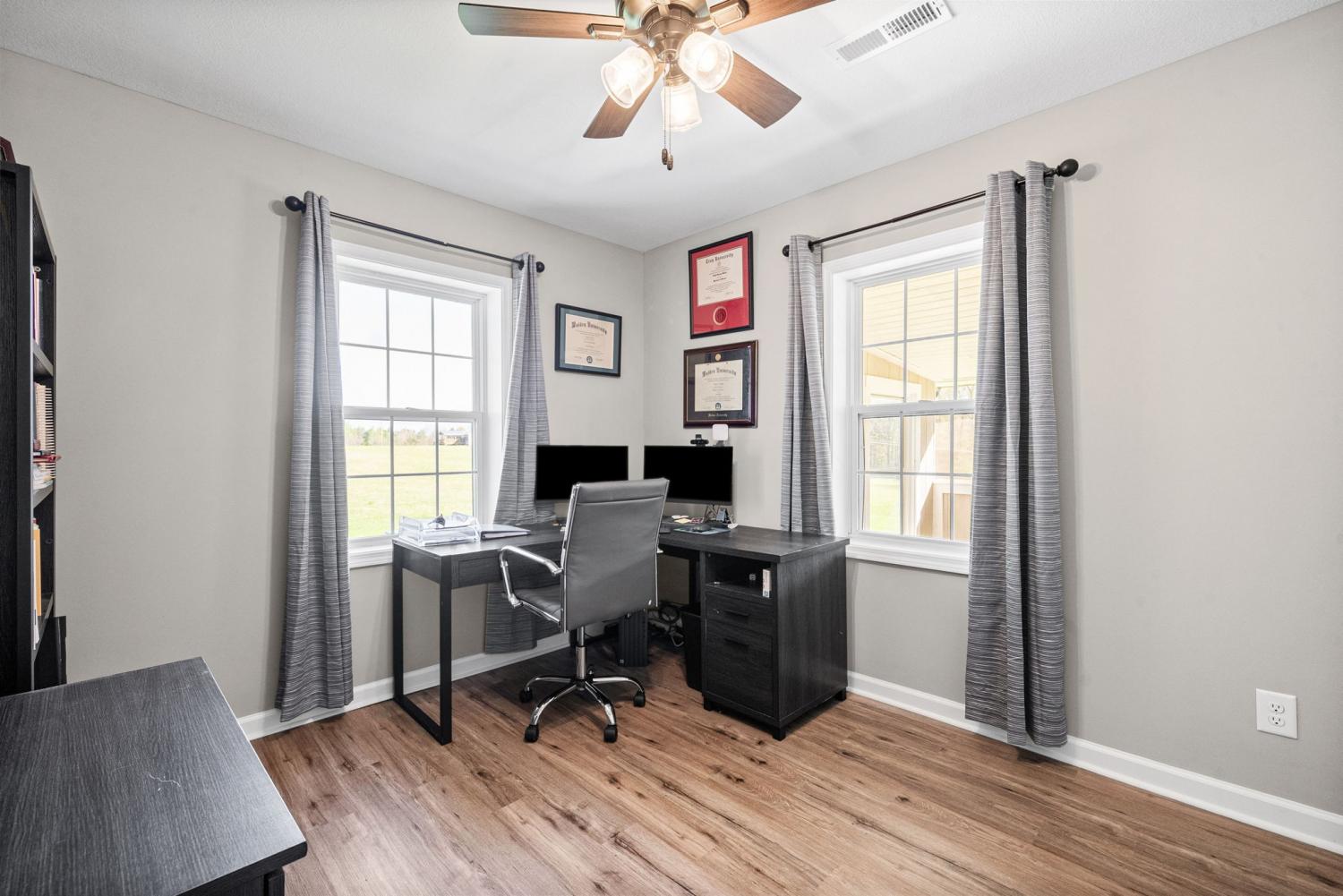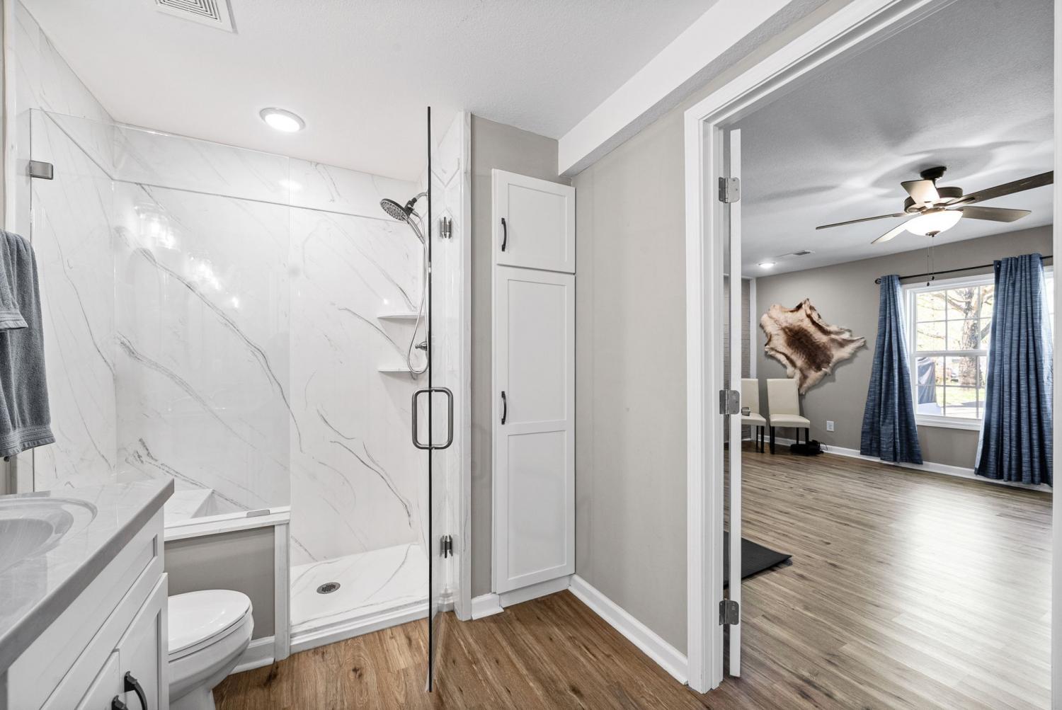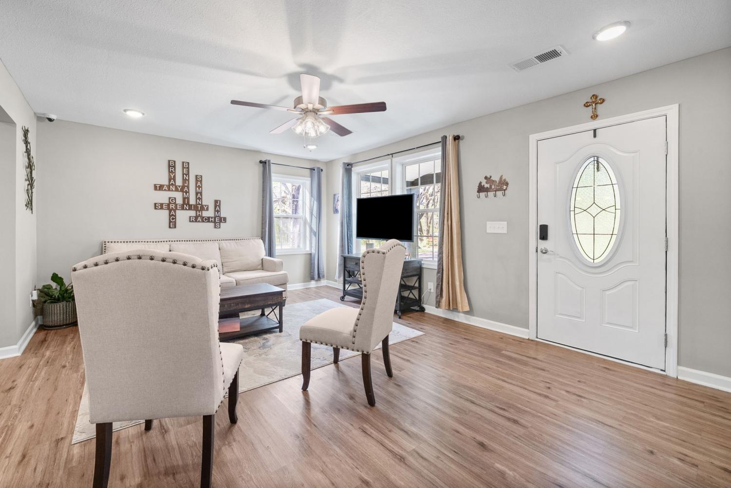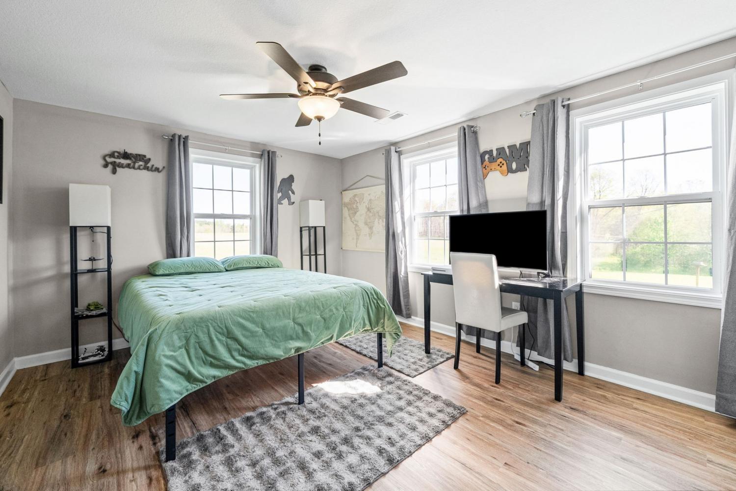 Nestled on 2.1 acres along Walker Ridge Road in the quiet community of Big Rock, this renovated four-bedroom, two-bath home offers a comfortable blend of modern updates and peaceful countryside living. Inside, the main living areas flow together in an open-concept layout, anchored by LVP flooring throughout. The kitchen features white cabinetry, granite countertops, and newer appliances, with a large sliding window that opens directly onto the screened back porch. The spacious primary suite includes a gas fireplace, en-suite bath, and walk-in closet, while three additional bedrooms are situated at the opposite end of the home for convenient separation. Recent improvements include a refreshed brick exterior, roof - 2023, HVAC - 2024, Septic pumped - 2025, updated plumbing, and fresh landscaping. A covered front porch and screened rear porch add to the living space, while the older storage building remains ready for use. The gently rolling lot provides pleasant views, a sizable back lawn, and room for outdoor pursuits, all with no restrictions, no zoning, and no HOA. Fiber optic internet is available at the road, and the 312 feet of county road frontage offers easy access. The setting is tranquil yet convenient for commuting toward Clarksville or Fort Campbell, with nearby options for hunting and Barkley Lake.