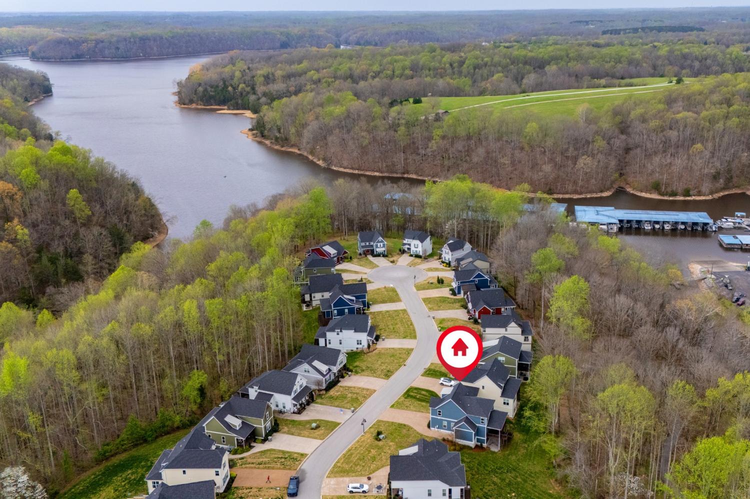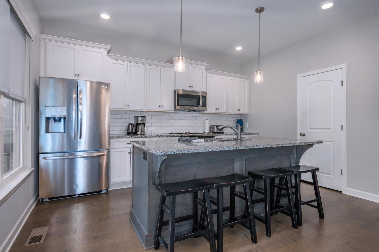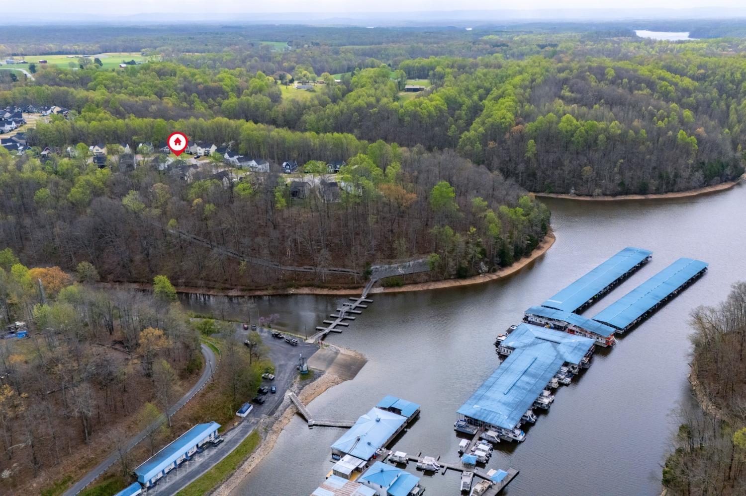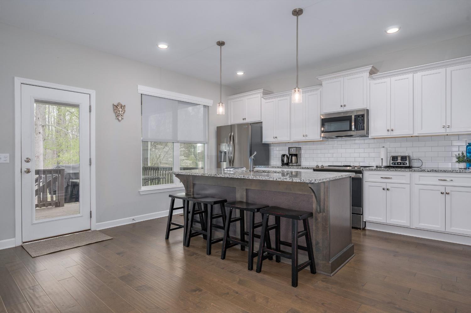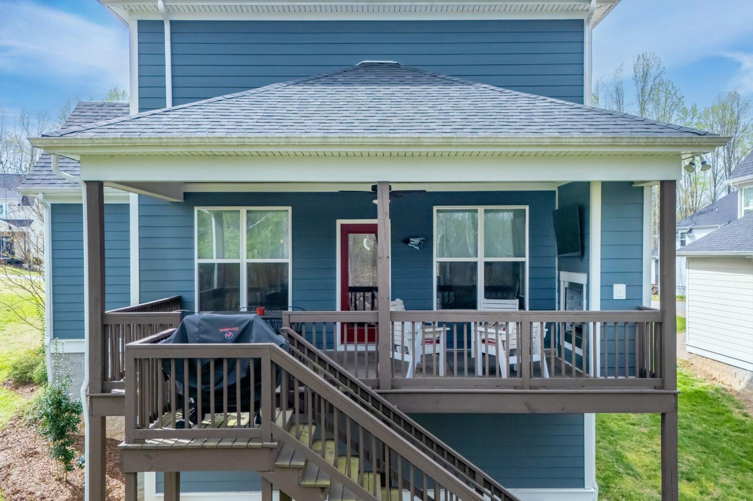 Highly rated 5-star Airbnb on Tims Ford Lake! Tucked away on a private cul-de-sac, this well-appointed home offers a primary suite on the main level with dual vanities, plus 3 additional bedrooms and a versatile den upstairs. The main living areas feature durable LVP flooring throughout, creating a seamless and inviting flow. The spacious eat-in kitchen is designed for both everyday living and entertaining, complete with granite countertops, stainless steel appliances, and a center island with seating. Enjoy your morning coffee on the covered rocking chair front porch or unwind in the evenings on the covered back deck with a cozy fireplace. Refrigerator, washer, and dryer remain. The neighborhood includes a convenient golf cart path providing easy access to Blue Gill Grill and Holiday Landing Marina, making it easy to enjoy everything lake life has to offer.