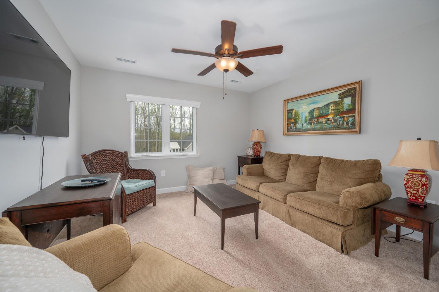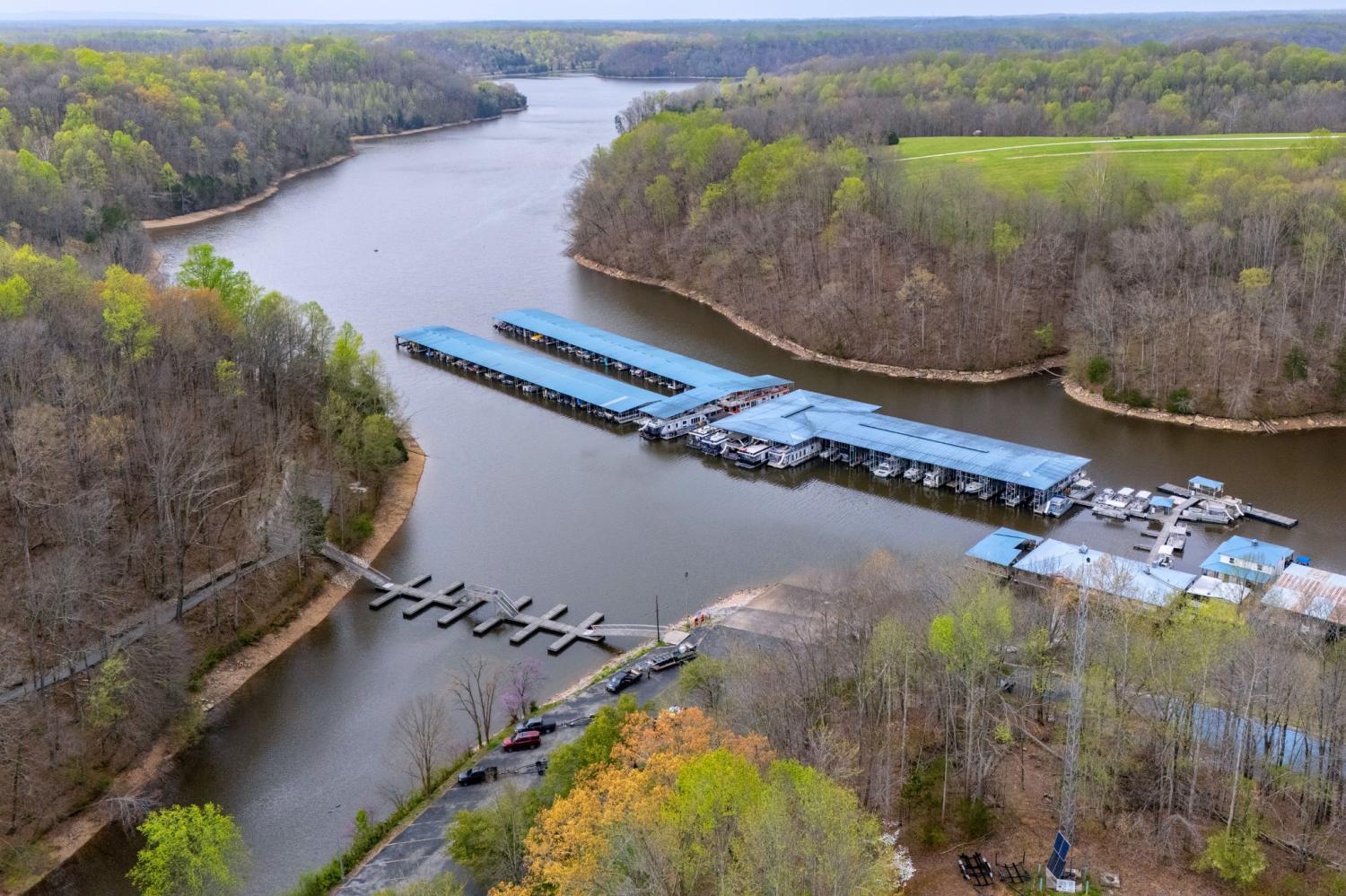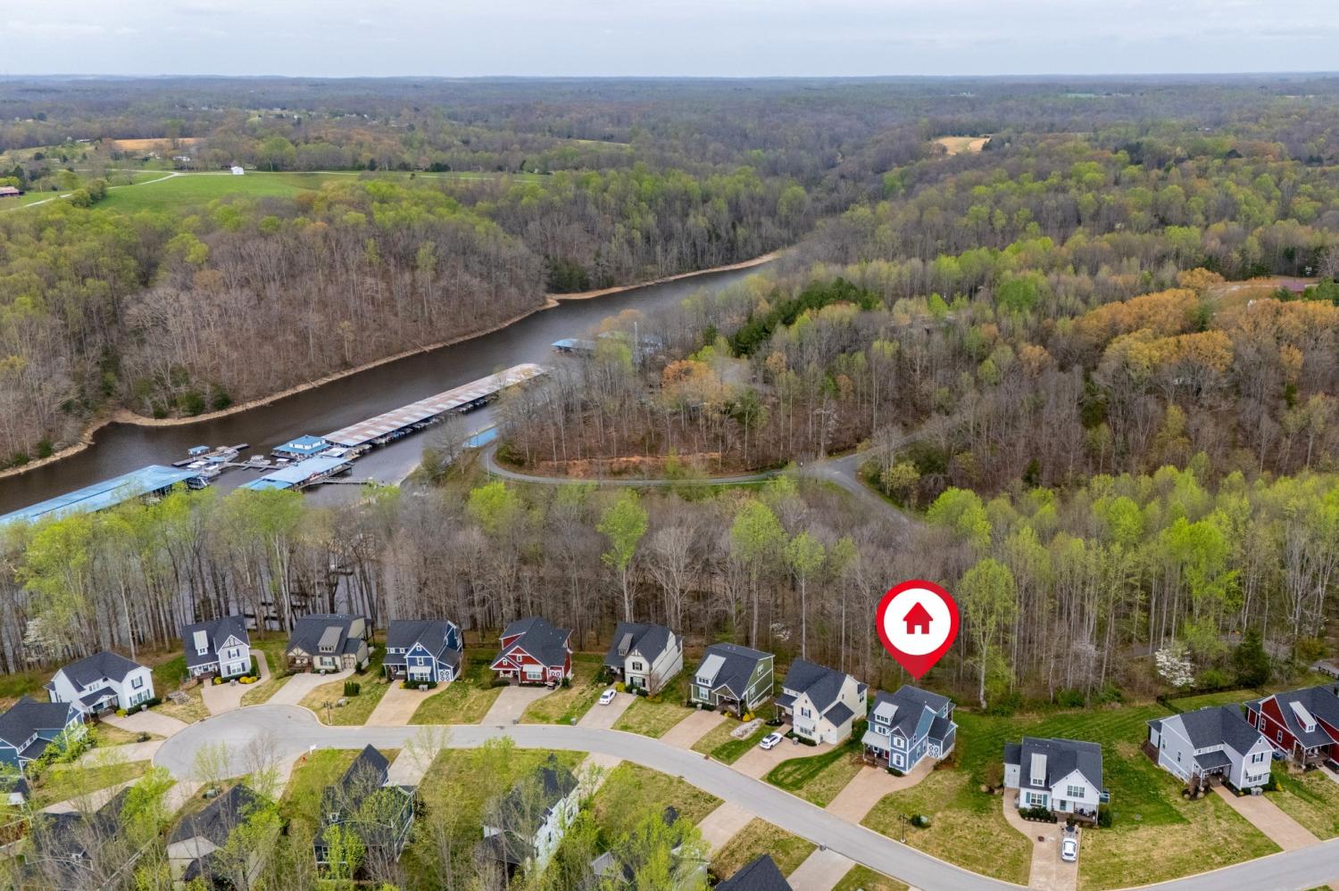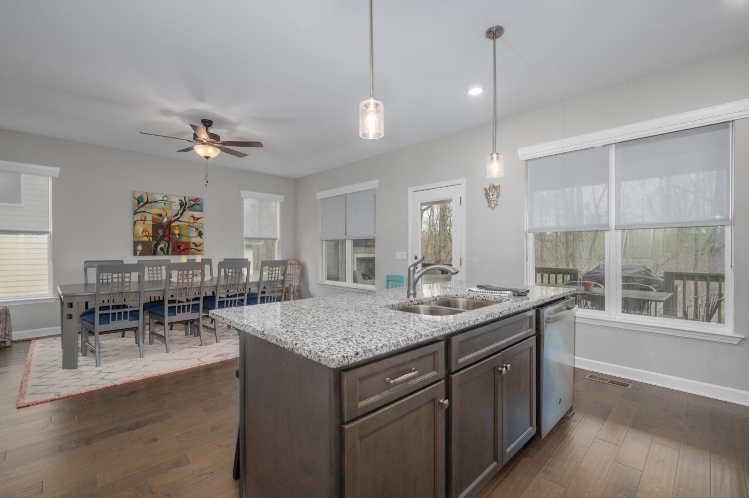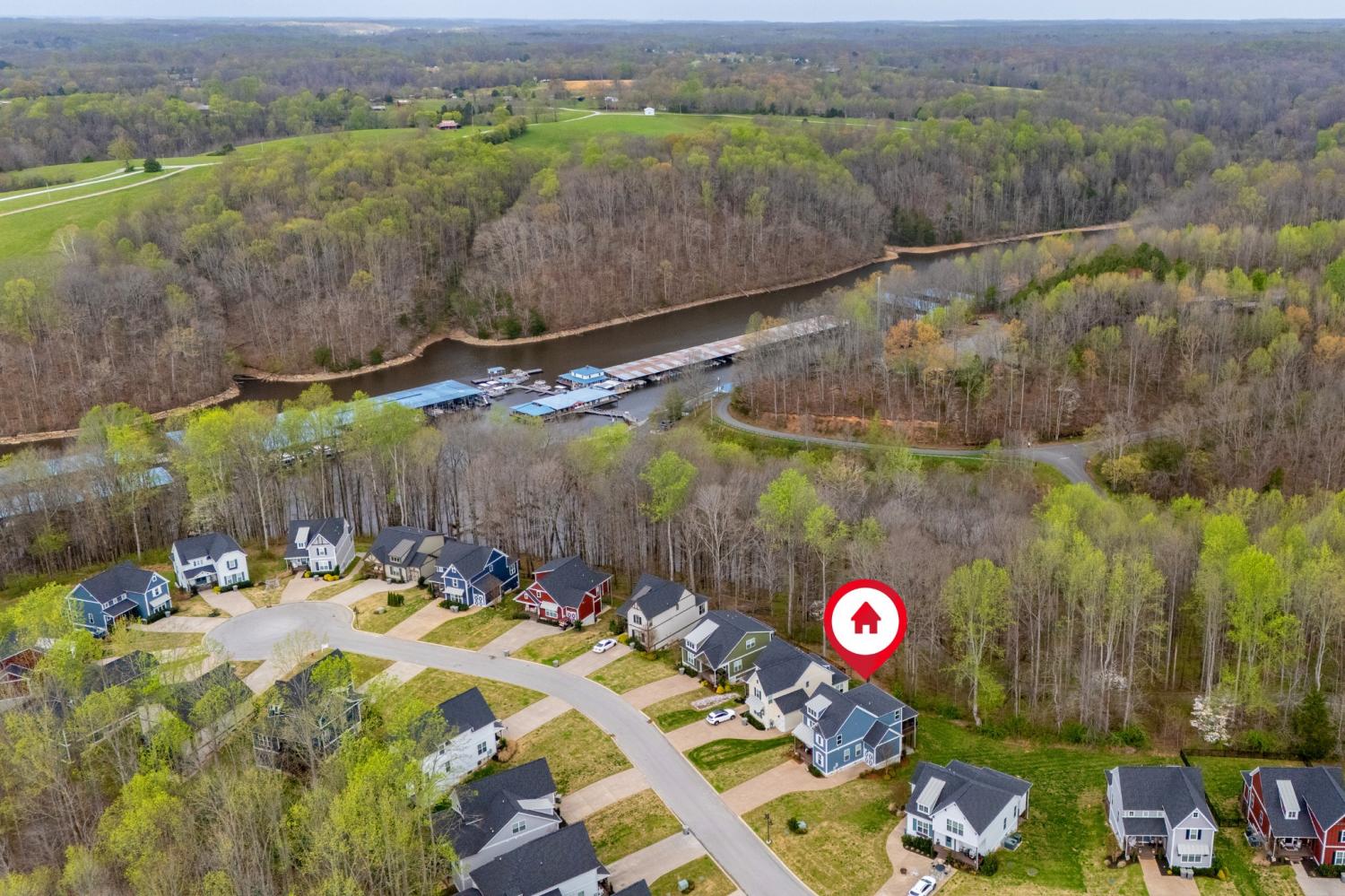 Highly rated 5-star Airbnb on Tims Ford Lake! Tucked away on a private cul-de-sac, this well-appointed home offers a primary suite on the main level with dual vanities, plus 3 additional bedrooms and a versatile den upstairs. The main living areas feature durable LVP flooring throughout, creating a seamless and inviting flow. The spacious eat-in kitchen is designed for both everyday living and entertaining, complete with granite countertops, stainless steel appliances, and a center island with seating. Enjoy your morning coffee on the covered rocking chair front porch or unwind in the evenings on the covered back deck with a cozy fireplace. Refrigerator, washer, and dryer remain. The neighborhood includes a convenient golf cart path providing easy access to Blue Gill Grill and Holiday Landing Marina, making it easy to enjoy everything lake life has to offer.