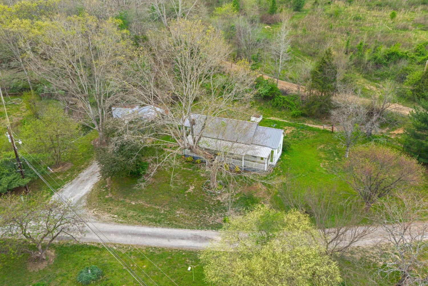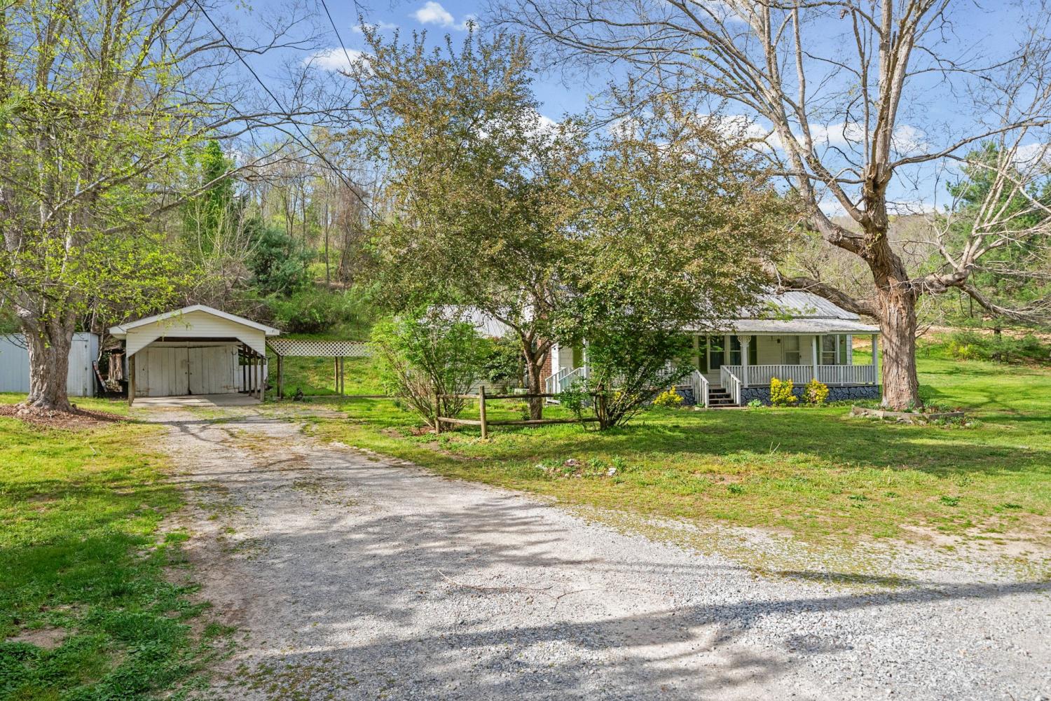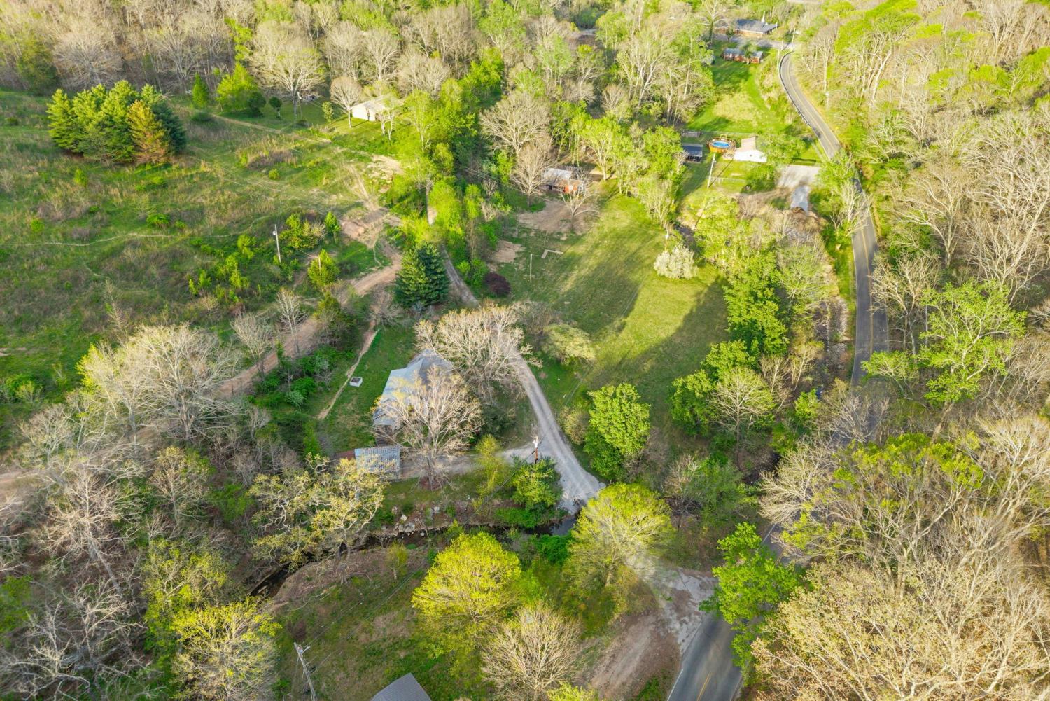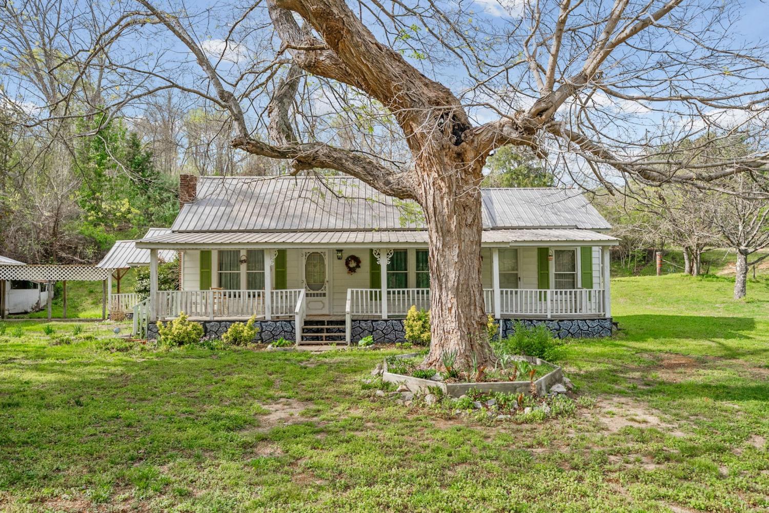 Charming 2 bedroom, 2 bath home situated on 2.64 acres of mostly level pasture with a creek and plenty of usable outdoor space. This property offers a functional layout with a laundry room that also works well as a pantry, plus an office that could serve as a third bedroom or flex space. Enjoy peaceful country living from the expansive 42x8 covered front porch. Additional features include a metal roof, storage buildings, and carport, providing ample room for parking, hobbies, or extra storage. This property presents a great opportunity for someone seeking an investment property, flip, or rental, with plenty of potential to customize the interior to complement the inviting exterior. No city taxes! Sit on the front porch and listen to the creek babble. You'll notice the trees and flowers growing all around, and imagine what you can use over 2 acres of pasture that has the creek winding along its side. Three additional lots are for sale, if you're thinking of building new or adding an additional lot to provide more creek access or recreational /hunting land.