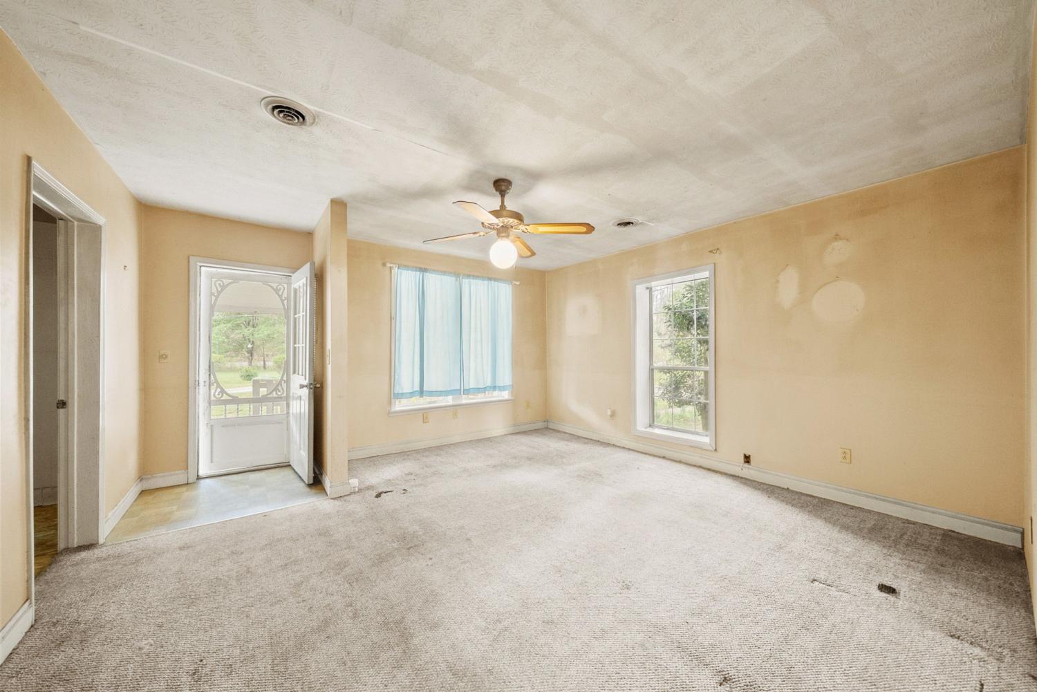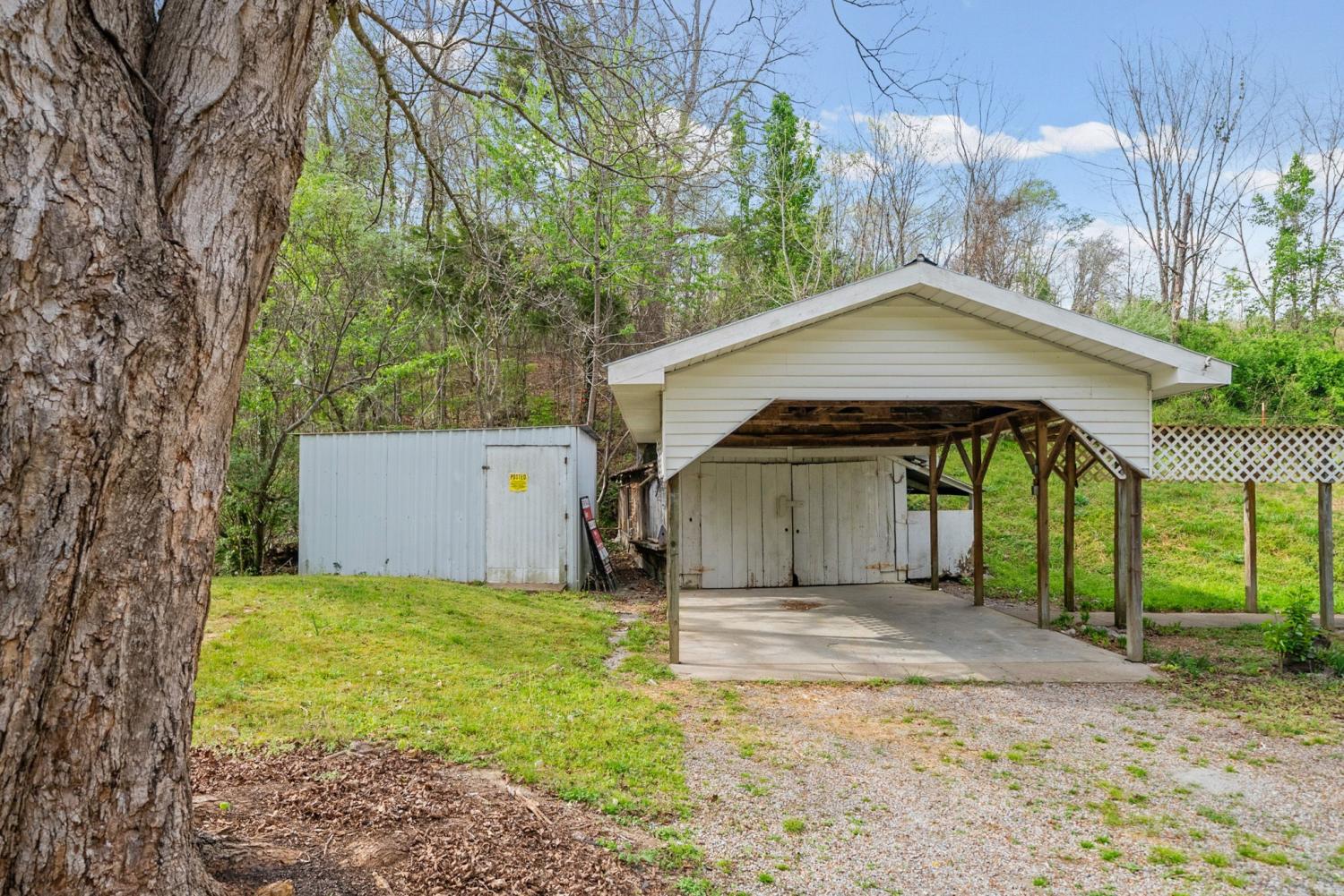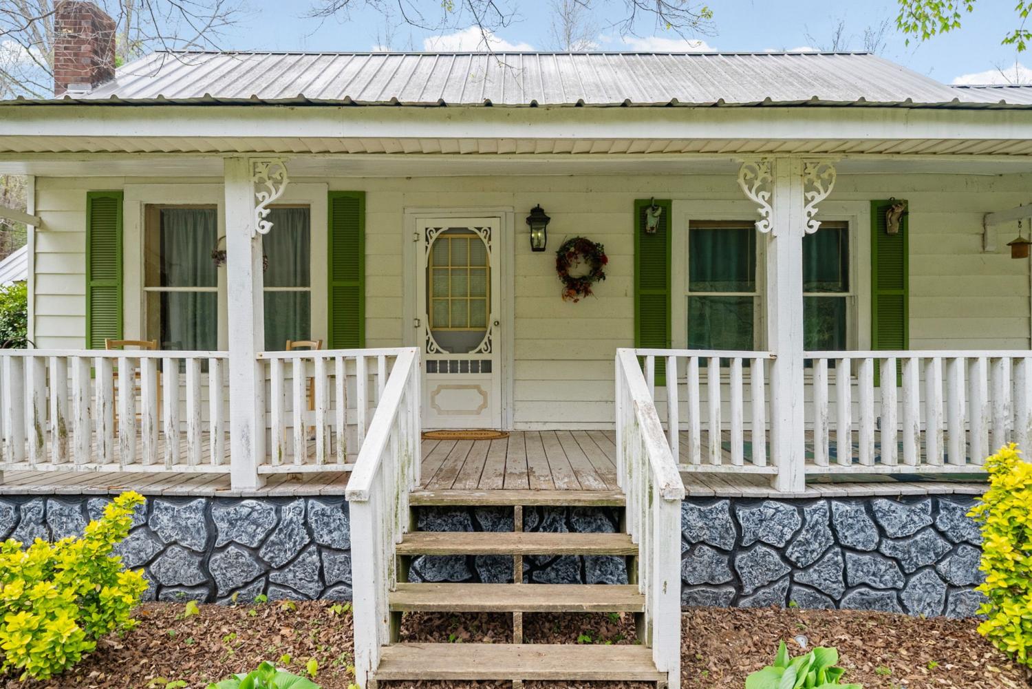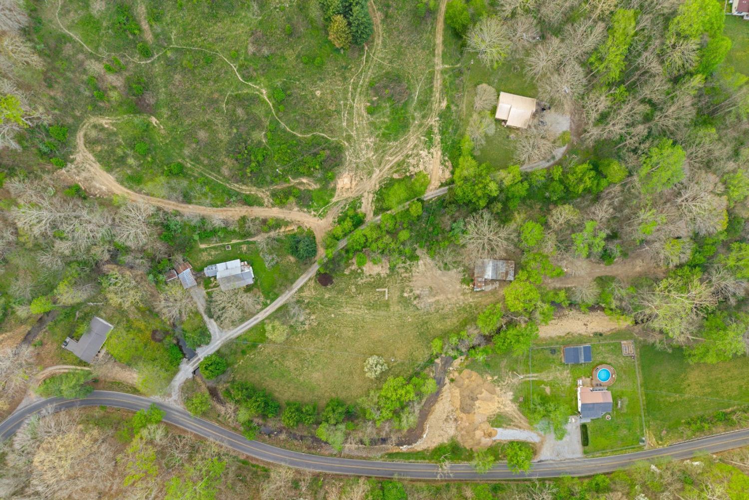 Charming 2 bedroom, 2 bath home situated on 2.64 acres of mostly level pasture with a creek and plenty of usable outdoor space. This property offers a functional layout with a laundry room that also works well as a pantry, plus an office that could serve as a third bedroom or flex space. Enjoy peaceful country living from the expansive 42x8 covered front porch. Additional features include a metal roof, storage buildings, and carport, providing ample room for parking, hobbies, or extra storage. This property presents a great opportunity for someone seeking an investment property, flip, or rental, with plenty of potential to customize the interior to complement the inviting exterior. No city taxes! Sit on the front porch and listen to the creek babble. You'll notice the trees and flowers growing all around, and imagine what you can use over 2 acres of pasture that has the creek winding along its side. Three additional lots are for sale, if you're thinking of building new or adding an additional lot to provide more creek access or recreational /hunting land.