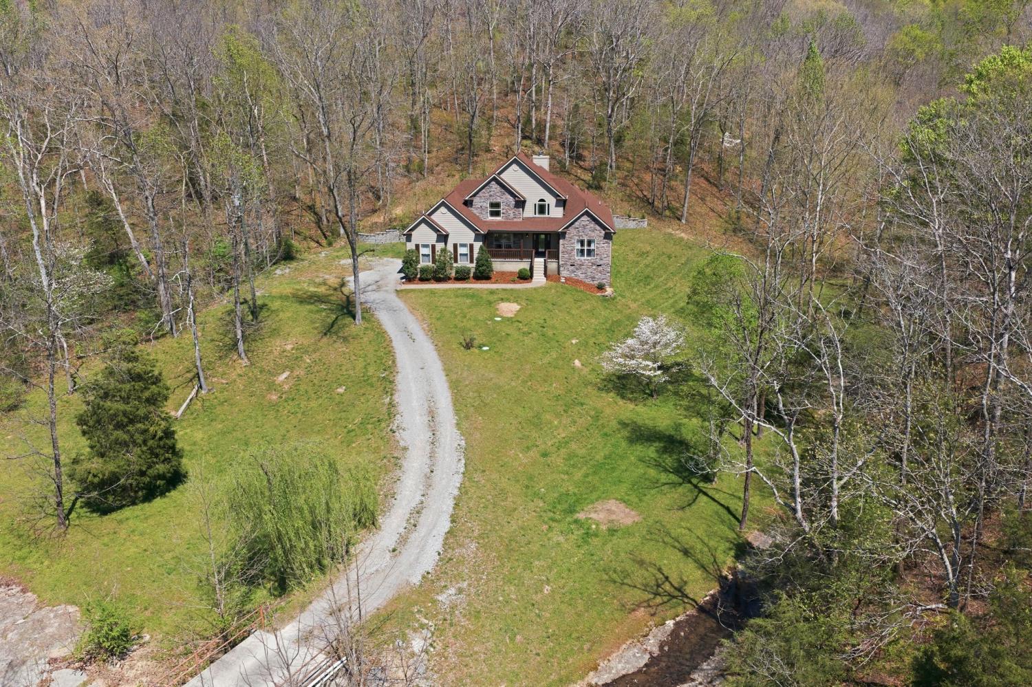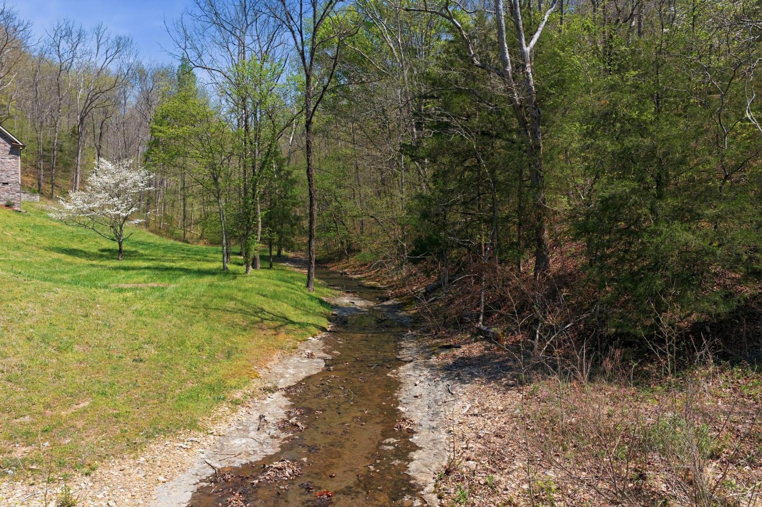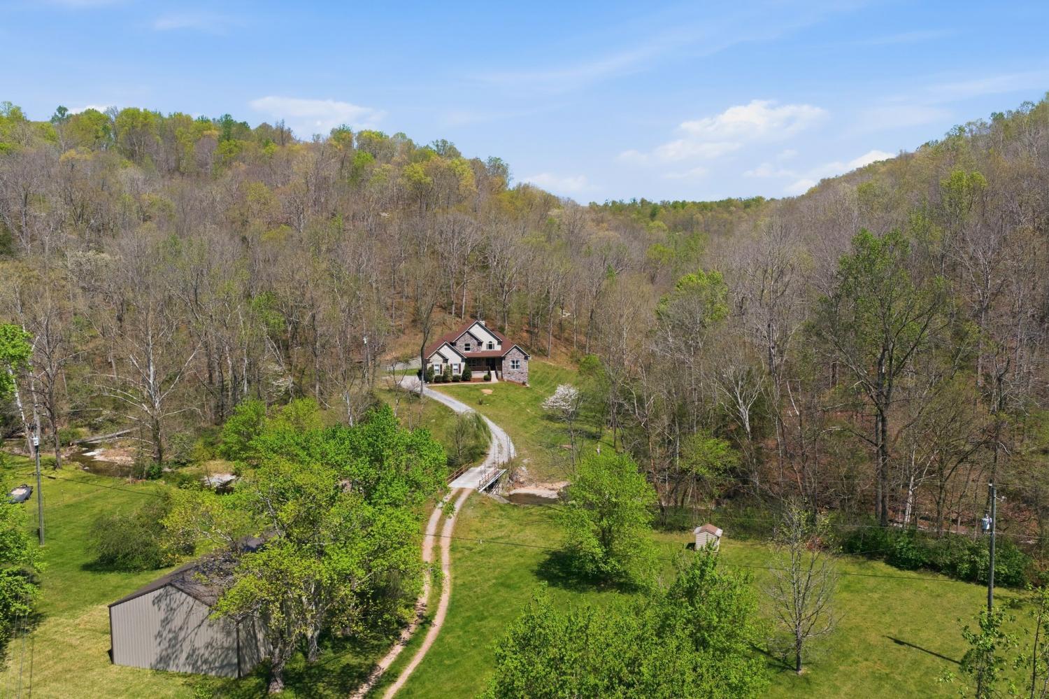 Well maintained home on 5 private acres with a setting that’s hard to replicate, just 30 minutes to downtown Nashville and located on the Davidson County side of Pegram. The property itself is what makes this one special. A beautiful creek runs through the front, and the setting opens up to a rolling yard and mature trees with long, unobstructed views. The front porch allows you to take it all in, overlooking the water, pasture, and woods, with sunsets that really show up. It’s common to see deer and other wildlife moving through the property, which adds to the overall feel of being tucked away without being too far out. The home was built in 2016 and has been well maintained, with updated lighting and window treatments already in place. The primary suite is on the main level, and the layout is simple and functional. Attached 2-car garage. There is also a 30x40 detached shop with power and a shop-style bathroom that gives the flexibility for workspace, storage, or projects. Security system in place with Samsung IR cameras and Protection One (doors + interior camera). Fully wired and ready to activate.