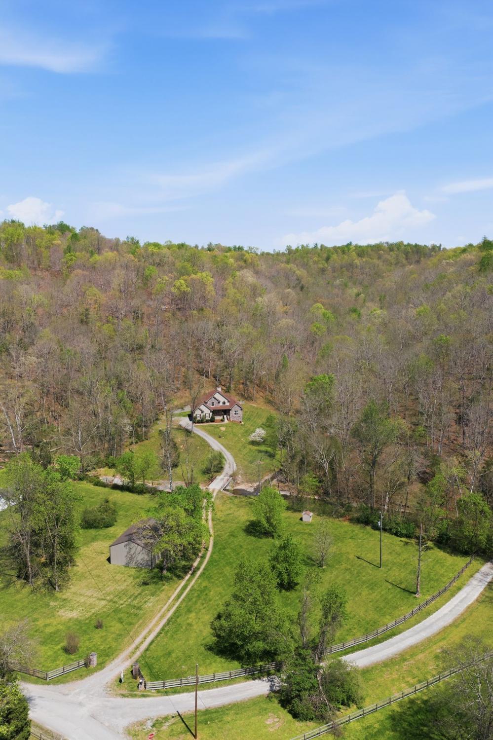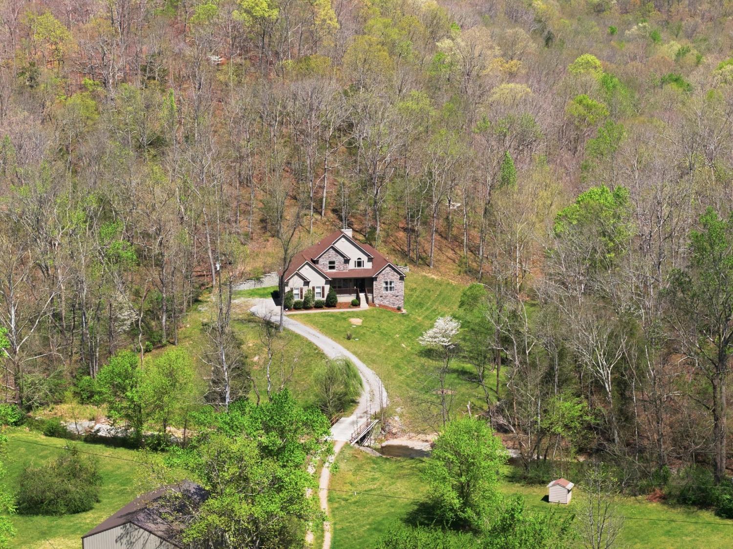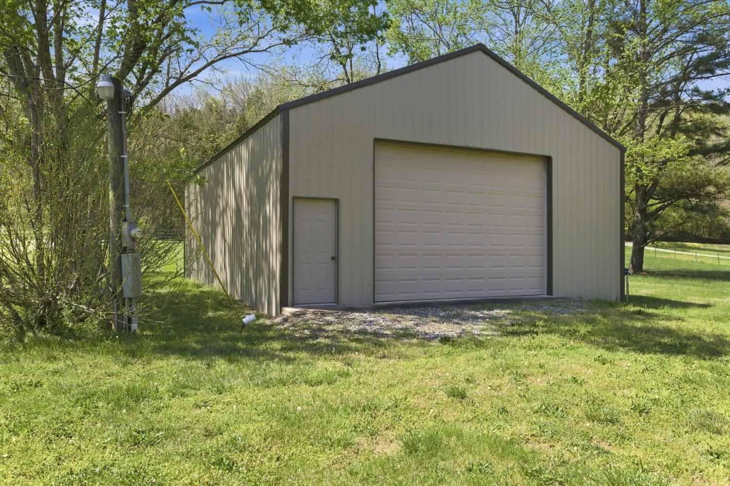 Well maintained home on 5 private acres with a setting that’s hard to replicate, just 30 minutes to downtown Nashville and located on the Davidson County side of Pegram. The property itself is what makes this one special. A beautiful creek runs through the front, and the setting opens up to a rolling yard and mature trees with long, unobstructed views. The front porch allows you to take it all in, overlooking the water, pasture, and woods, with sunsets that really show up. It’s common to see deer and other wildlife moving through the property, which adds to the overall feel of being tucked away without being too far out. The home was built in 2016 and has been well maintained, with updated lighting and window treatments already in place. The primary suite is on the main level, and the layout is simple and functional. Attached 2-car garage. There is also a 30x40 detached shop with power and a shop-style bathroom that gives the flexibility for workspace, storage, or projects. Security system in place with Samsung IR cameras and Protection One (doors + interior camera). Fully wired and ready to activate.
