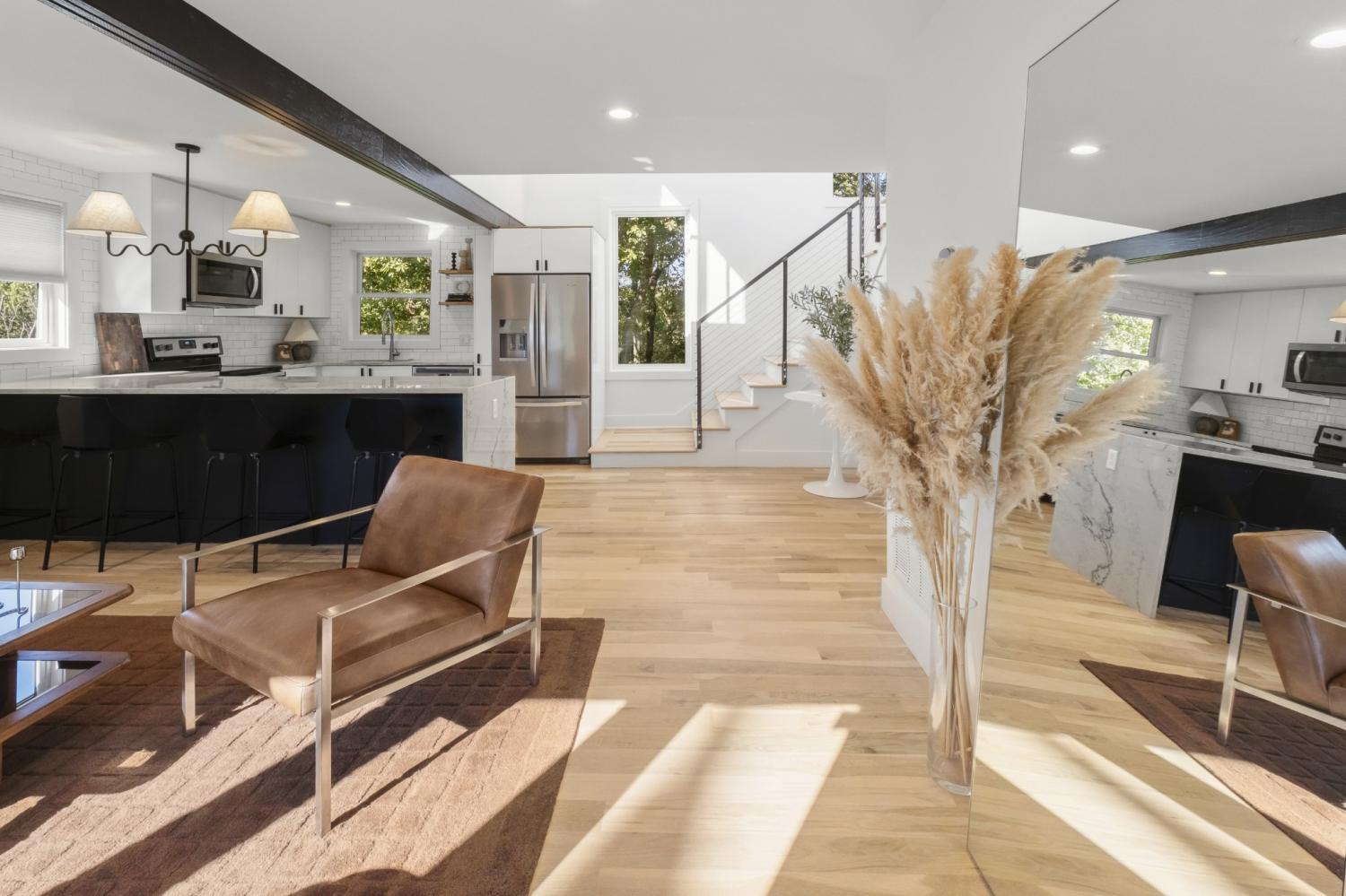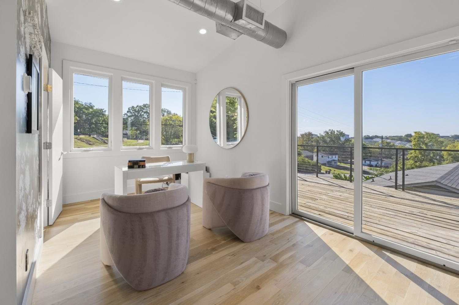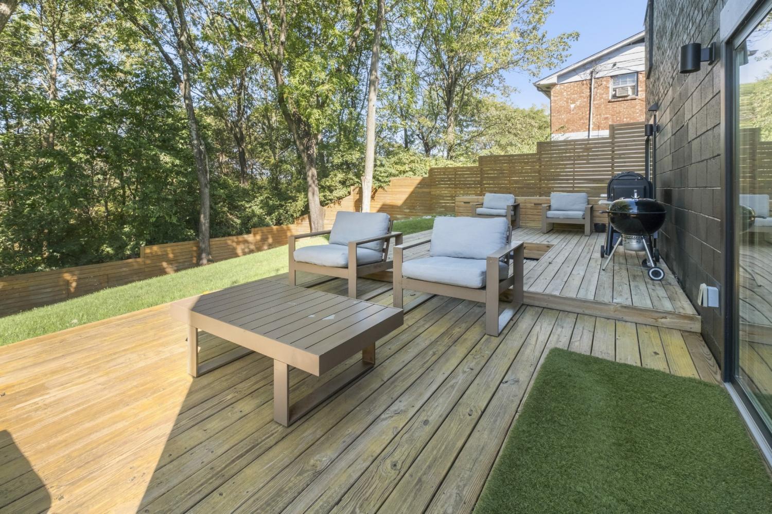 In a prime East Nashville setting, this contemporary home stands out for its clean design, private outdoor space, and city views. From the rooftop deck, skyline views set the scene for quiet mornings with coffee or relaxed evenings gathering with friends. The fenced backyard feels especially private, backing to a wooded setting and enhanced by irrigation and landscape lighting. A generous yard, paired with the park just across the street, gives this property a rare mix of peaceful outdoor living and easy neighborhood connection. Inside, fresh paint and newly refinished floors create a bright, refreshed feel throughout. Natural light pours in, highlighting the clean lines of the modern layout, while walk-in closets and abundant storage add function to the home’s contemporary design. In the kitchen, new countertops bring a fresh, elevated finish that complements the overall aesthetic beautifully. Located just minutes from the highway, Crema, East Nashville Beer Works, and many of the area’s favorite restaurants, parks, and bars, this home puts you close to everything while still offering a sense of retreat. It is a standout opportunity in one of Nashville’s most dynamic neighborhoods.