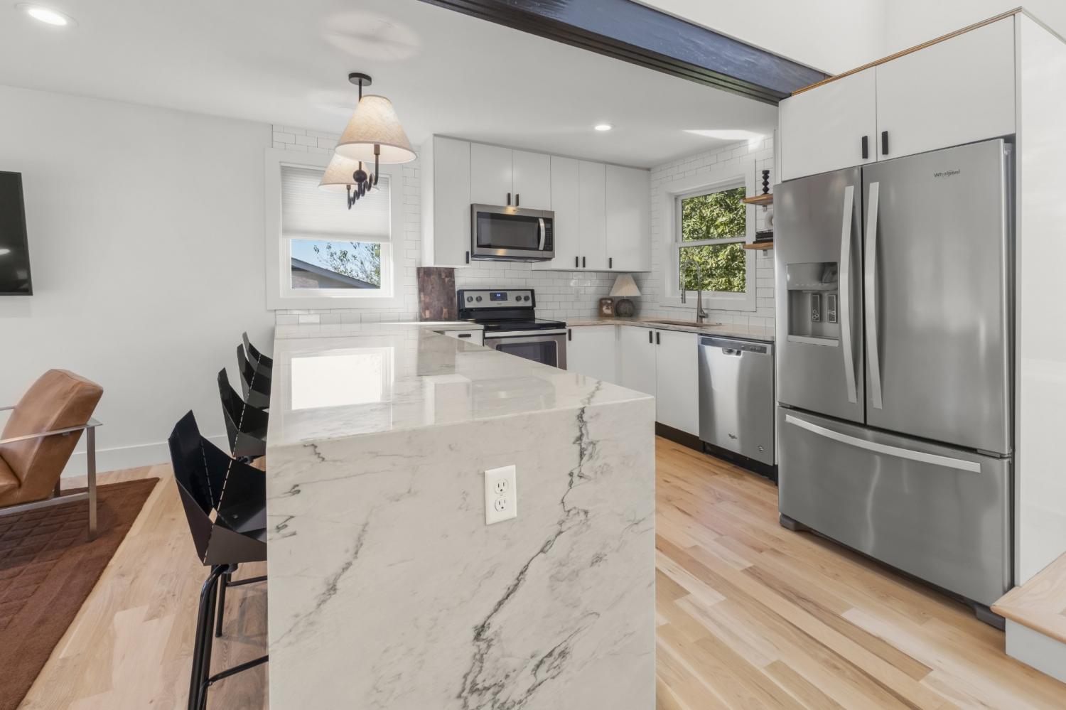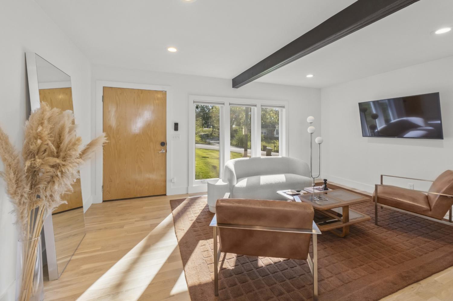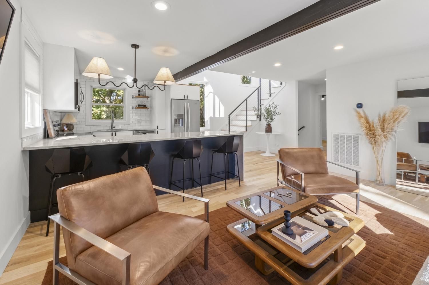 In a prime East Nashville setting, this contemporary home stands out for its clean design, private outdoor space, and city views. From the rooftop deck, skyline views set the scene for quiet mornings with coffee or relaxed evenings gathering with friends. The fenced backyard feels especially private, backing to a wooded setting and enhanced by irrigation and landscape lighting. A generous yard, paired with the park just across the street, gives this property a rare mix of peaceful outdoor living and easy neighborhood connection. Inside, fresh paint and newly refinished floors create a bright, refreshed feel throughout. Natural light pours in, highlighting the clean lines of the modern layout, while walk-in closets and abundant storage add function to the home’s contemporary design. In the kitchen, new countertops bring a fresh, elevated finish that complements the overall aesthetic beautifully. Located just minutes from the highway, Crema, East Nashville Beer Works, and many of the area’s favorite restaurants, parks, and bars, this home puts you close to everything while still offering a sense of retreat. It is a standout opportunity in one of Nashville’s most dynamic neighborhoods.