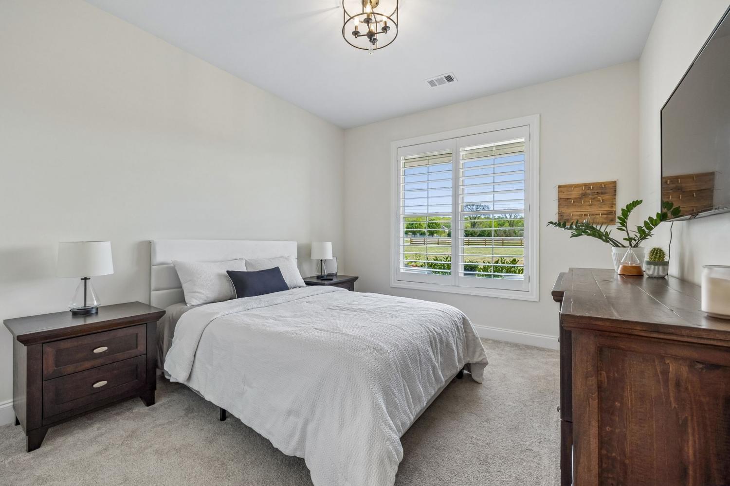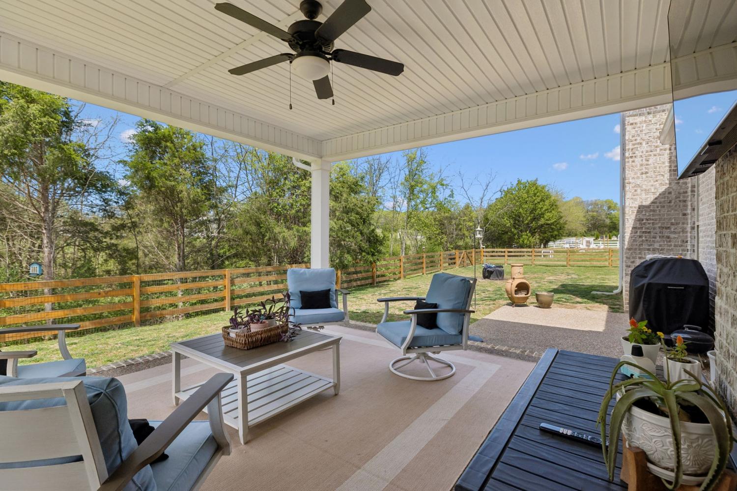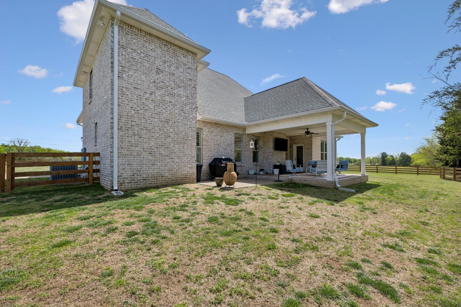 This like new Stewart Knowles Construction home offers quality craftsmanship & beautiful finishes throughout. The living room features a gas fireplace with shiplap detail & opens to the kitchen complete with stainless steel appliances, large island, built-in double oven & microwave, quartz countertops, & a tile backsplash. The dining area features wainscoting detail & opens to a spacious covered patio with an additional uncovered patio. The primary suite is located on the main level & features a vaulted tray ceiling, large walk in closet, double vanities, & a tiled walk-in shower. Also on the main floor are two additional bedrooms with a shared bath. There is a functional mudroom-style entry with built-in seating & hanging storage. Upstairs offers a large bonus room, private bedroom & full bath, plus a generous walk-in closet for extra storage. Enjoy the fully fenced yard featuring a creek & private tree line. A rear portion of the lot with Hamilton Chambers road frontage offers the potential for a private drive to a workshop. 10 minutes to downtown Lebanon & 30 minutes to BNA.