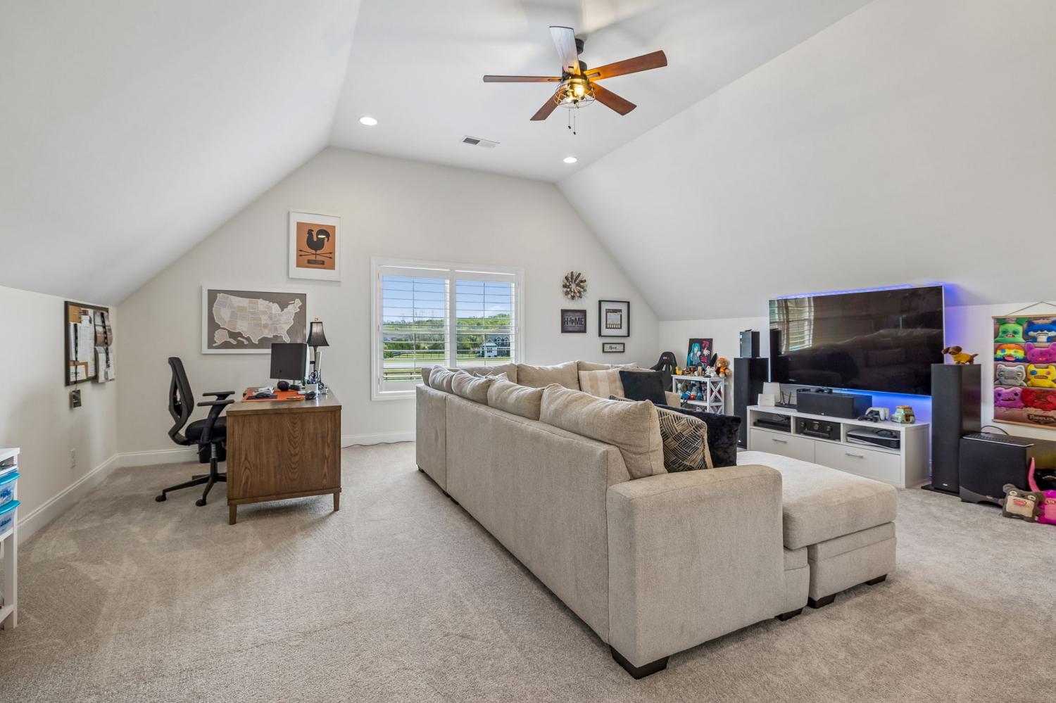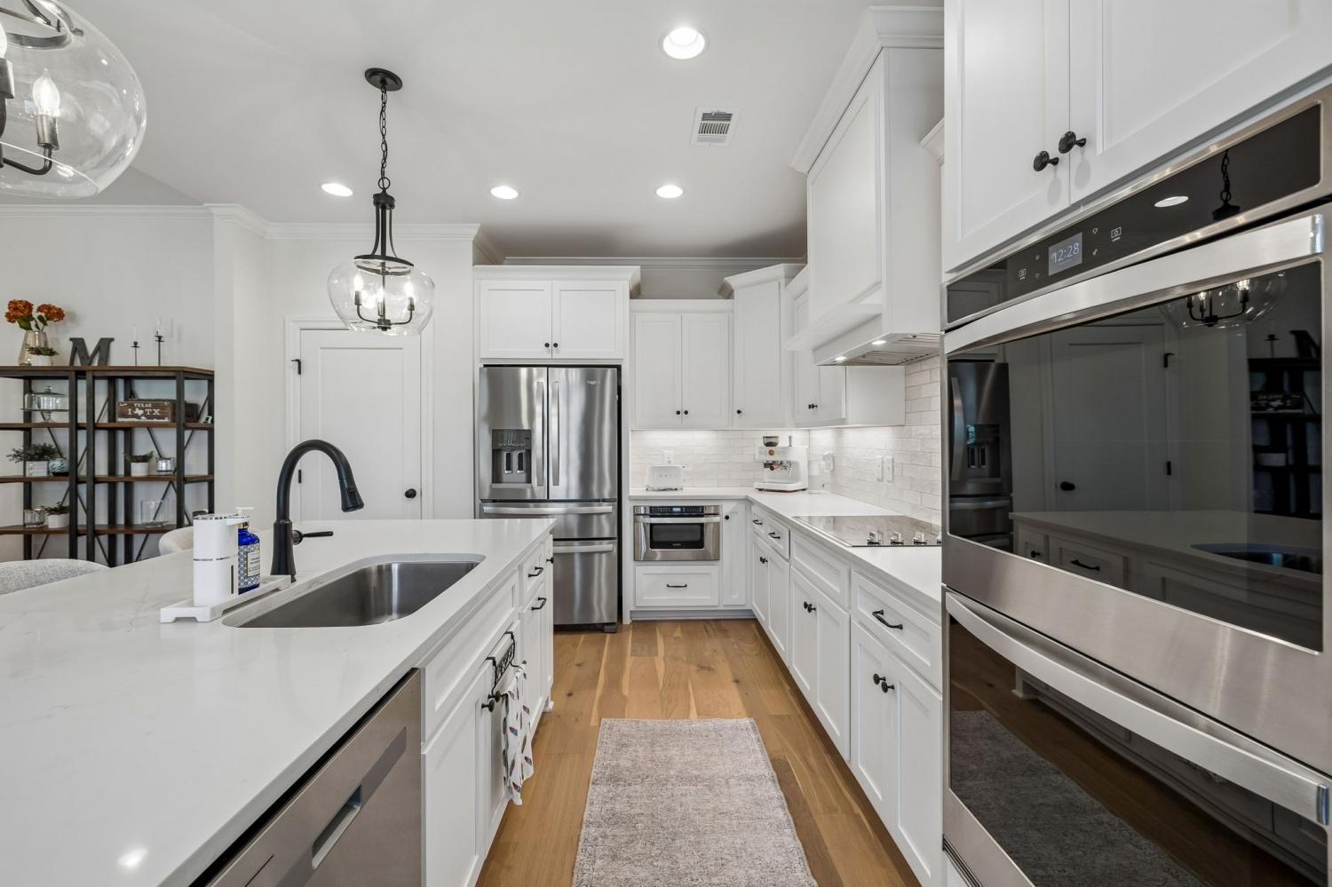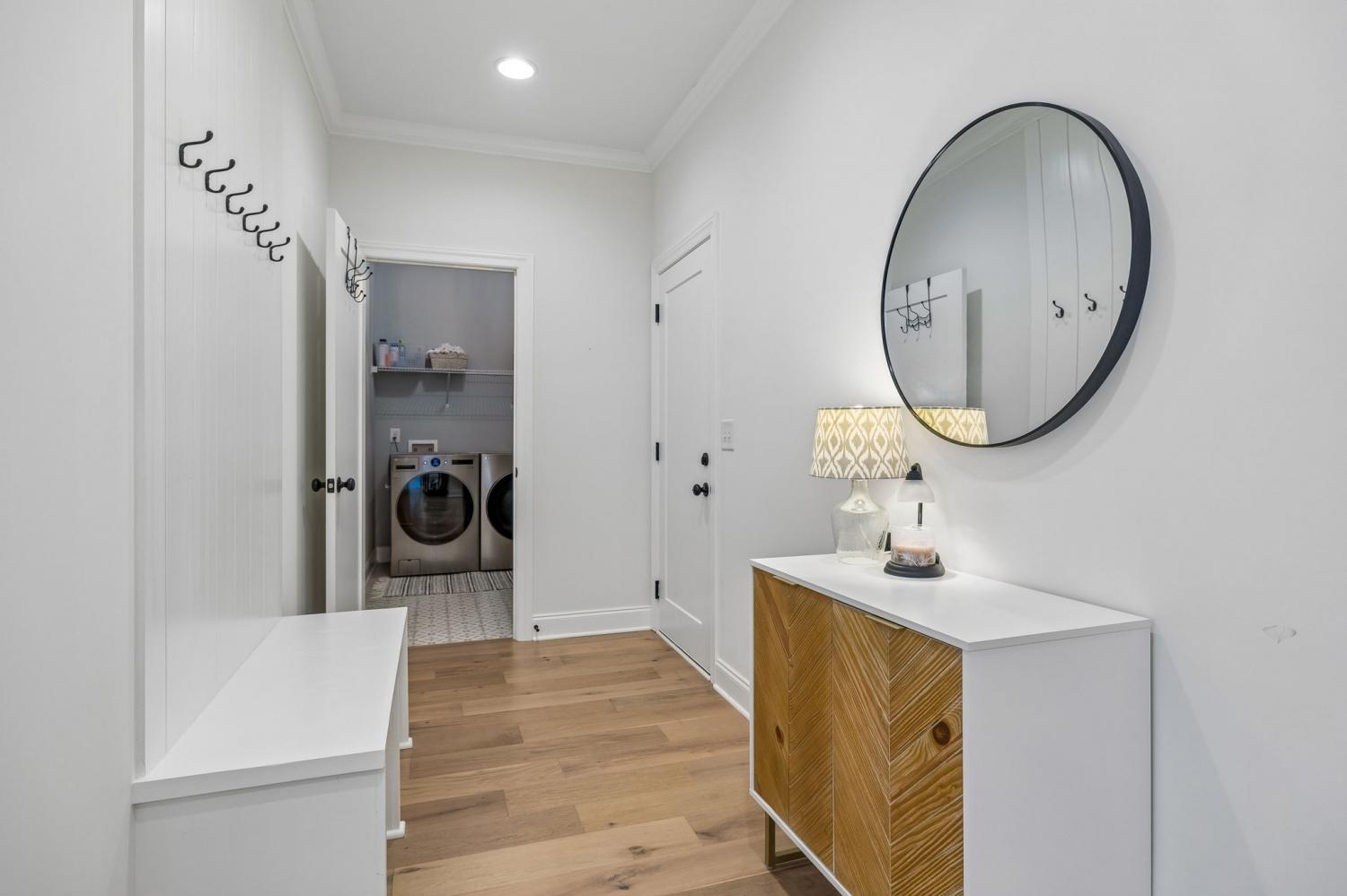This like new Stewart Knowles Construction home offers quality craftsmanship & beautiful finishes throughout. The living room features a gas fireplace with shiplap detail & opens to the kitchen complete with stainless steel appliances, large island, built-in double oven & microwave, quartz countertops, & a tile backsplash. The dining area features wainscoting detail & opens to a spacious covered patio with an additional uncovered patio. The primary suite is located on the main level & features a vaulted tray ceiling, large walk in closet, double vanities, & a tiled walk-in shower. Also on the main floor are two additional bedrooms with a shared bath. There is a functional mudroom-style entry with built-in seating & hanging storage. Upstairs offers a large bonus room, private bedroom & full bath, plus a generous walk-in closet for extra storage. Enjoy the fully fenced yard featuring a creek & private tree line. A rear portion of the lot with Hamilton Chambers road frontage offers the potential for a private drive to a workshop. 10 minutes to downtown Lebanon & 30 minutes to BNA.