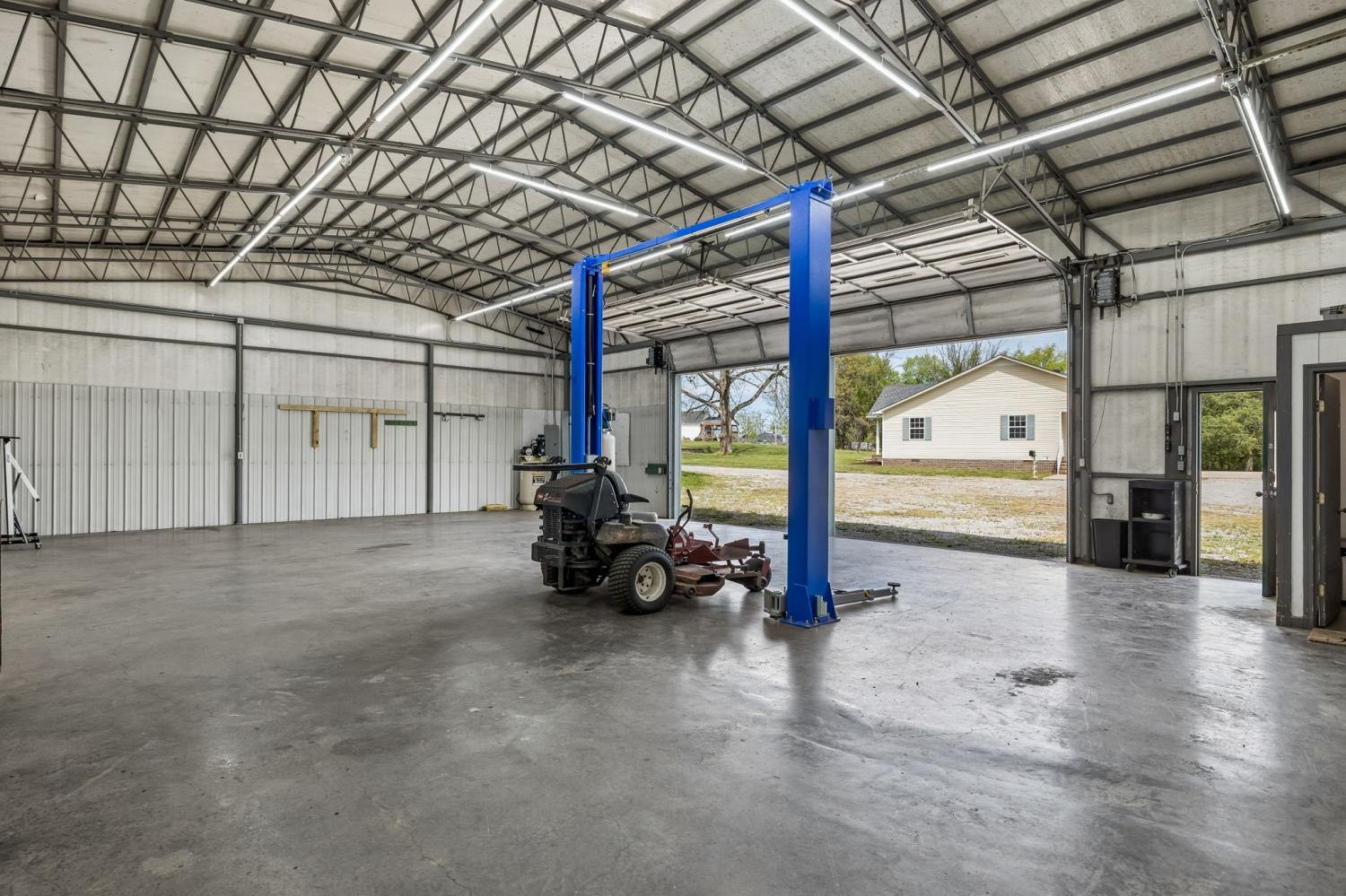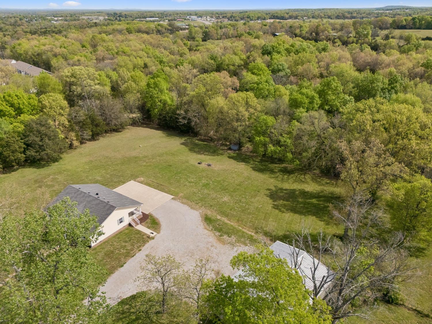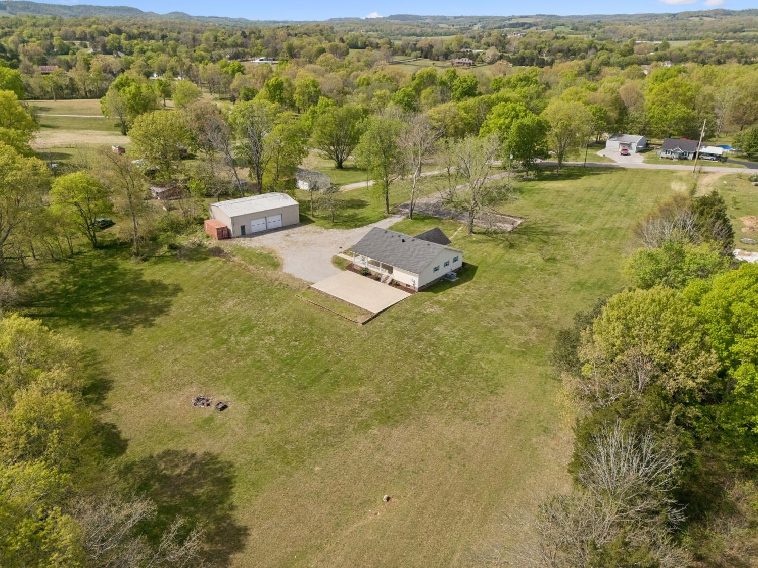 One-level ranch home set on over 4 acres offering a peaceful country feel with the convenience downtown close by. The home sits well off the road and is peppered by mature trees, including a beautiful wooded backdrop behind the property. Inside, the open floor plan connects the living, dining, and kitchen areas, with new flooring throughout the main spaces and primary bedroom. The kitchen includes a large pantry and all new appliances—refrigerator, stove, microwave, washer, and dryer—making it truly move-in ready. The home offers 2 full baths, along with a spacious laundry/mud room that includes its own half bath and built-in ironing board. A tankless water heater has been installed in the crawl space. Step outside to a large, covered patio along with an extended concrete patio and parking area. A standout feature is the 52’ x 35’ shop, complete with its own half bath, LED lighting, 220v power, car lift, and two 12’ x 12’ doors with electric openers—perfect for a workshop, business use, or serious hobby space. If you’re looking for space, functionality, and a quiet setting without being too far out, come take a look.