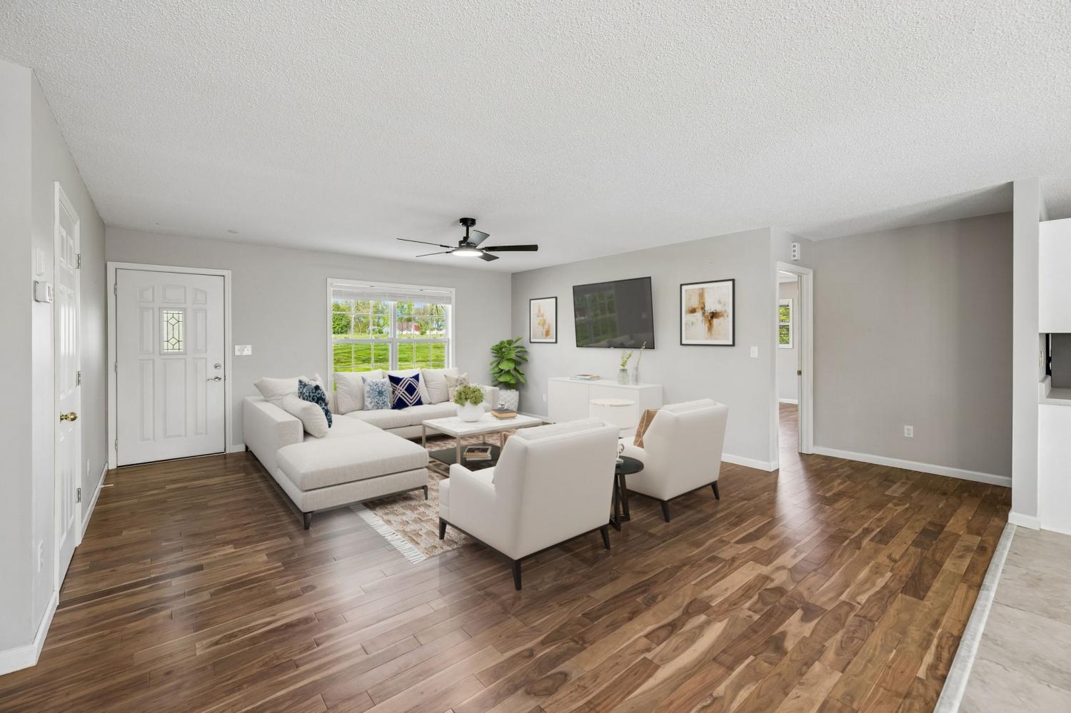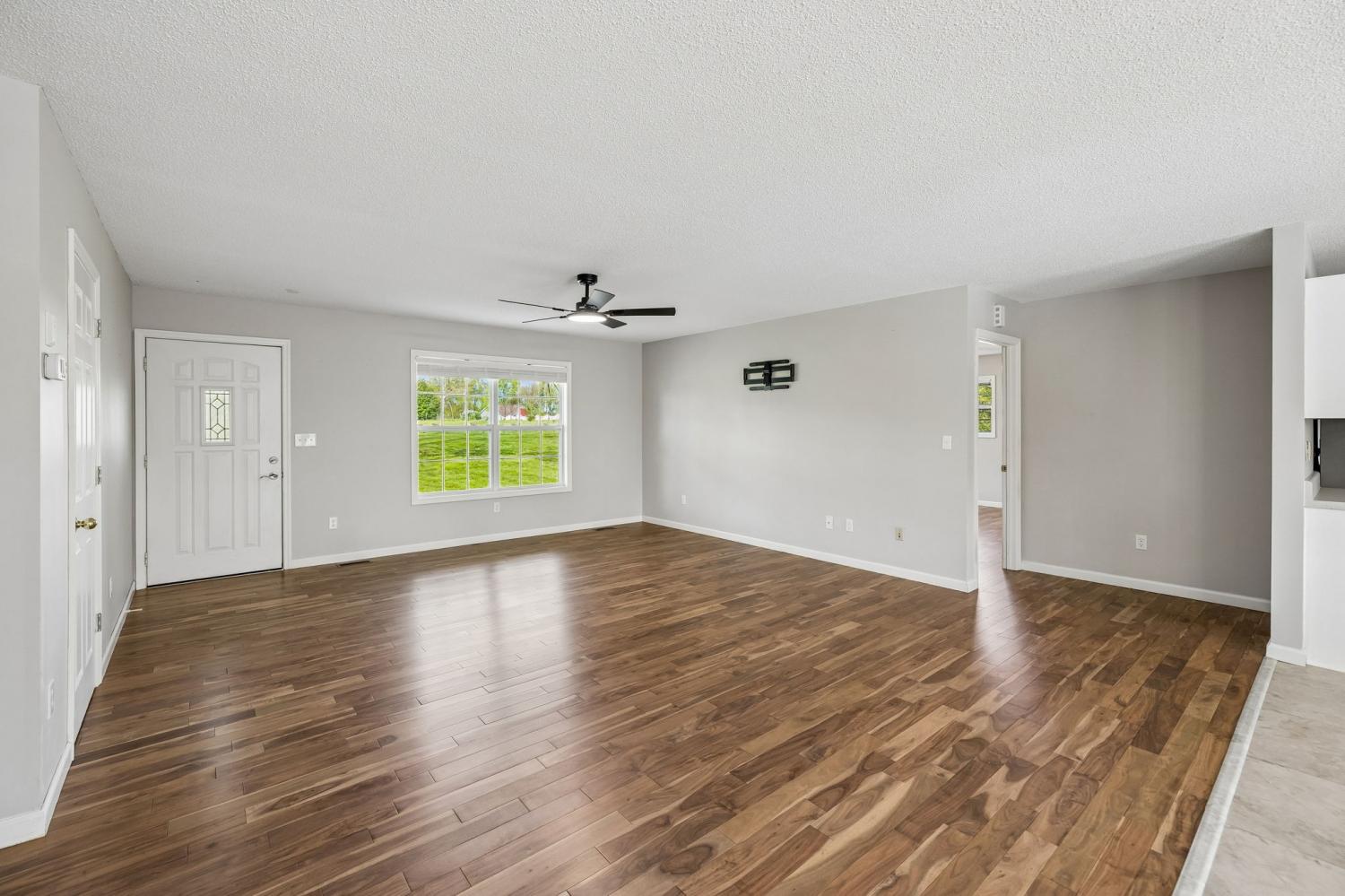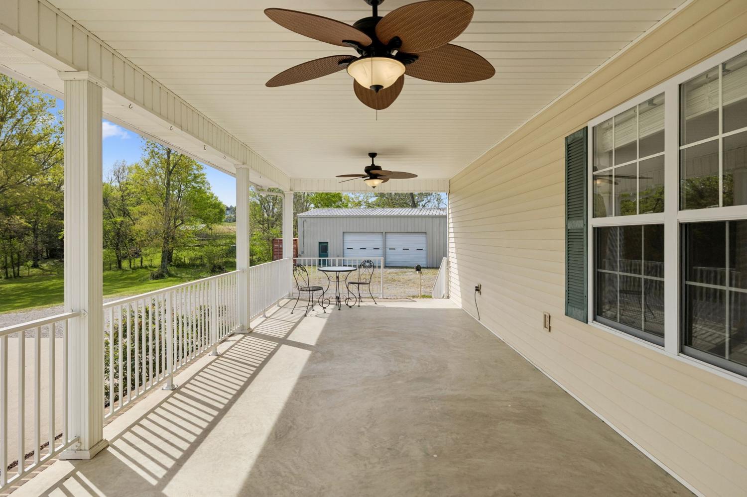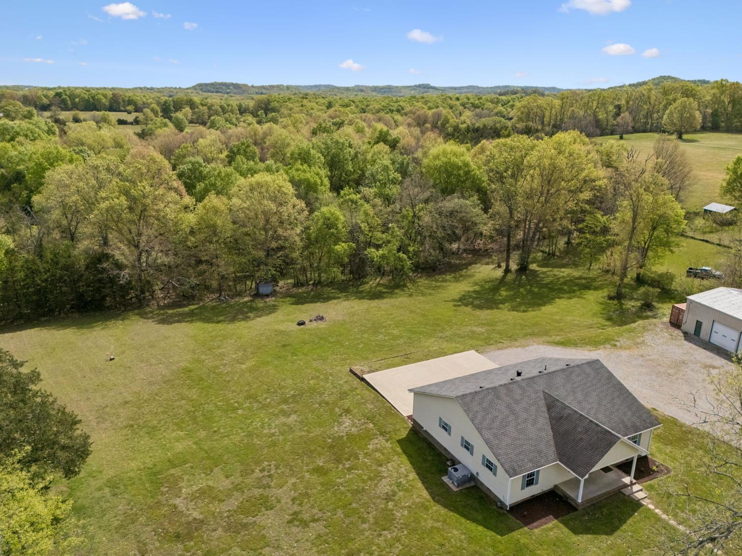 One-level ranch home set on over 4 acres offering a peaceful country feel with the convenience downtown close by. The home sits well off the road and is peppered by mature trees, including a beautiful wooded backdrop behind the property. Inside, the open floor plan connects the living, dining, and kitchen areas, with new flooring throughout the main spaces and primary bedroom. The kitchen includes a large pantry and all new appliances—refrigerator, stove, microwave, washer, and dryer—making it truly move-in ready. The home offers 2 full baths, along with a spacious laundry/mud room that includes its own half bath and built-in ironing board. A tankless water heater has been installed in the crawl space. Step outside to a large, covered patio along with an extended concrete patio and parking area. A standout feature is the 52’ x 35’ shop, complete with its own half bath, LED lighting, 220v power, car lift, and two 12’ x 12’ doors with electric openers—perfect for a workshop, business use, or serious hobby space. If you’re looking for space, functionality, and a quiet setting without being too far out, come take a look.