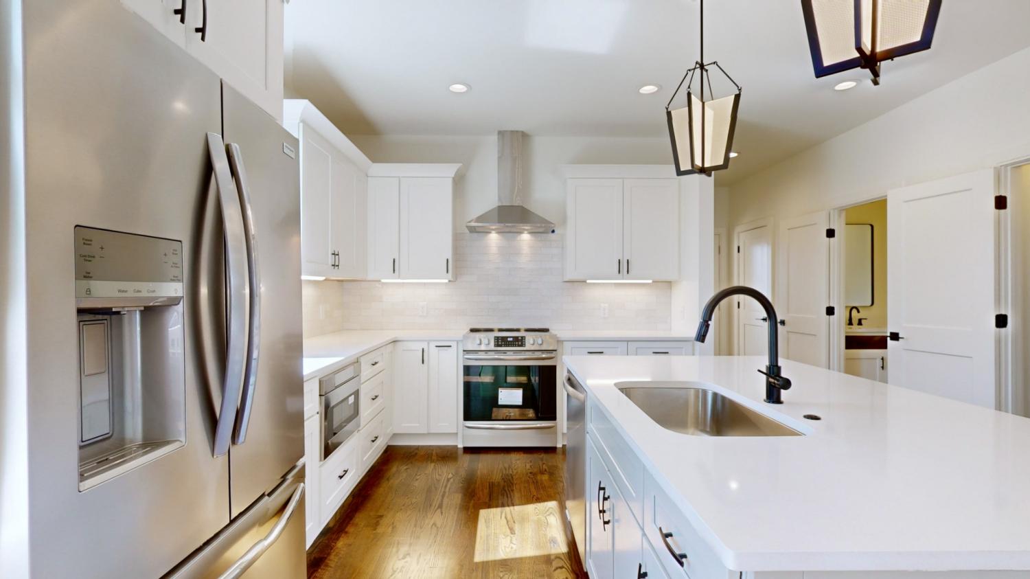 Don't miss the Carl Pl and The Nations lifestyle and property videos linked below. Enjoy a brand new home in Nashville's top, trendy & convenient location. A sweet and simple walking experience to coffee shops, restaurants, and West Park. This home features three stories with open living space on the main floor a fantastic master suite on the 2nd floor with a second room that can be an office, nursery, extra BR, etc,, Plus 2 BRs with a Jack and Jill bath on the top floor. With great outdoor spaces, a back decks accessible from the kitchen for grilling and dining and 2nd floor deck off of the 2nd floor bedroom/office, a front porch, and a huge full rooftop deck with views This home is on a quiet street yet has easy access to the interstate and is a quick 10 minute drive to Downtown.The seller is offering a FULL YEAR warranty from the day of close along with a blue tape walk before close.This house has flexible space and while listed as a 3 BR with an office, it could also be 4 BR.