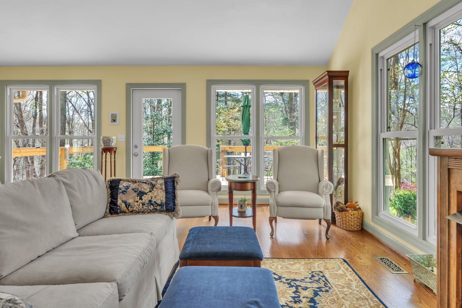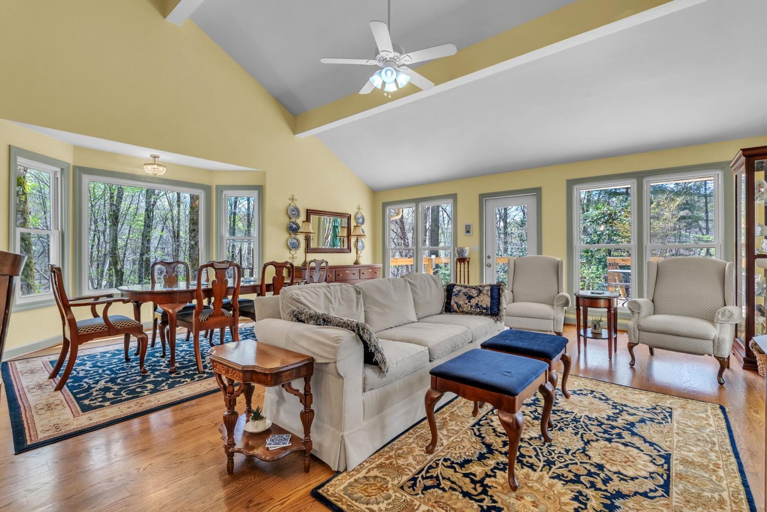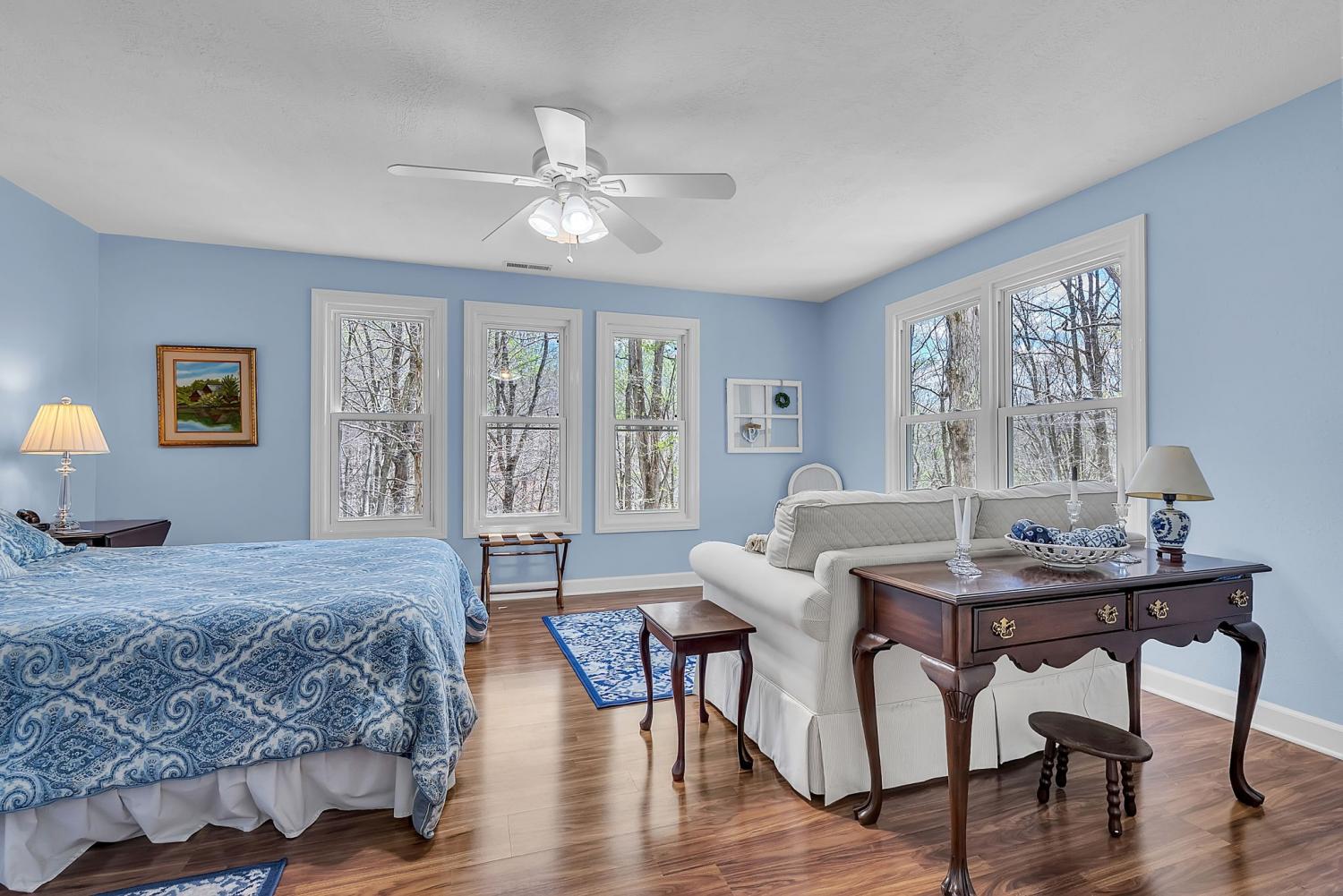 Tucked away on nearly 6 acres of wooded privacy, this Manchester retreat feels straight out of a storybook. Winding pea gravel pathways lead through lush low maintenance landscaping and hidden gardens perfect for quiet moments or entertaining. Inside, this 3-bedroom home offers over 3,000 sq ft of character and comfort, with multiple living areas with lots of storage, laundry capable on 1st & 2nd floors, a partial basement with an outside entrance for recreation or storage, and a bonus room/office on the third floor. The primary suite is a private escape, and every room is designed with warmth, style, and versatility. Don't miss the Murphy Bed on the second floor. Step outside to enjoy a rare balance of privacy and livability...morning coffee on the deck, evening strolls through the gardens, and weekends spent under the trees. This is more than a home; it’s a lifestyle.