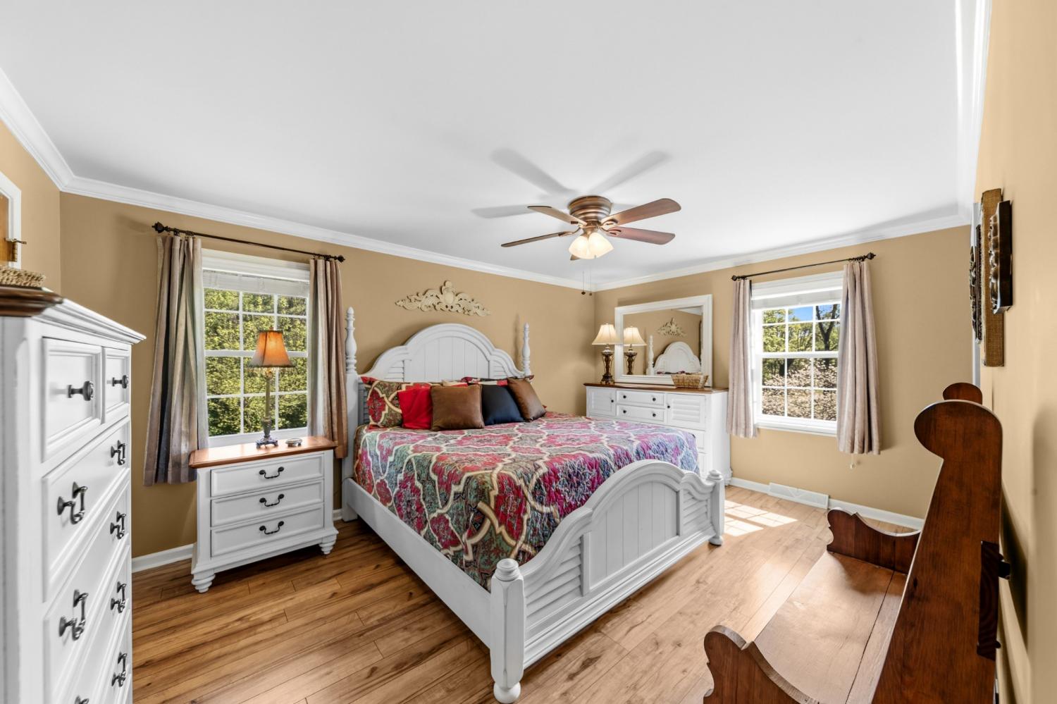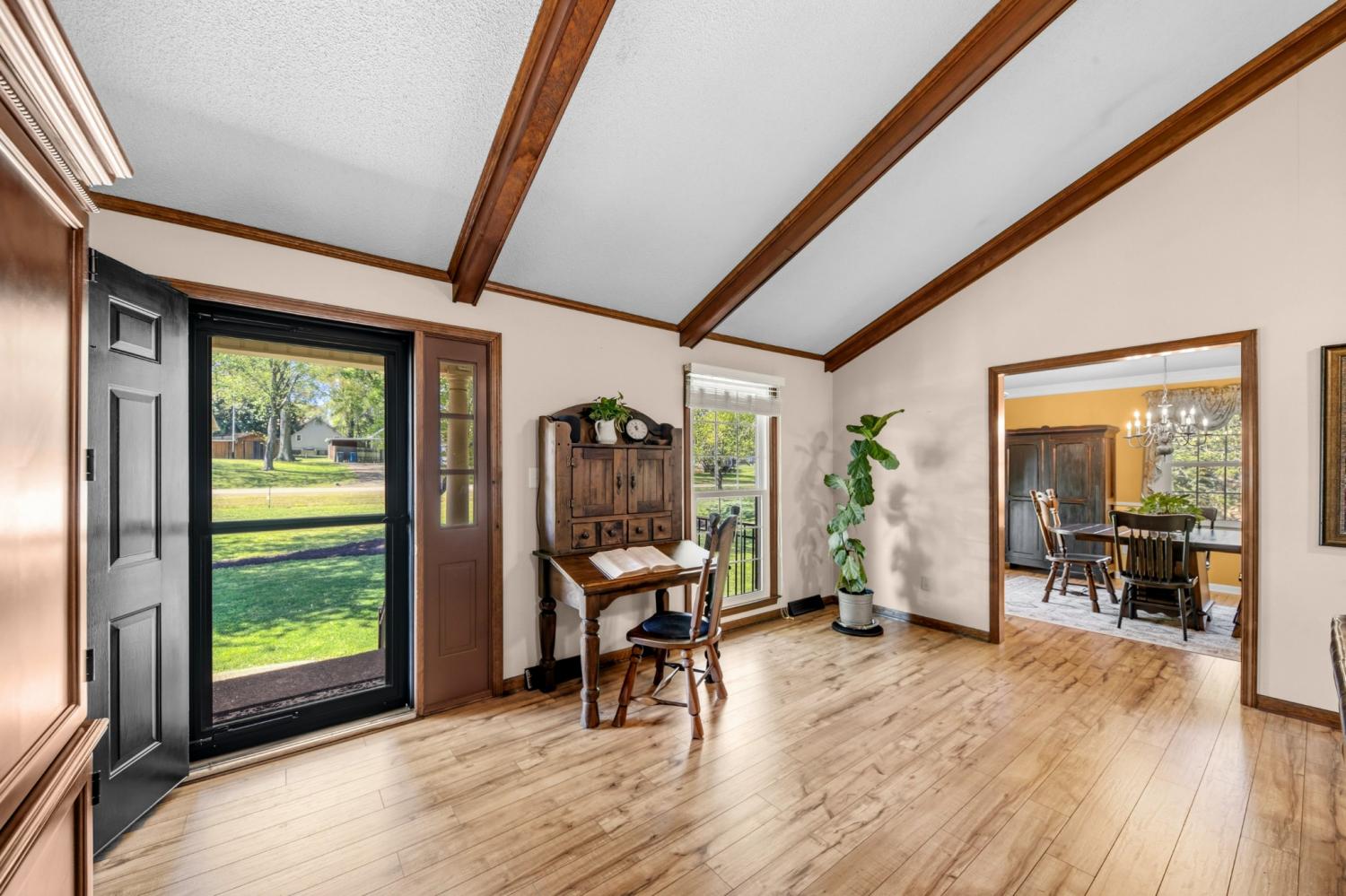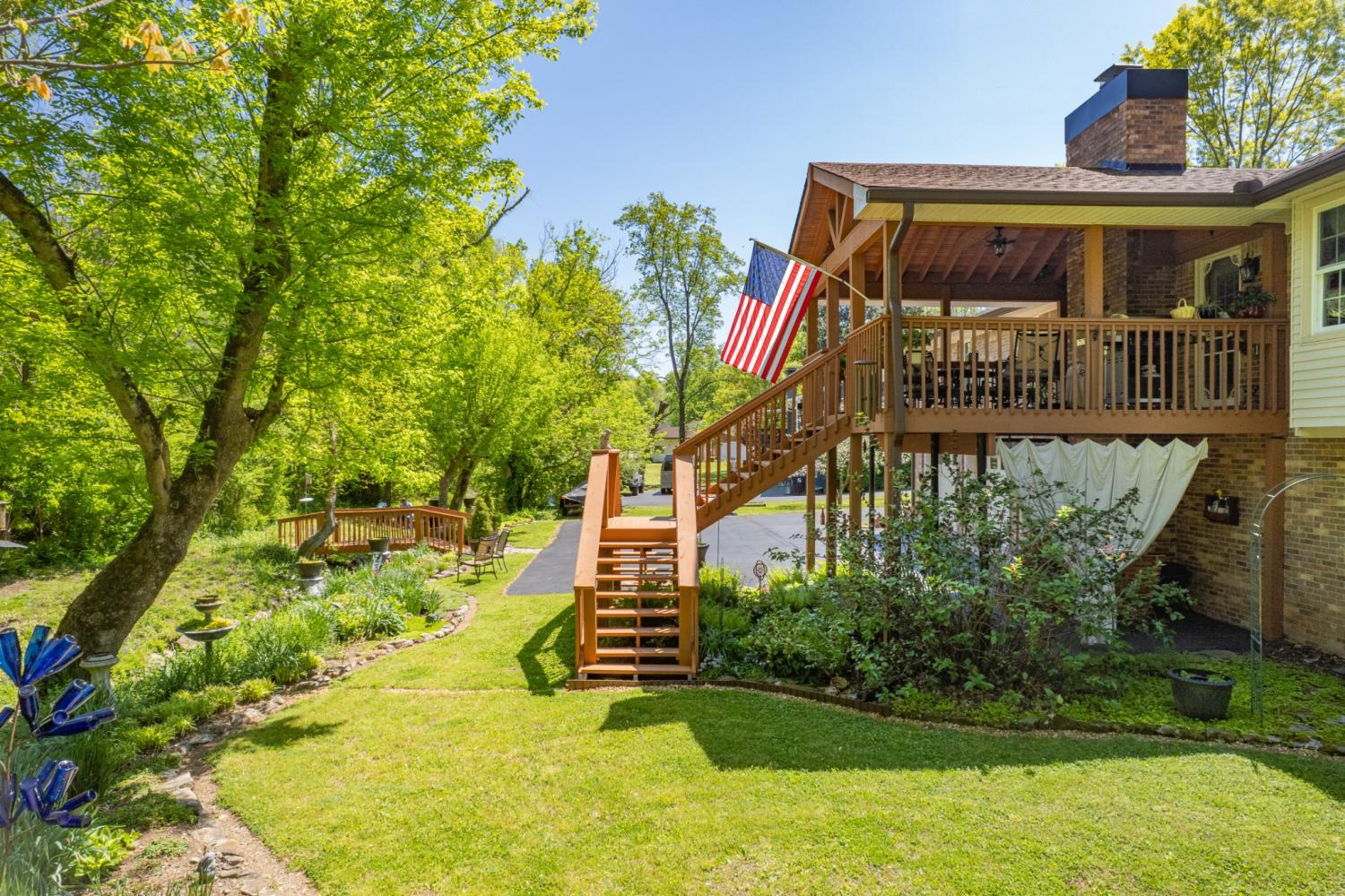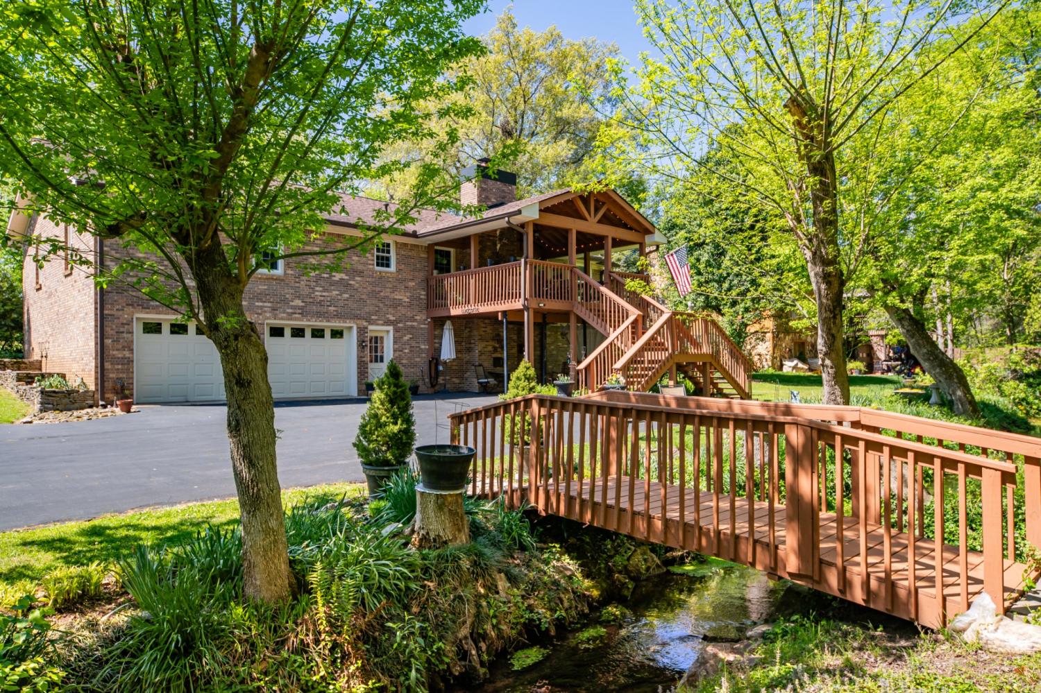 Rare opportunity in the highly sought-after Sunnyside community! Where timeless charm, natural beauty, unbeatable convenience and privacy come together.Located just minutes from shopping, dining, healthcare, golf courses, and everyday essentials, this home offers the ideal blend of peaceful living with in-town accessibility. From the moment you arrive, the exceptional curb appeal stands out. Mature trees, established landscaping, vibrant flowers & year-round creek, create a setting that newer neighborhoods simply can’t replicate.The storybook like setting and inviting rocking chair front porch welcomes you in and sets the tone for this well-loved home. Inside, you’ll find vaulted ceilings with exposed beams & a cozy gas fireplace anchoring the living room.Enjoy cooking on the gas range in the kitchen featuring a breakfast nook with bay windows and stainless appliances. New windows throughout and no carpet provide a clean, low-maintenance feel. The true showstopper is the expansive covered back deck, designed for year-round enjoyment. Overlooking a private, tree-lined backyard and a picturesque, year-round creek, this outdoor space offers a level of peace and privacy that is incredibly hard to find, especially this close to town. Enjoy regular wildlife sightings including birds and deer while relaxing in your own backyard retreat. Full basement features 8.5 ft ceilings and over 1,000 sqft of expansion potential.With a generous 2-car garage on one side,the remaining space could easily be finished into an in-law suite, bonus room, or additional living area. It also provides ideal storm shelter space, workshop potential, & abundant storage. A gas furnace is already installed to heat the basement. Lovingly maintained by the same owners for 46 years, this home offers character, space, and opportunity in one of Columbia’s most desirable and established neighborhoods in the Woodard Elementary School District. Come check it out for yourself!