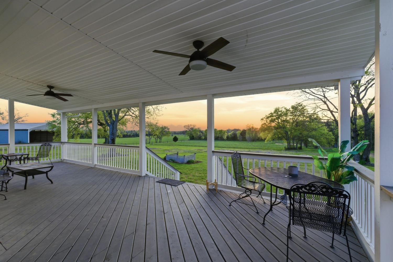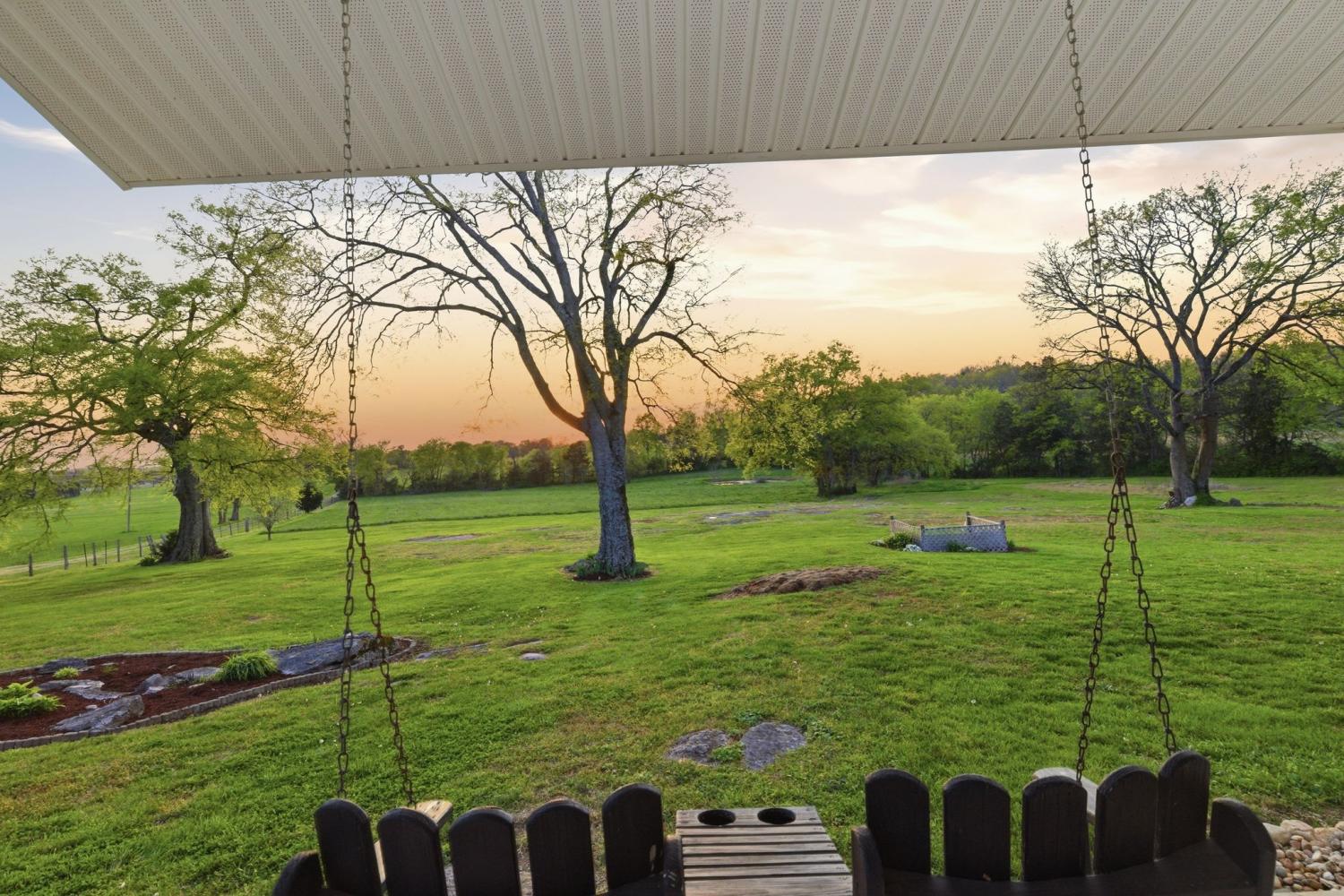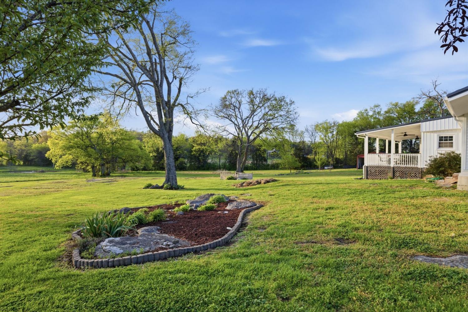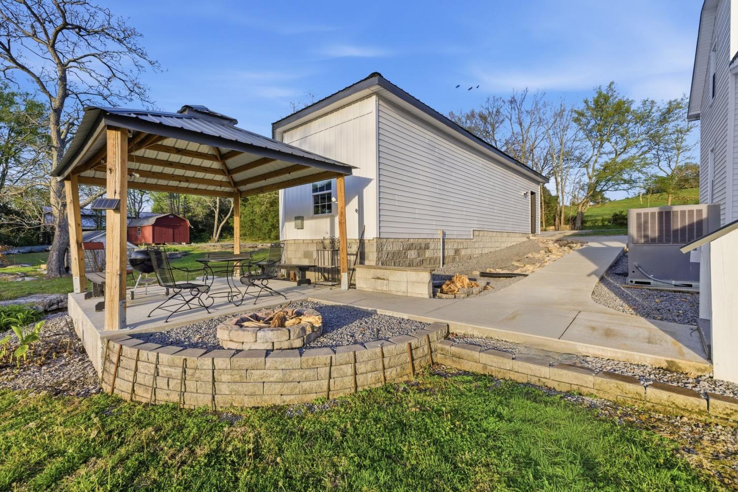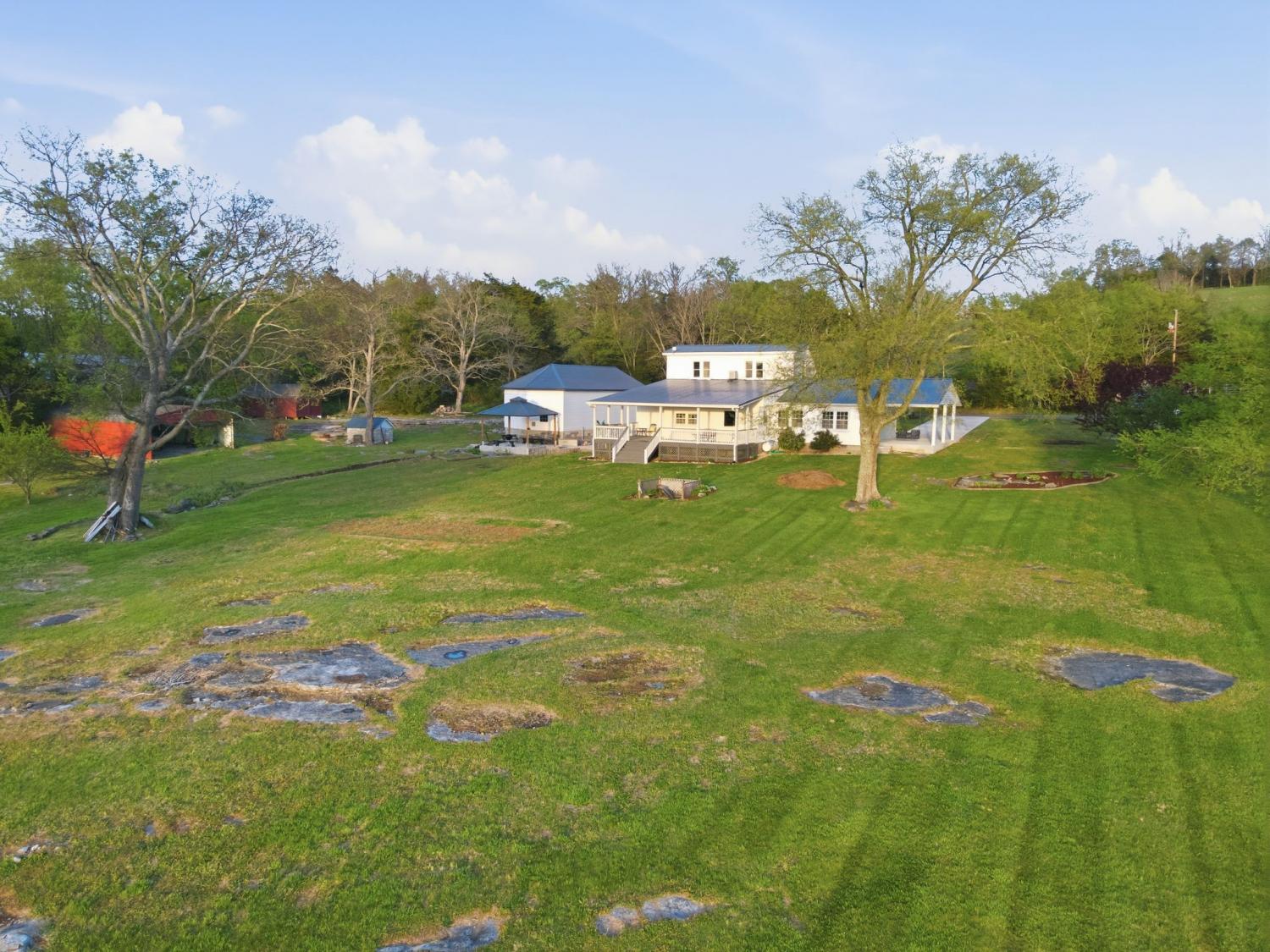Enjoy sunsets in the countryside from the covered back porch or pavilion, overlooking your private 5+ acres, all less than 10 minutes from the Square. Well maintained over the years with downstairs bedrooms, main level living, and outdoor spaces ready for you to relax in today. Having an apple tree, plum tree, pear tree, and two peach trees helps add to the historic charm of the original structure that has stood the test of time (believed to be from the late 1800's). Crawlspace has been encapsulated, downstairs HVAC unit replaced 2023. Large exterior garage added in 2021, along with the covered back porch and backyard pavilion. Substantial concrete sidewalks and driveways, new siding, and standing seam metal roof that year as well. Original bathroom renovated in 2019, larger downstairs bathroom and downstairs den area renovated in 2018. Windows are somewhere in that 15 year old range.