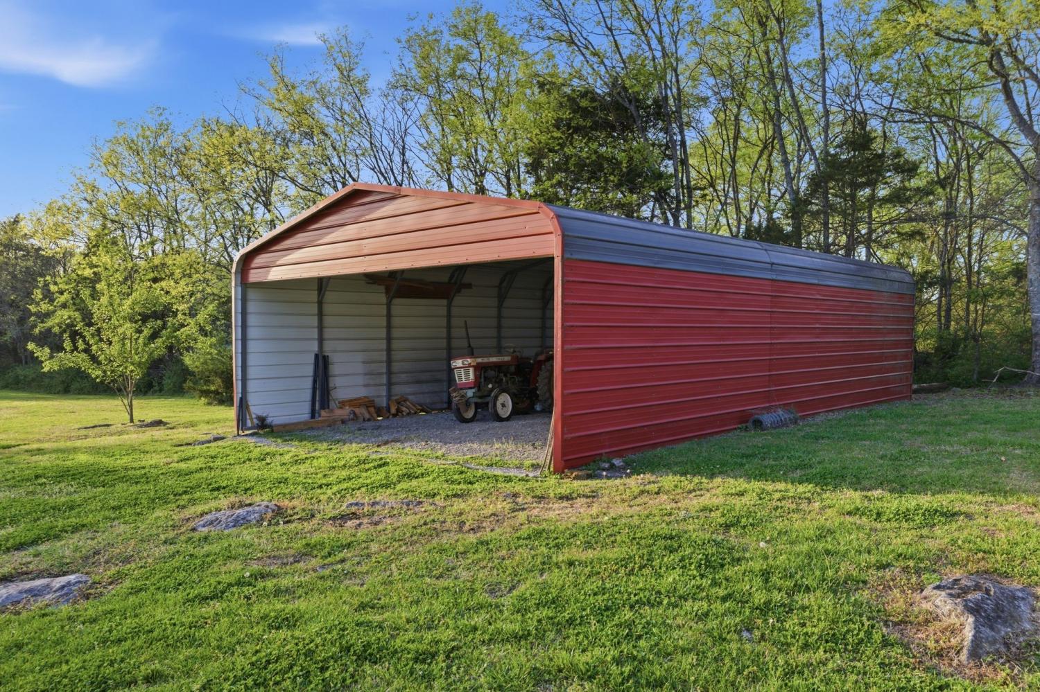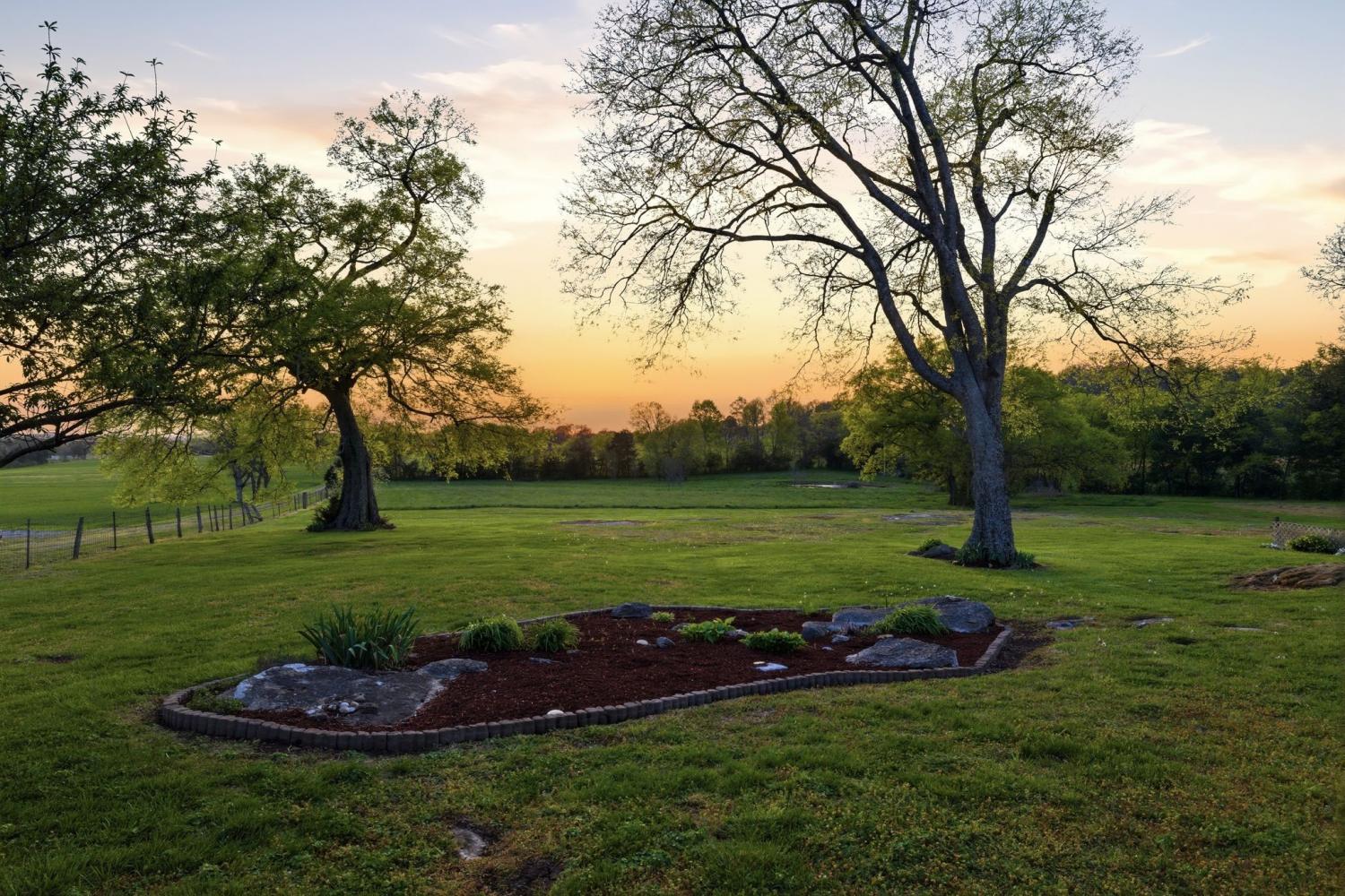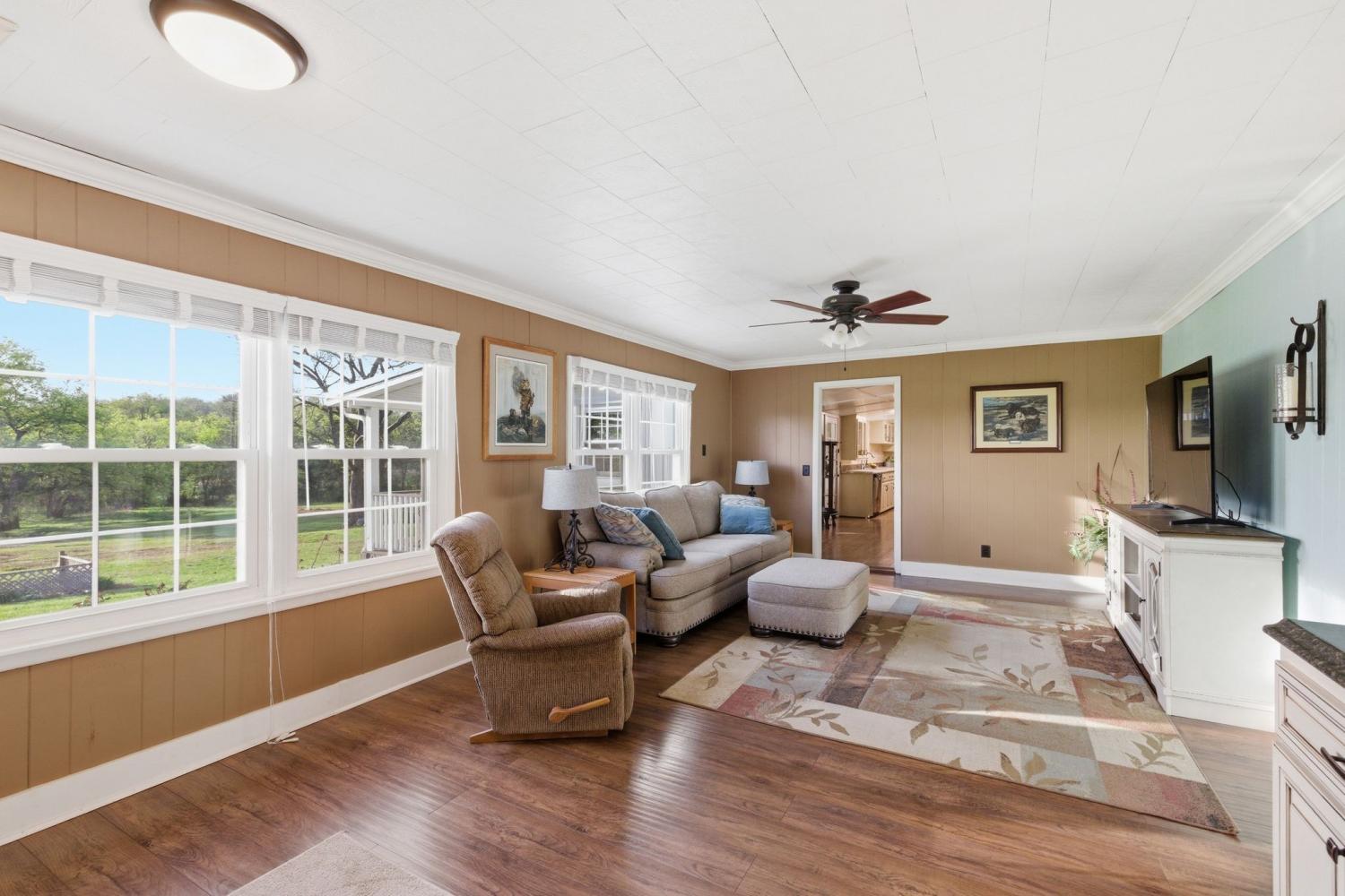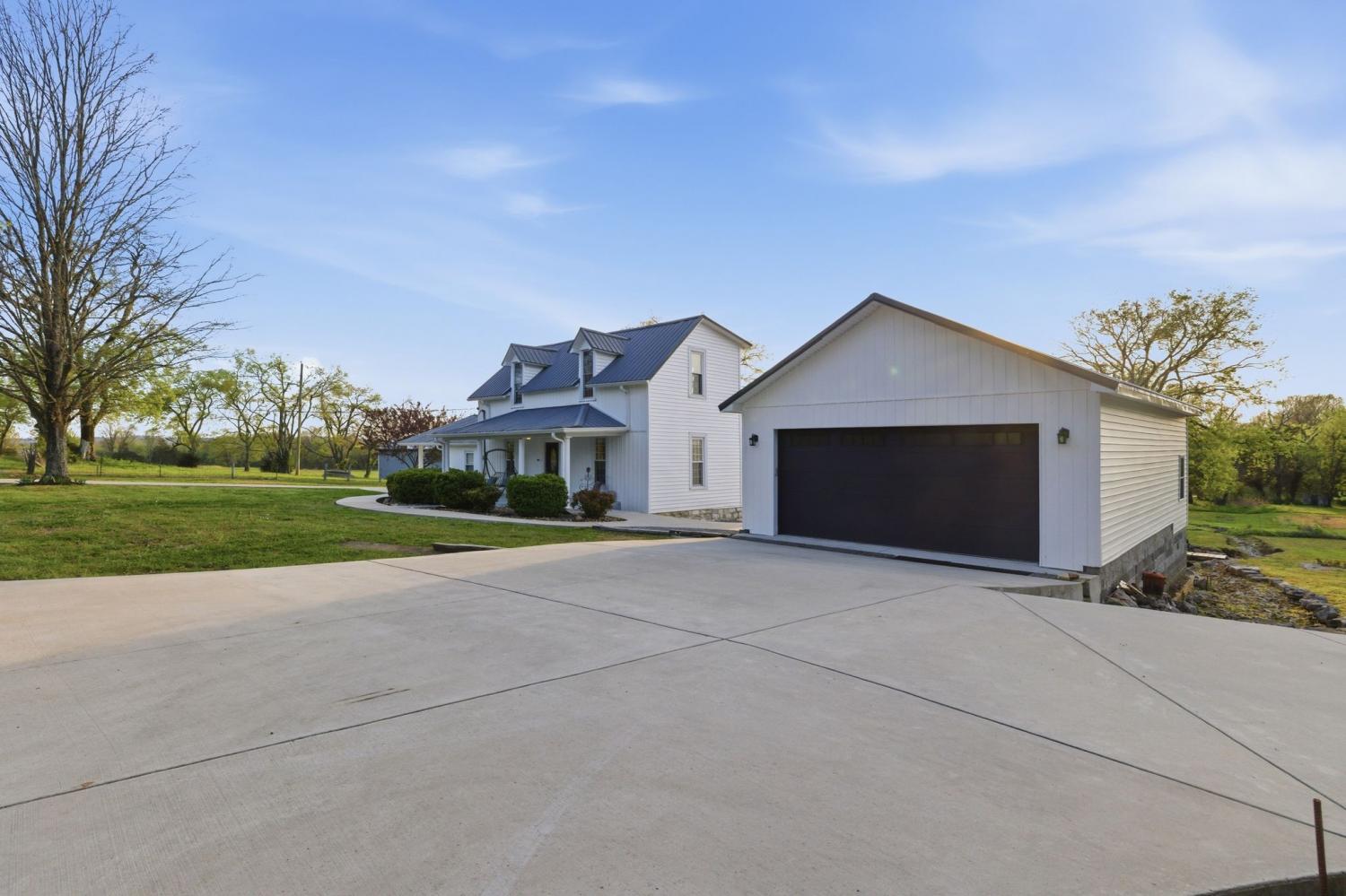 Enjoy sunsets in the countryside from the covered back porch or pavilion, overlooking your private 5+ acres, all less than 10 minutes from the Square. Well maintained over the years with downstairs bedrooms, main level living, and outdoor spaces ready for you to relax in today. Having an apple tree, plum tree, pear tree, and two peach trees helps add to the historic charm of the original structure that has stood the test of time (believed to be from the late 1800's). Crawlspace has been encapsulated, downstairs HVAC unit replaced 2023. Large exterior garage added in 2021, along with the covered back porch and backyard pavilion. Substantial concrete sidewalks and driveways, new siding, and standing seam metal roof that year as well. Original bathroom renovated in 2019, larger downstairs bathroom and downstairs den area renovated in 2018. Windows are somewhere in that 15 year old range.