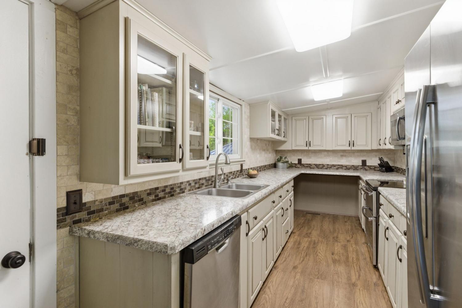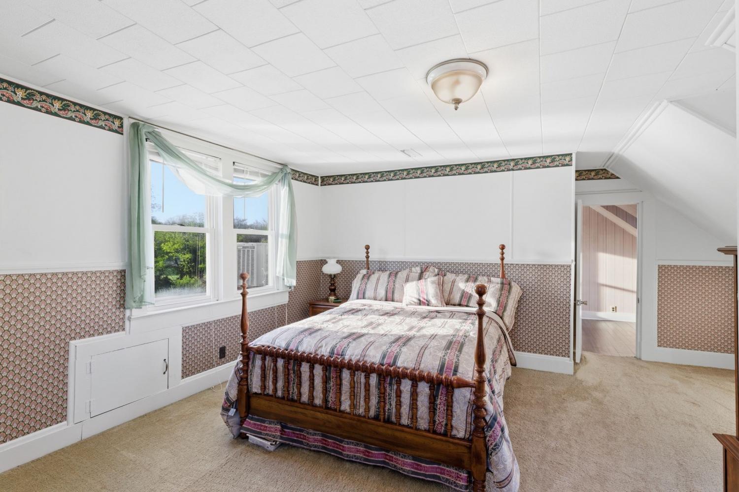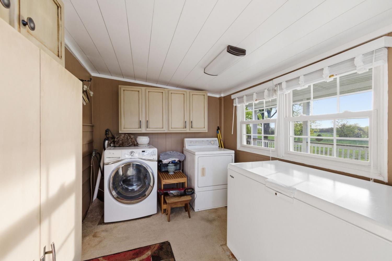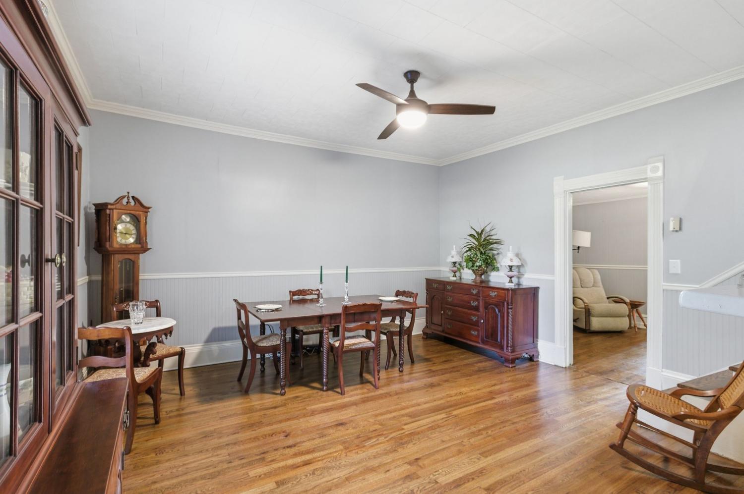 Enjoy sunsets in the countryside from the covered back porch or pavilion, overlooking your private 5+ acres, all less than 10 minutes from the Square. Well maintained over the years with downstairs bedrooms, main level living, and outdoor spaces ready for you to relax in today. Having an apple tree, plum tree, pear tree, and two peach trees helps add to the historic charm of the original structure that has stood the test of time (believed to be from the late 1800's). Crawlspace has been encapsulated, downstairs HVAC unit replaced 2023. Large exterior garage added in 2021, along with the covered back porch and backyard pavilion. Substantial concrete sidewalks and driveways, new siding, and standing seam metal roof that year as well. Original bathroom renovated in 2019, larger downstairs bathroom and downstairs den area renovated in 2018. Windows are somewhere in that 15 year old range.