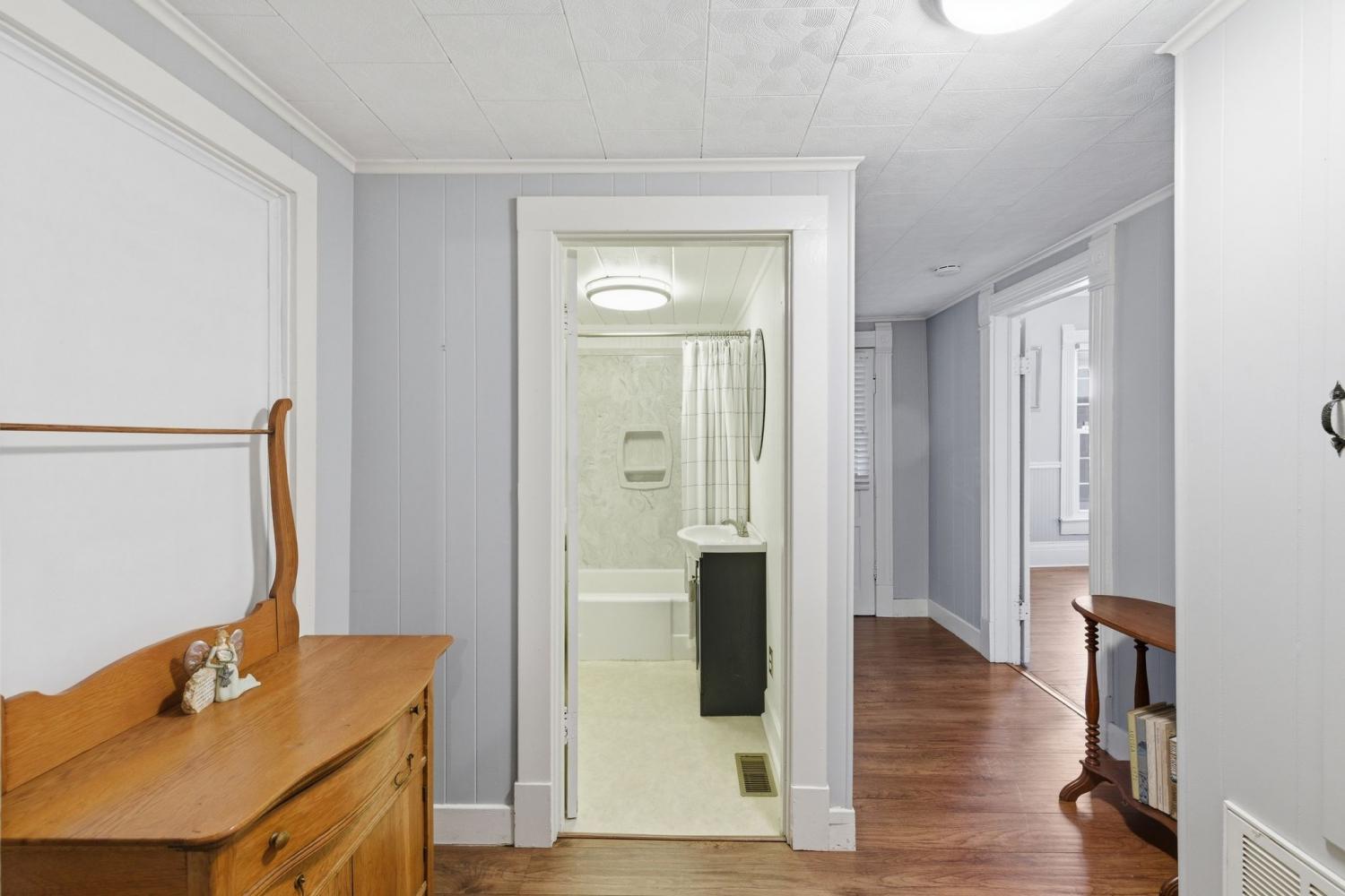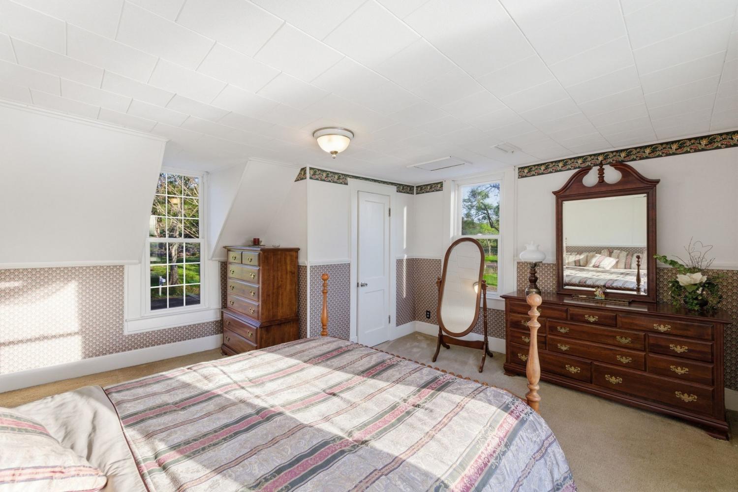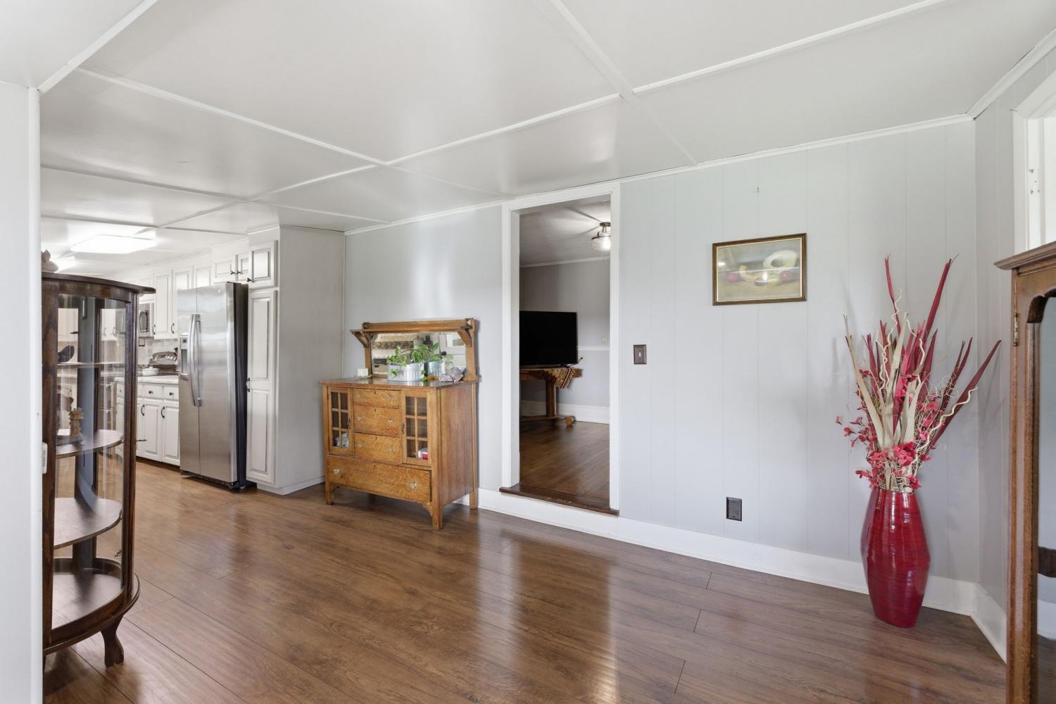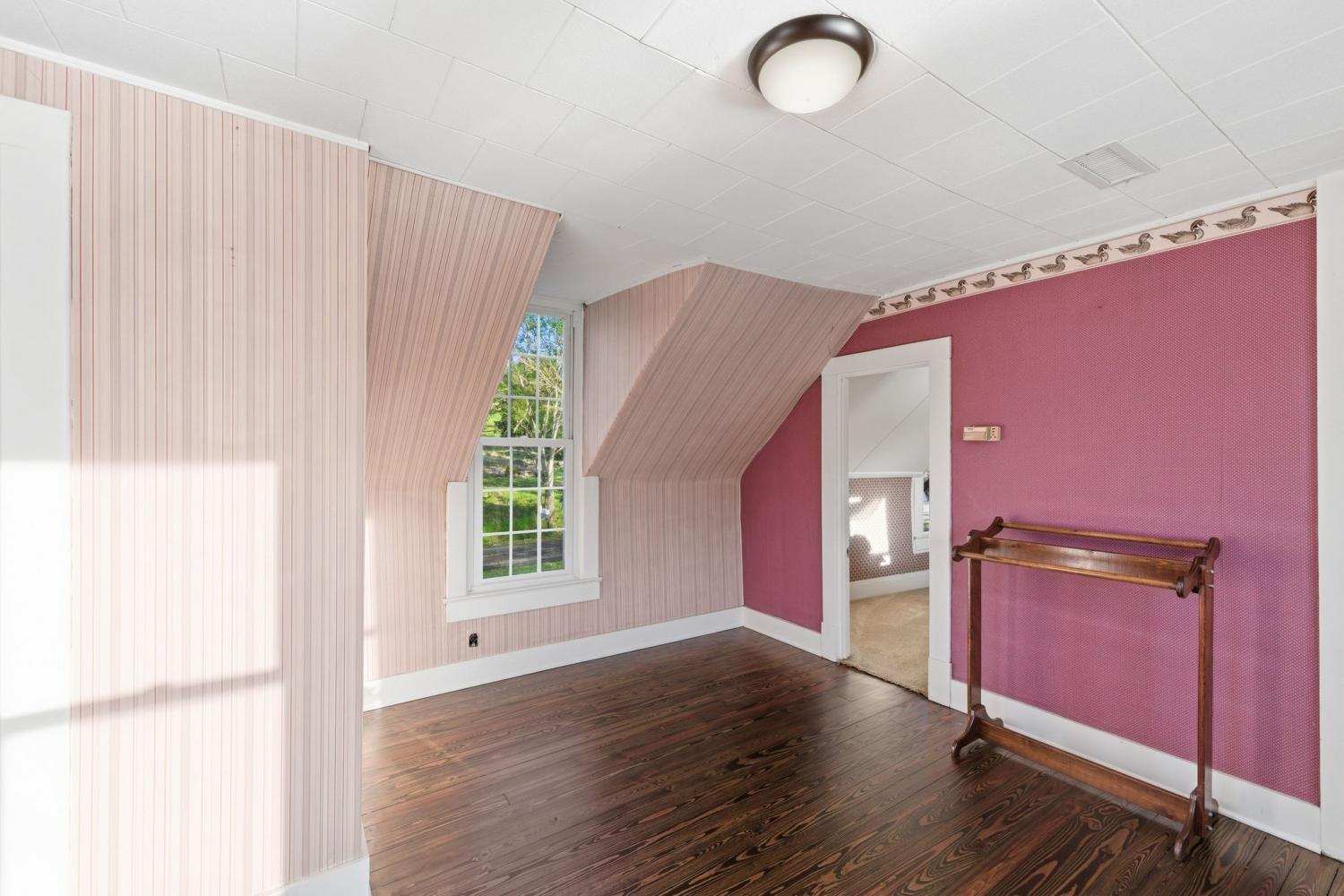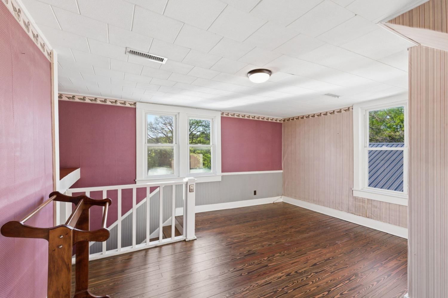 Enjoy sunsets in the countryside from the covered back porch or pavilion, overlooking your private 5+ acres, all less than 10 minutes from the Square. Well maintained over the years with downstairs bedrooms, main level living, and outdoor spaces ready for you to relax in today. Having an apple tree, plum tree, pear tree, and two peach trees helps add to the historic charm of the original structure that has stood the test of time (believed to be from the late 1800's). Crawlspace has been encapsulated, downstairs HVAC unit replaced 2023. Large exterior garage added in 2021, along with the covered back porch and backyard pavilion. Substantial concrete sidewalks and driveways, new siding, and standing seam metal roof that year as well. Original bathroom renovated in 2019, larger downstairs bathroom and downstairs den area renovated in 2018. Windows are somewhere in that 15 year old range.