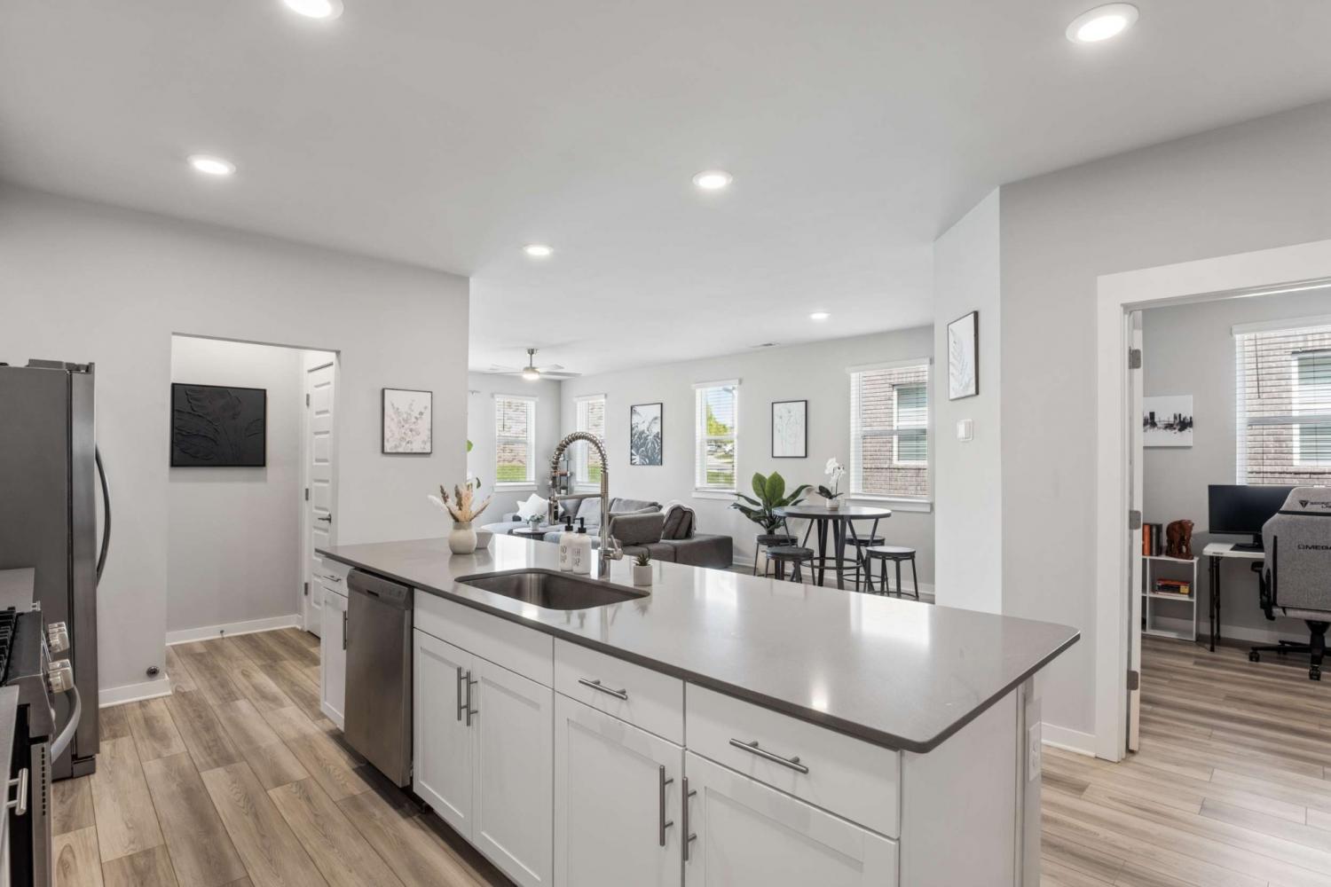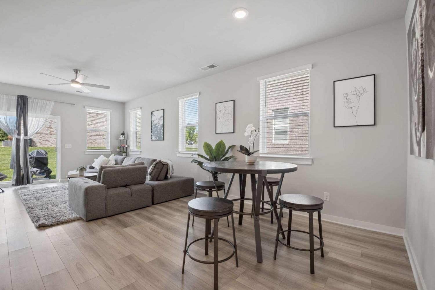Immaculate, move-in-ready 2-bedroom, 2-bath villa in Hendersonville’s highly sought-after Durham Farms. Designed for sensible living, this home features a desirable one-level, open concept with a large upstairs bonus room, an ideal media retreat or guest suite. Perfect for both everyday comfort and entertaining, this well-appointed kitchen includes a spacious center island, stainless steel appliances, and generous prep space, all seamlessly flowing into the great room and dining area. A dedicated main-level office offers added versatility for today’s lifestyle. Relax and unwind on the inviting covered front porch or barbeque on the rear patio while overlooking the charming backyard. With lawn care included in the HOA, enjoy the convenience of low-maintenance living. There is also an oversized two-car garage that provides ample parking and storage space, completing this exceptional home.