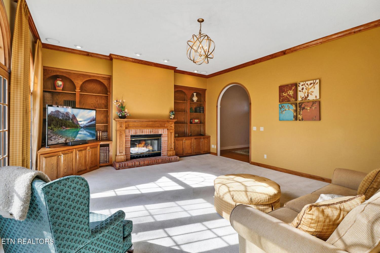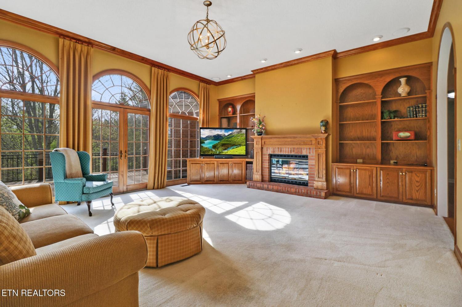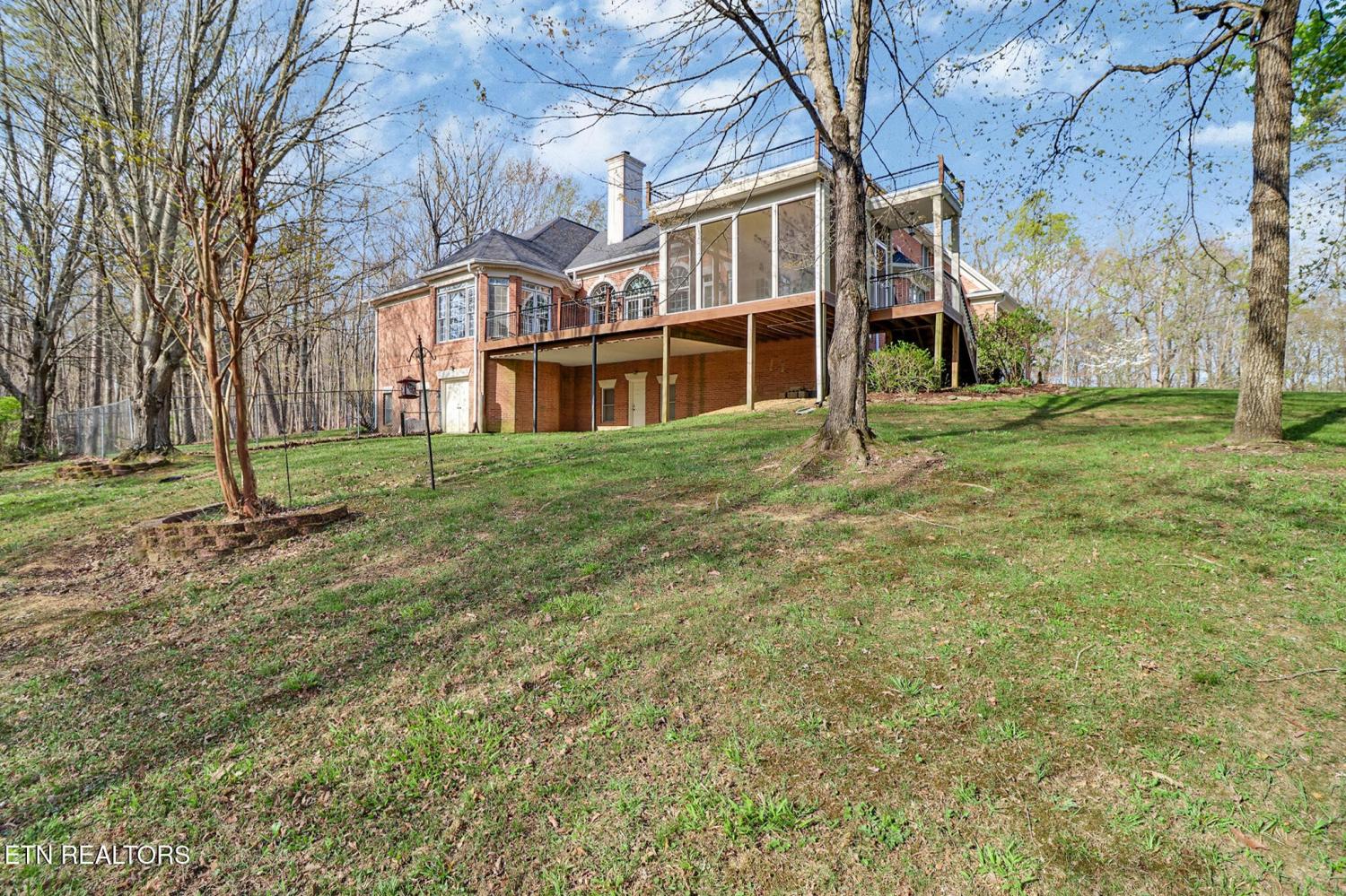 One-of-a-kind, custom all-brick home on a paved circular driveway with professional landscaping and mature hardwoods for exceptional privacy. Enter a grand foyer beneath soaring ceilings, elegant crown molding, and gleaming hardwood floors. The formal dining room is ideal for family gatherings. Any chef's dream kitchen features custom cabinetry, granite countertops, center island, large pantry, and a sunny breakfast nook overlooking the private backyard and wildlife. Enjoy morning coffee on the screened porch or relax on the open deck off the kitchen--perfect for grilling and outdoor living. The spacious family room offers a gas fireplace, custom built-ins, and Bose surround sound. The main level luxurious master suite includes a bay-window sitting area, dual closets, double vanities, whirlpool tub, and a tiled walk-in shower. Two other generous main-floor bedrooms share a Jack-and-Jill bath. With an additional bedroom with full bath upstairs. A library/office with built-in shelving provides a quiet workspace. The walkout basement features a finished bonus room plus two additional rooms for storage or future finishing. Outside amenities include a paved basketball court with a covered picnic area and peaceful walking surroundings. Schedule a showing today to experience this spectacular home.