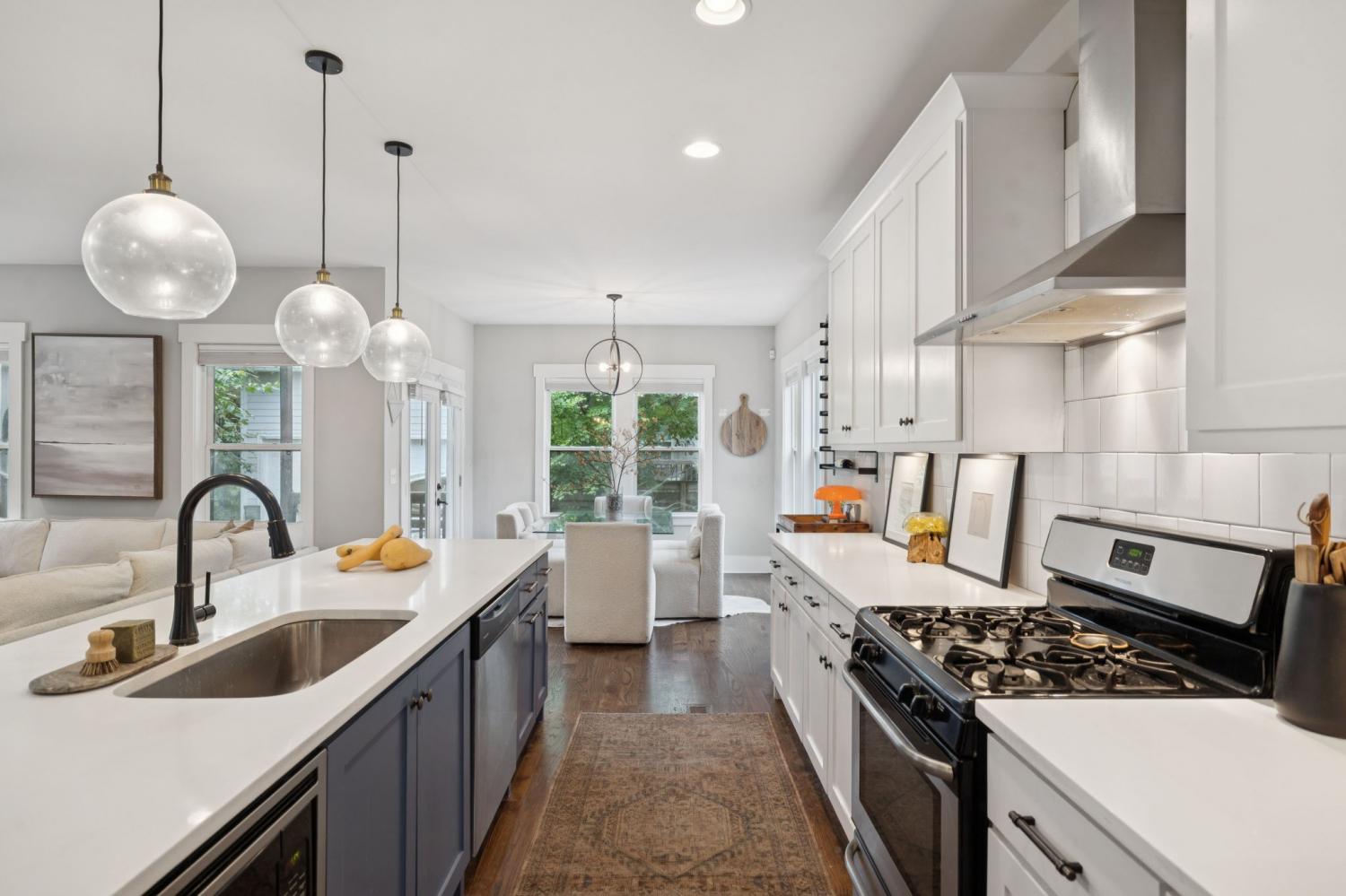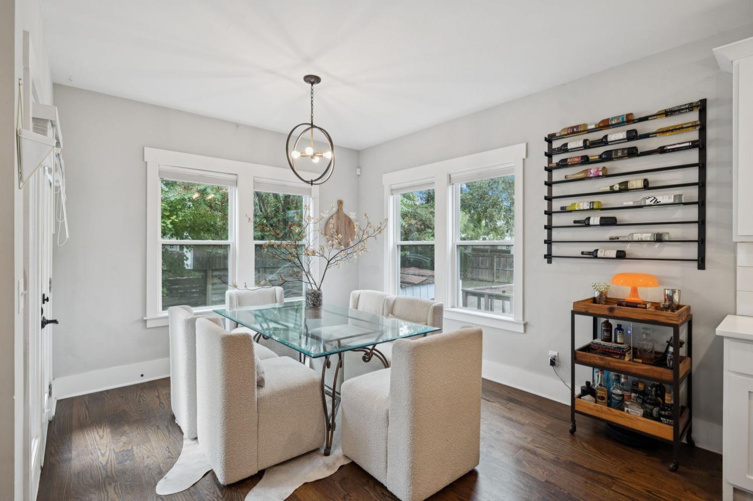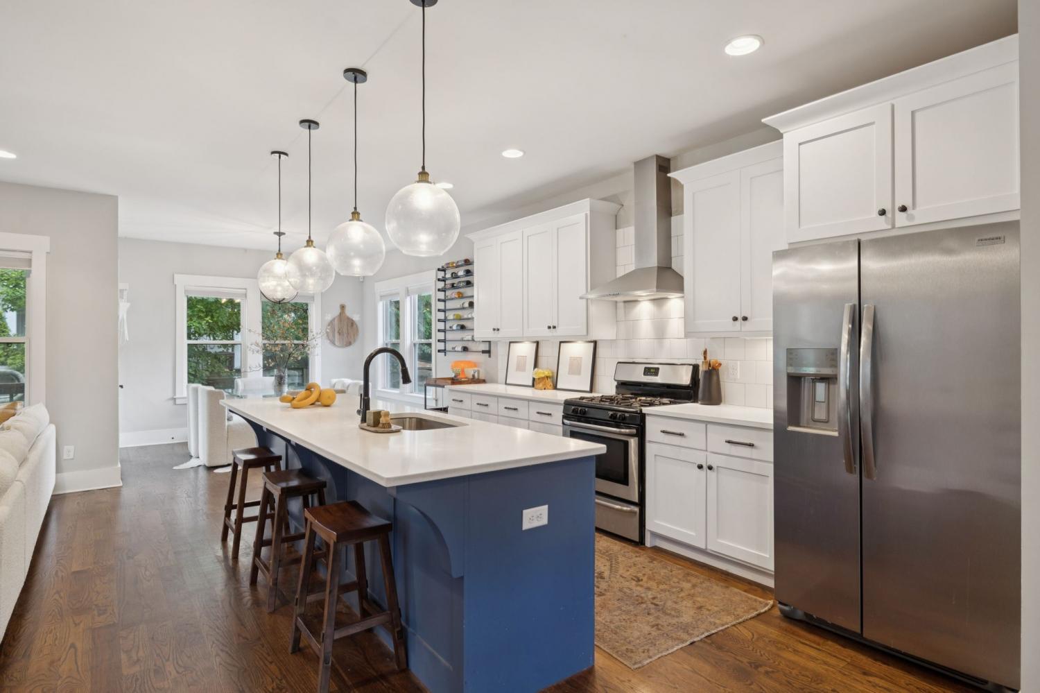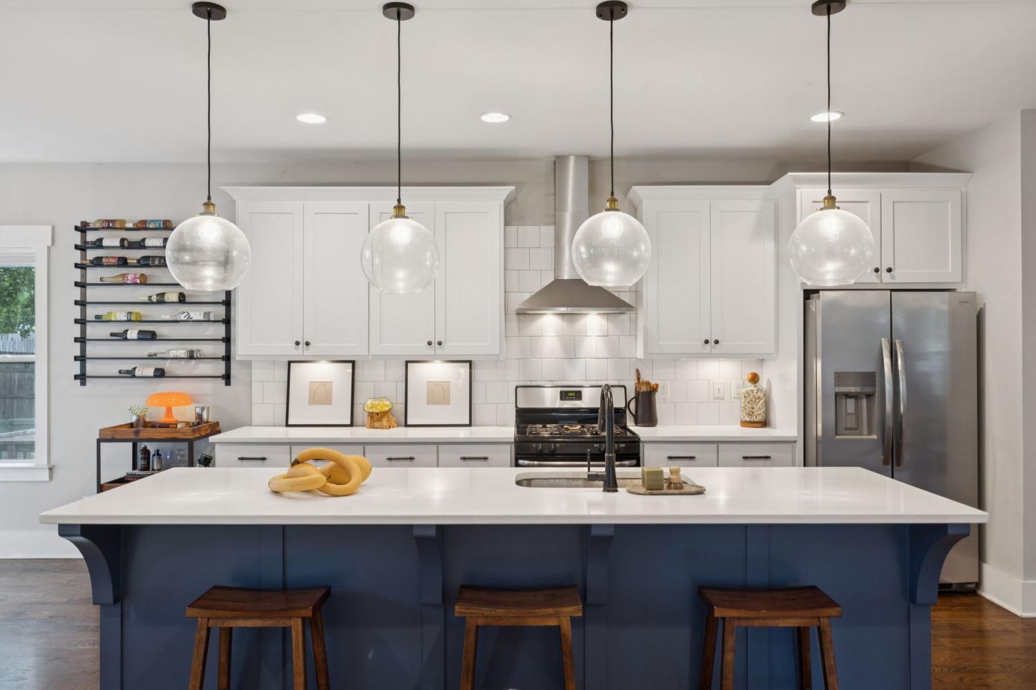 Spacious, light-filled, and not your average HPR, this South Inglewood home stands out with a well-designed layout and custom finishes throughout. It combines generous living space with a highly convenient location just minutes from shopping, dining, and entertainment. The main level features extra-large windows, hardwood floors, a beam-accented living room, built-ins, a breakfast area, and a powder room. The kitchen is designed for both everyday living and entertaining, with an oversized island with seating, gas cooking, quartz countertops, tile backsplash, and a walk-in pantry. Upstairs, all three bedrooms are thoughtfully positioned and offer ample closet space, along with a full secondary bathroom and convenient second-floor laundry. The spacious primary suite includes a private balcony, while the primary bath features a double vanity, large tile shower, and walk-in closet. Outdoor spaces include covered front and back porches, a fenced backyard, and ample off-street parking with a dedicated parking pad. Convenient to downtown and the interstate, with easy access to nearby coffee shops, breweries, restaurants, and more. Select images have been virtually enhanced for marketing purposes only.
