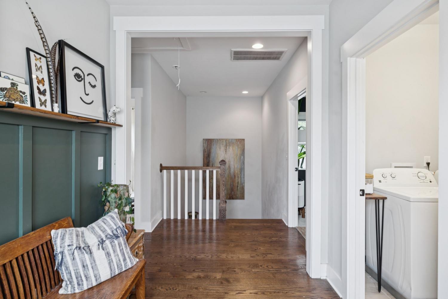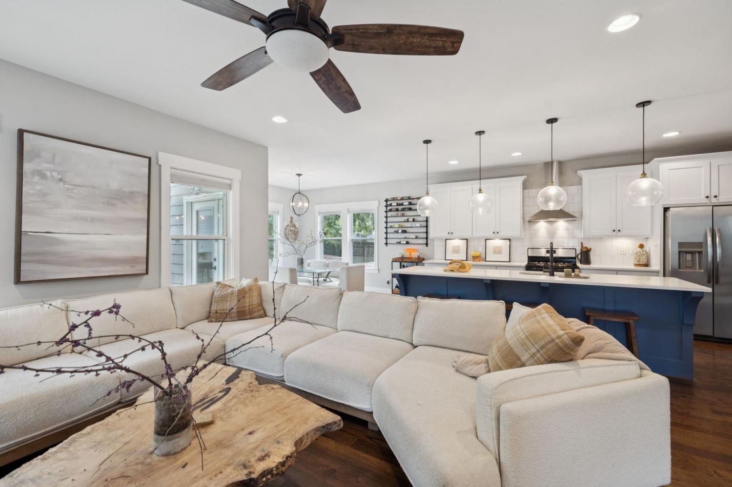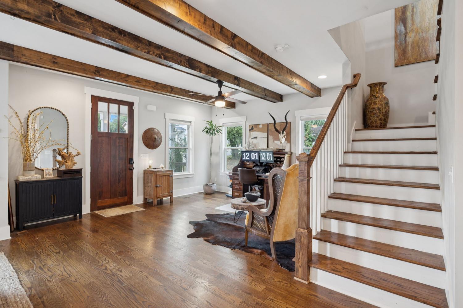 Spacious, light-filled, and not your average HPR, this South Inglewood home stands out with a well-designed layout and custom finishes throughout. It combines generous living space with a highly convenient location just minutes from shopping, dining, and entertainment. The main level features extra-large windows, hardwood floors, a beam-accented living room, built-ins, a breakfast area, and a powder room. The kitchen is designed for both everyday living and entertaining, with an oversized island with seating, gas cooking, quartz countertops, tile backsplash, and a walk-in pantry. Upstairs, all three bedrooms are thoughtfully positioned and offer ample closet space, along with a full secondary bathroom and convenient second-floor laundry. The spacious primary suite includes a private balcony, while the primary bath features a double vanity, large tile shower, and walk-in closet. Outdoor spaces include covered front and back porches, a fenced backyard, and ample off-street parking with a dedicated parking pad. Convenient to downtown and the interstate, with easy access to nearby coffee shops, breweries, restaurants, and more. Select images have been virtually enhanced for marketing purposes only.