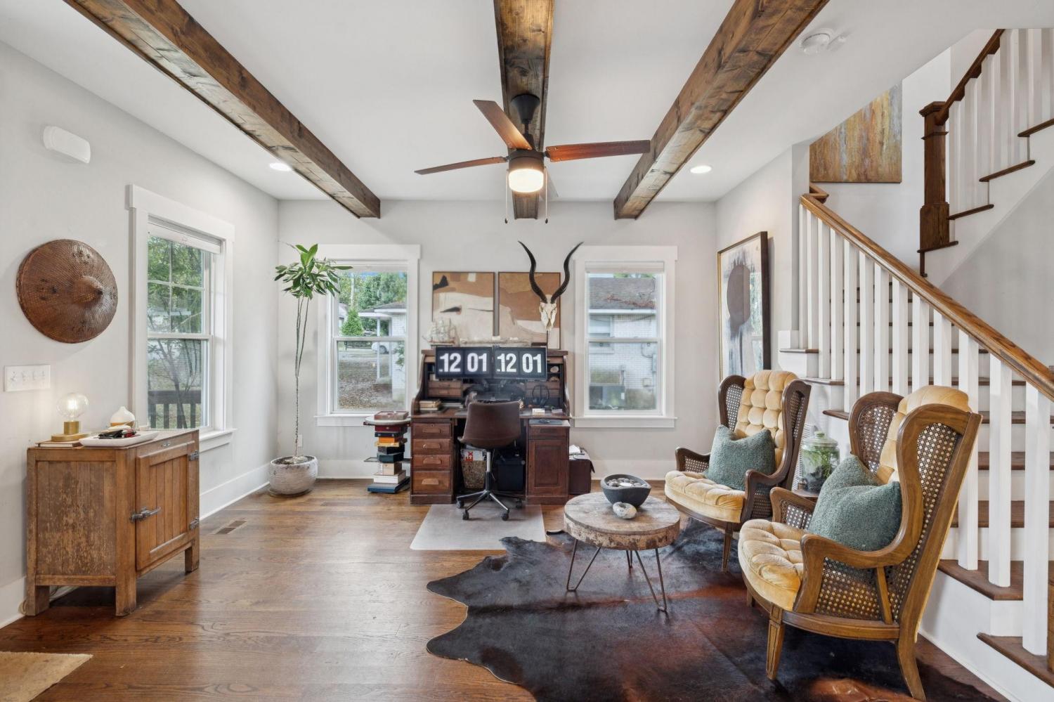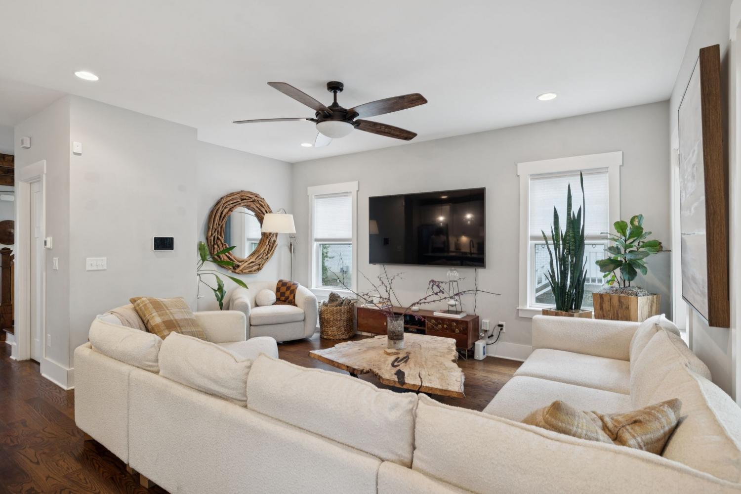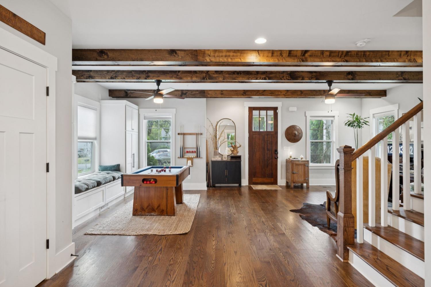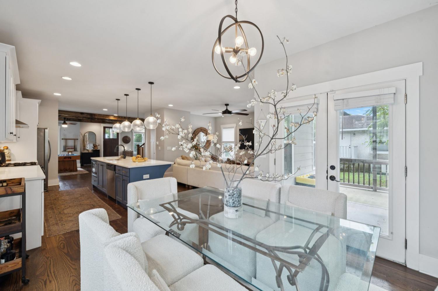 Spacious, light-filled, and not your average HPR, this South Inglewood home stands out with a well-designed layout and custom finishes throughout. It combines generous living space with a highly convenient location just minutes from shopping, dining, and entertainment. The main level features extra-large windows, hardwood floors, a beam-accented living room, built-ins, a breakfast area, and a powder room. The kitchen is designed for both everyday living and entertaining, with an oversized island with seating, gas cooking, quartz countertops, tile backsplash, and a walk-in pantry. Upstairs, all three bedrooms are thoughtfully positioned and offer ample closet space, along with a full secondary bathroom and convenient second-floor laundry. The spacious primary suite includes a private balcony, while the primary bath features a double vanity, large tile shower, and walk-in closet. Outdoor spaces include covered front and back porches, a fenced backyard, and ample off-street parking with a dedicated parking pad. Convenient to downtown and the interstate, with easy access to nearby coffee shops, breweries, restaurants, and more. Select images have been virtually enhanced for marketing purposes only.
