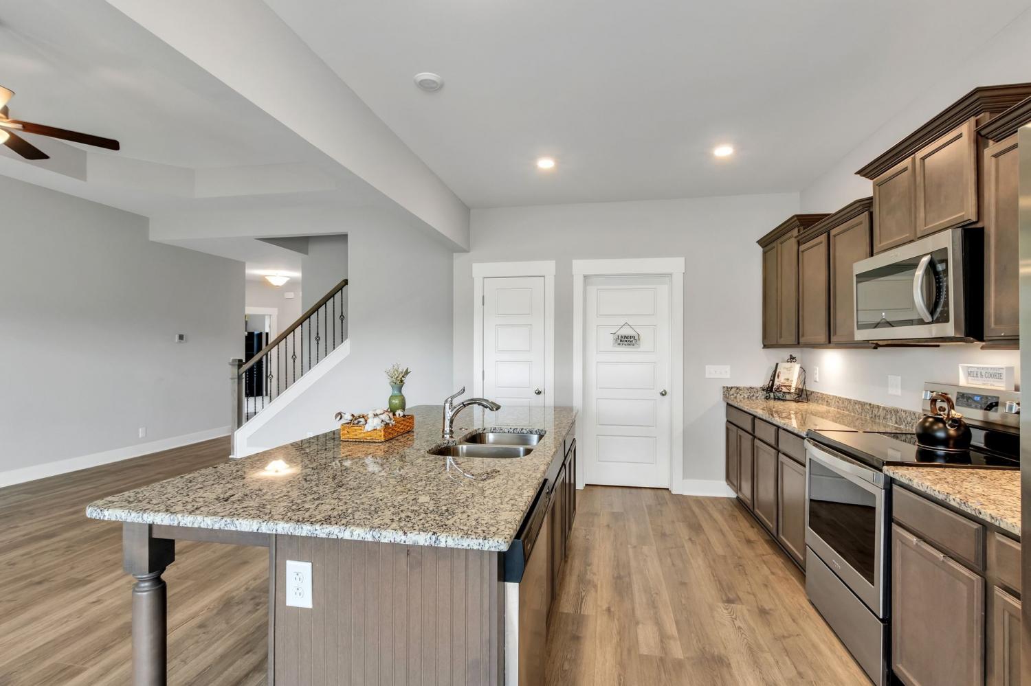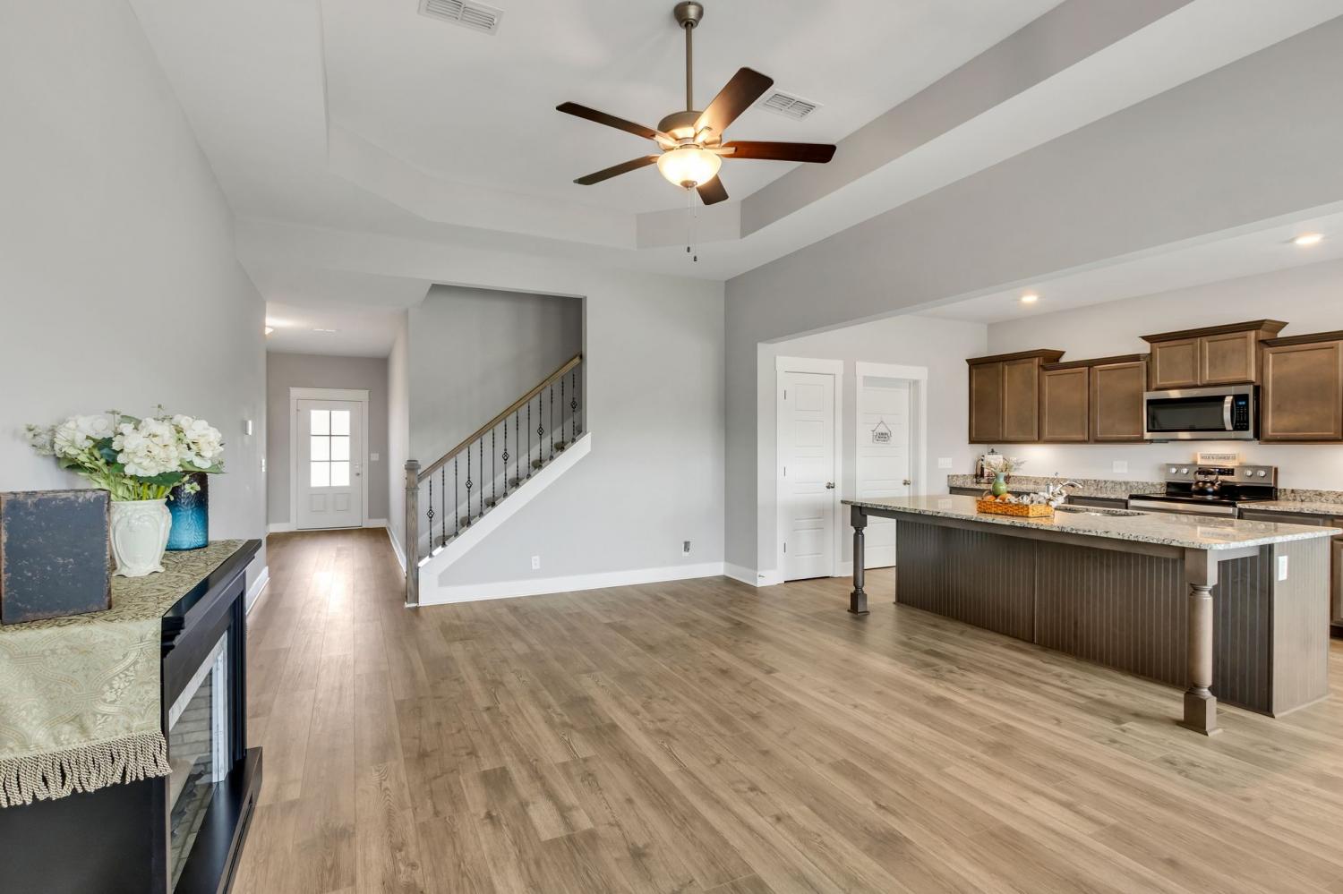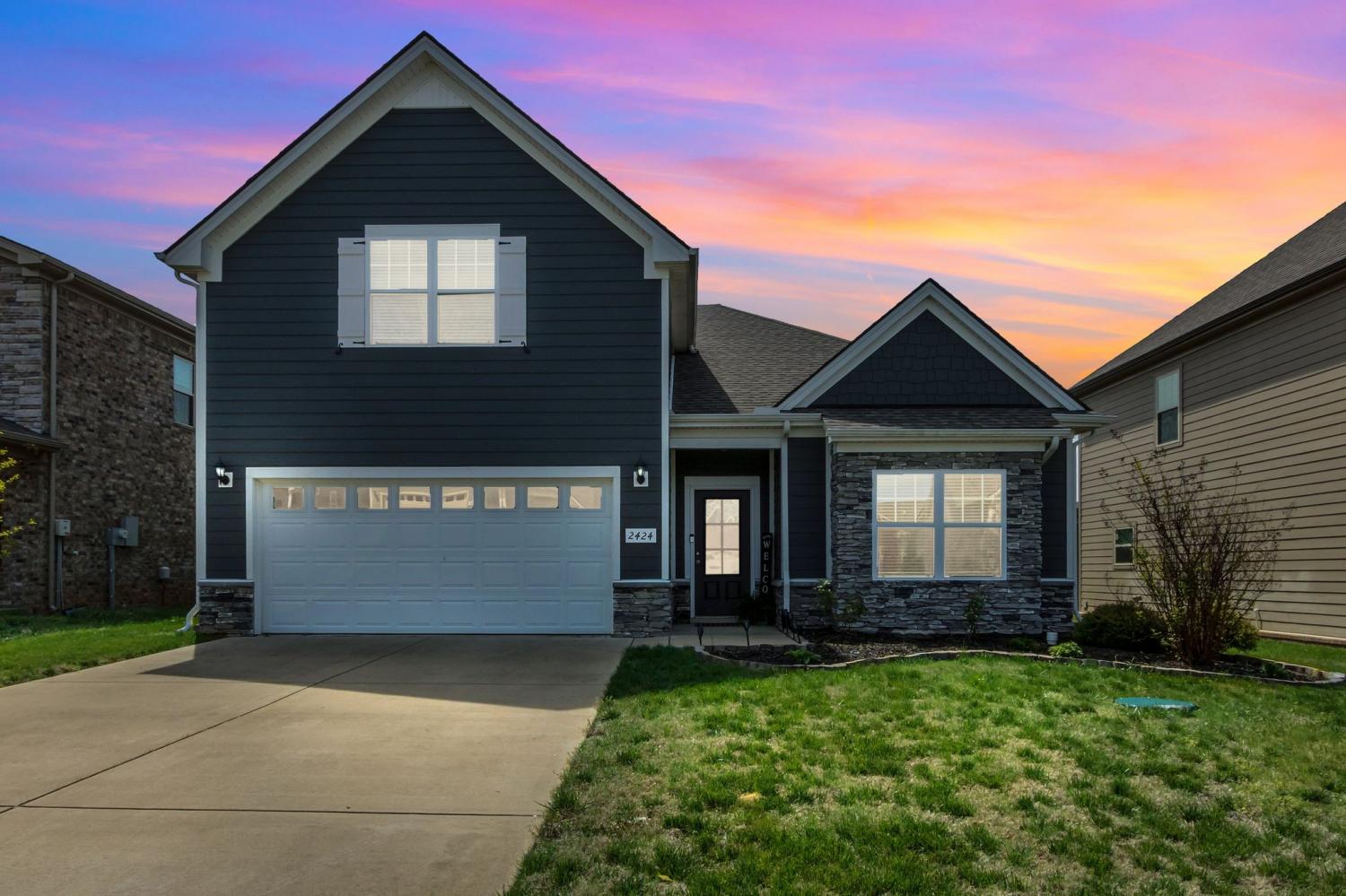 Welcome to this beautifully maintained home in the desirable Mankin Pointe community, offering the perfect blend of comfort, space, and convenience—just minutes to I-24 and only 10 minutes to Downtown Murfreesboro. This thoughtfully designed floor plan features an open-concept living area centered around a spacious kitchen with a large island—perfect for gathering, entertaining, or everyday living. The kitchen is equipped with granite countertops, stainless steel appliances, a pantry, and abundant storage. The primary suite is located on the main level, along with two additional bedrooms, providing a functional and flexible layout. Upstairs, you’ll find a generously sized bonus room with a full bathroom, ideal as a media room, guest suite, or potential 4th bedroom. Step outside to enjoy a covered patio with a 12x40 extended concrete pad—an ideal setup for outdoor living or creating your dream outdoor kitchen. The backyard backs up to a peaceful field, offering added privacy and a relaxing setting. Additional highlights include a 2-car garage, ample storage throughout, and a layout designed for both everyday comfort and entertaining.