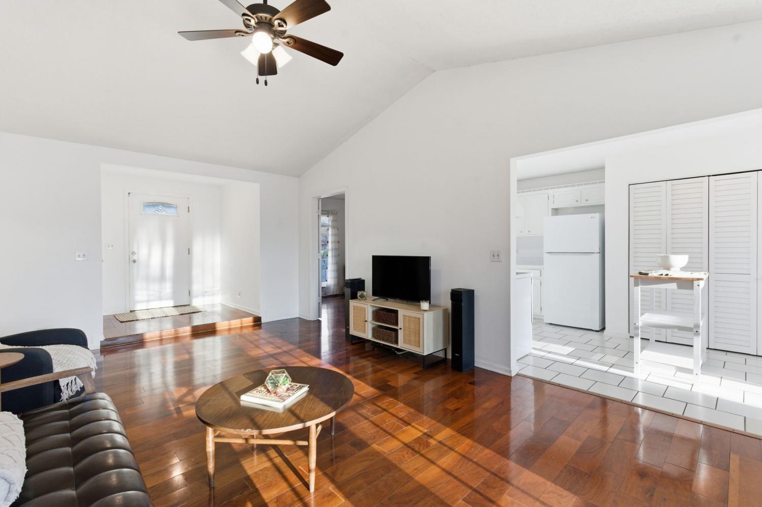 This one-level 3 bedroom, 2 bathroom is located just off of I-24's Harding exit with loads of essentials located nearby. Room for a DADU or garage! This property qualifies for a Grant up to $15,000 by Old National Bank! Plaza Mariachi, DegThai, Nashville Zoo, Sam's Club, wide variety of restaurants, and more are minutes away! It's less than half a mile from Providence Park which features a playground and walking trails. Enjoy coming home to your relaxing covered front porch. Step inside to the great room with extra high ceilings and loads of natural sunlight. The primary bedroom features a full bathroom with new vanity. There is also new flooring in the hallway full bathroom. The U-shaped kitchen makes it easy to cook in. New: refrigerator, dishwasher, garbage disposal, sump pump, crawl space encapsulation, water filtration, tankless water heater, and recent electrical updates. This home is move-in ready! With no carpet, it's also easy to clean. Relax outside on the freshly-painted deck that is just off of the great room and dining room. Out back you will find an attached storage/utility closet and a detached shed. No HOA. Don't miss out on this one!