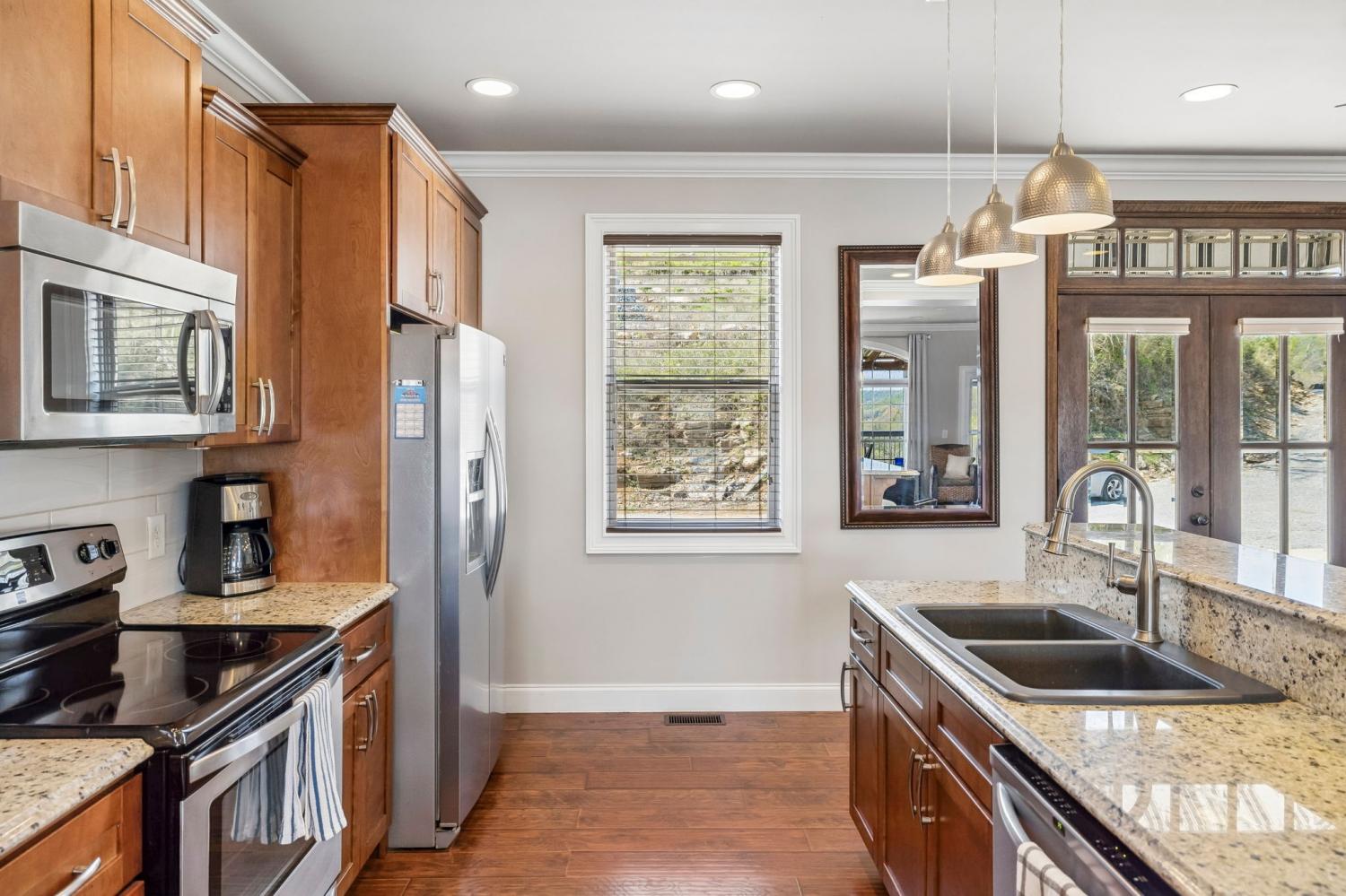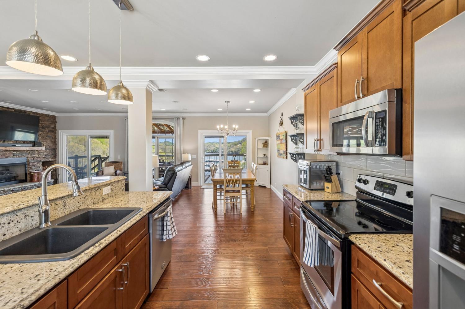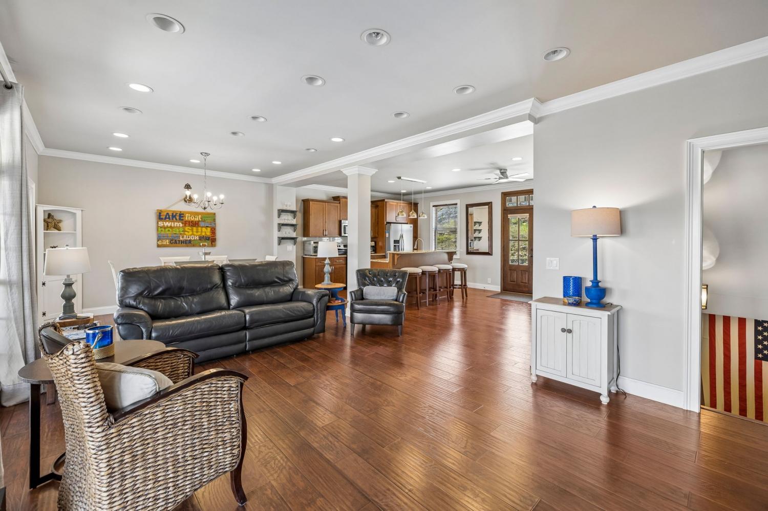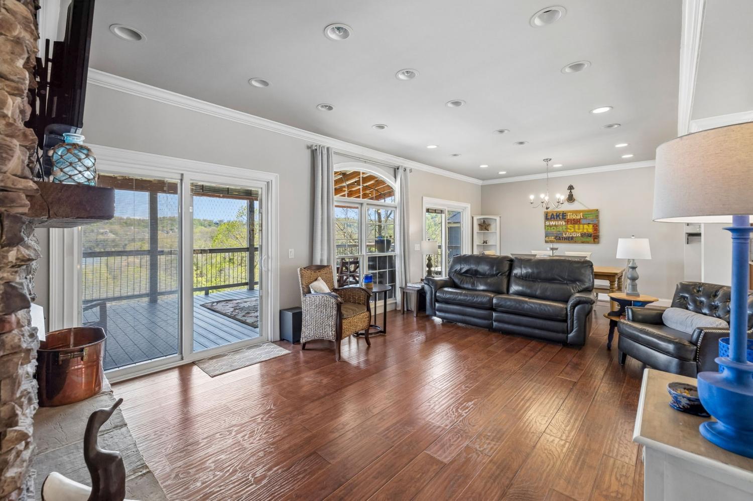 Welcome to lake living at its best in Blue Moon Ridge. Located just 2 minutes from the marina, this home offers a rare opportunity to hop on your golf cart, head down to the water, and be on your boat in minutes—something that’s hard to find anywhere else on Center Hill Lake. Inside, the main level features an open living area anchored by a beautiful stone fireplace, creating a warm and inviting space to gather. Natural light fills the home, and the layout is designed for both everyday living and weekend escapes. The home offers two suites, each with a full bath, providing ideal flexibility for guests or multi-family use. The basement includes two additional bathrooms, making it well-suited for entertaining, hosting, or creating a separate living space. Enjoy lake views from the multi-level decks, or unwind around the fire pit after a day on the water. Located in a quiet lake community with easy access to Center Hill Lake, this property offers a combination of location, layout, and lifestyle that is rarely available.