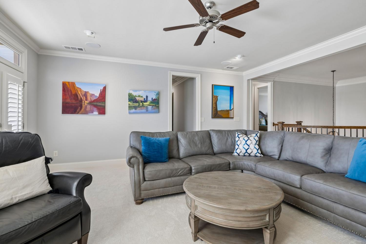 Fabulous 5 bedroom home in Westhaven w/ INCREDIBLE backyard ~ Julianne floorplan by Ford ~ 2 bedrooms / 2 full baths on main level ~ 3 beds, 3 full baths upstairs w/ 2 bonus rooms ~ Updated & Impeccable condition ~ Fresh Paint ~ New Carpet ~ Secondary bedroom on main level currently used as an office ~ Professional kitchen w/ new countertops, gas cooktop, double ovens, new cabinet hardware, butler's pantry as well as a walk in pantry ~ Spacious primary retreat w/ backyard views, his & her custom walk in California closets, new bathroom hardware & mirrors ~ Updated Laundry room ~ 3 car tandem garage ~ Living room opens to kitchen w/ built in bookshelves & fireplace ~ Coffered ceiling ~ Formal Dining ~ Wired for surround sound ~ Full covered backporch w/ gas fireplace & grilling station ~ Putting green ~ Outdoor Lighting ~ Irrigation ~ 382 sqft walk in storage ~ Upper level porch w/ retractable awning ~ Renovated secondary bath ~ Roman shades & Plantation shutters ~ Lush landscaping
