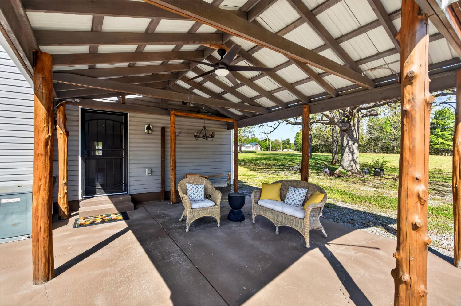 Freshly renovated and reimagined, this home sits on two beautiful, flat acres with a park-like feel ready to fulfill your homesteading dreams. The layout was rebuilt with intention, featuring a new kitchen, updated finishes throughout, and a light-filled bedroom, truly move-in ready. Outside, covered front and back porches give you plenty of places to unwind. The showstopper is the custom-built outdoor pavilion complete with electricity, running water, a refrigerator, cooktop, and lighting, an entertainer's dream and a fully functional outdoor living space year-round. A greenhouse, chicken coop, storage shed, and storm shelter with electricity round out a property built for the homesteader, the hobby farmer, or anyone craving space and self-sufficiency. The flat, manicured acreage offers plenty of room to expand, garden, or add additional structures down the road. Whether you're looking to grow your own food, raise animals, or simply have room to breathe, this property delivers. And when you're ready to venture out, you're just 10 minutes from MTSU, coffee shops, restaurants, grocery stores, and everything Murfreesboro has to offer. No city taxes. No HOA. Just land, space, and a lifestyle that's hard to find this close to town. Properties like this simply don't come around often.
