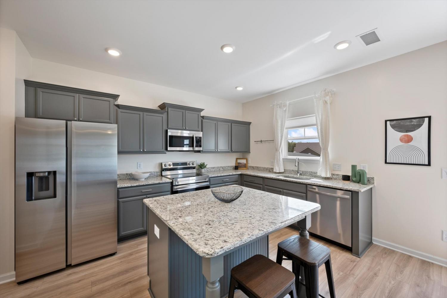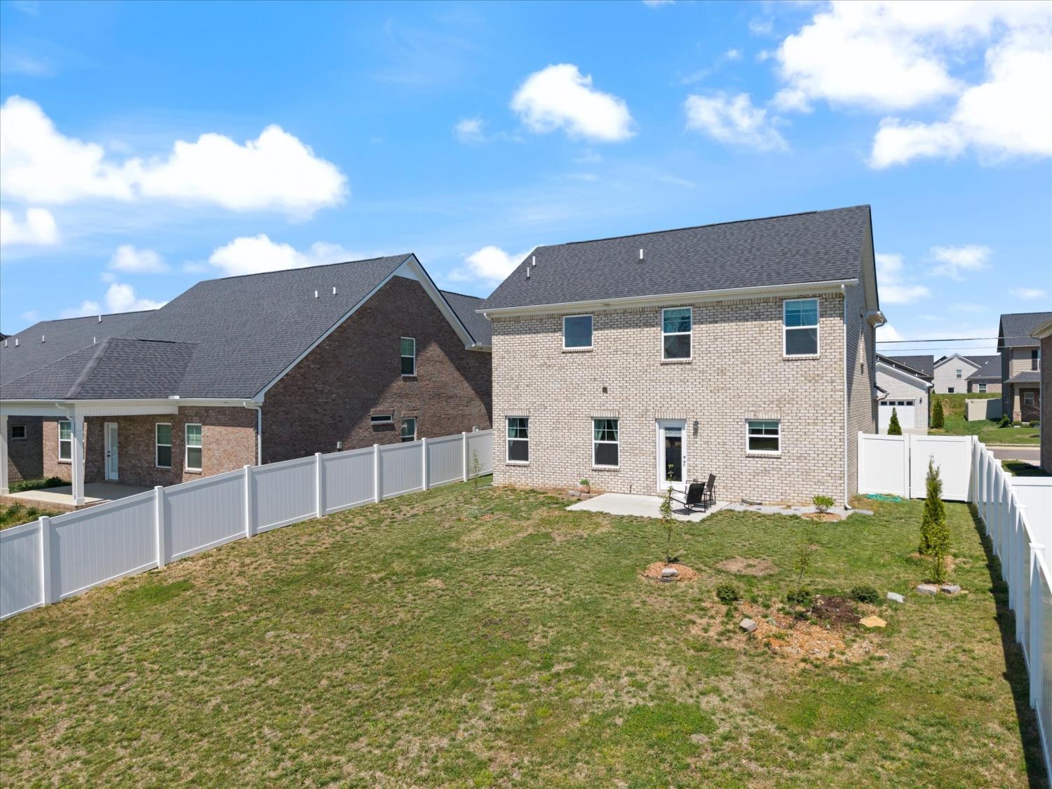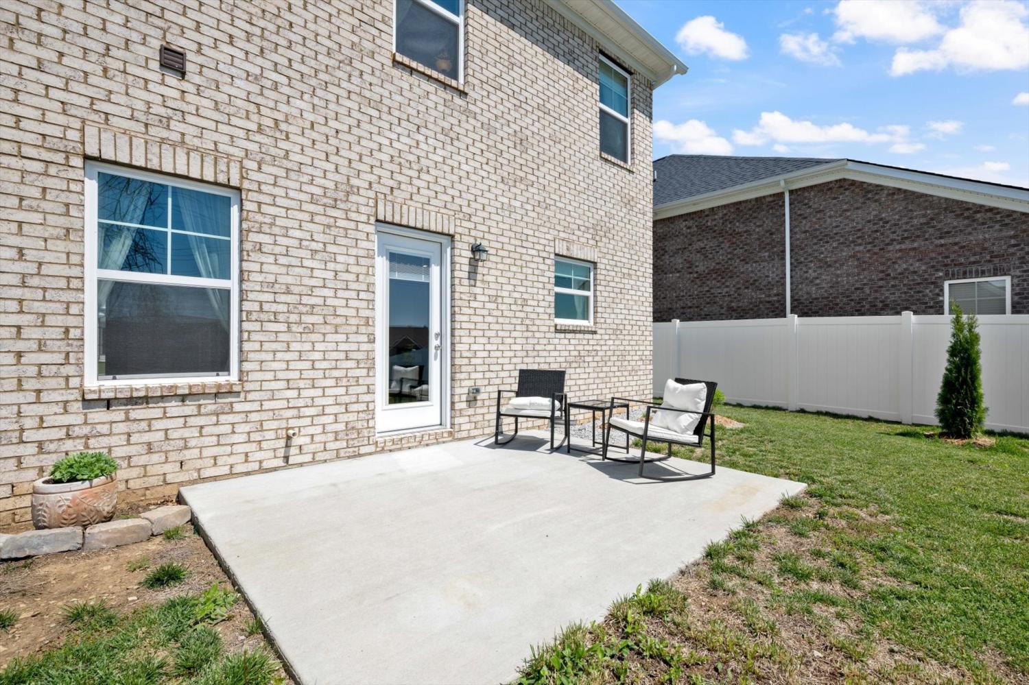 Move-in ready with a backyard that truly sets this home apart! From the welcoming front porch to the expansive outdoor space, this home is designed for both relaxing and entertaining. The flat, fully fenced backyard offers endless possibilities—perfect for play, pets, or creating your own outdoor retreat, with added trees for a more private feel. Inside, a bright foyer opens to an open-concept floor plan designed for everyday living and hosting. All bedrooms are impressively large—easily accommodating king-size beds plus additional space for seating, play, or work-from-home needs. The spacious primary suite features a walk-in shower and double vanities. The kitchen shines with a large island, pantry, and stainless steel appliances. A generous laundry room provides excellent storage and folding space. Blinds and drapery throughout the home will remain, adding a soft, cozy feel that makes the space feel instantly like home. Enjoy sidewalks, multiple playgrounds, and a neighborhood pool just minutes away, along with convenient access to shopping and dining.