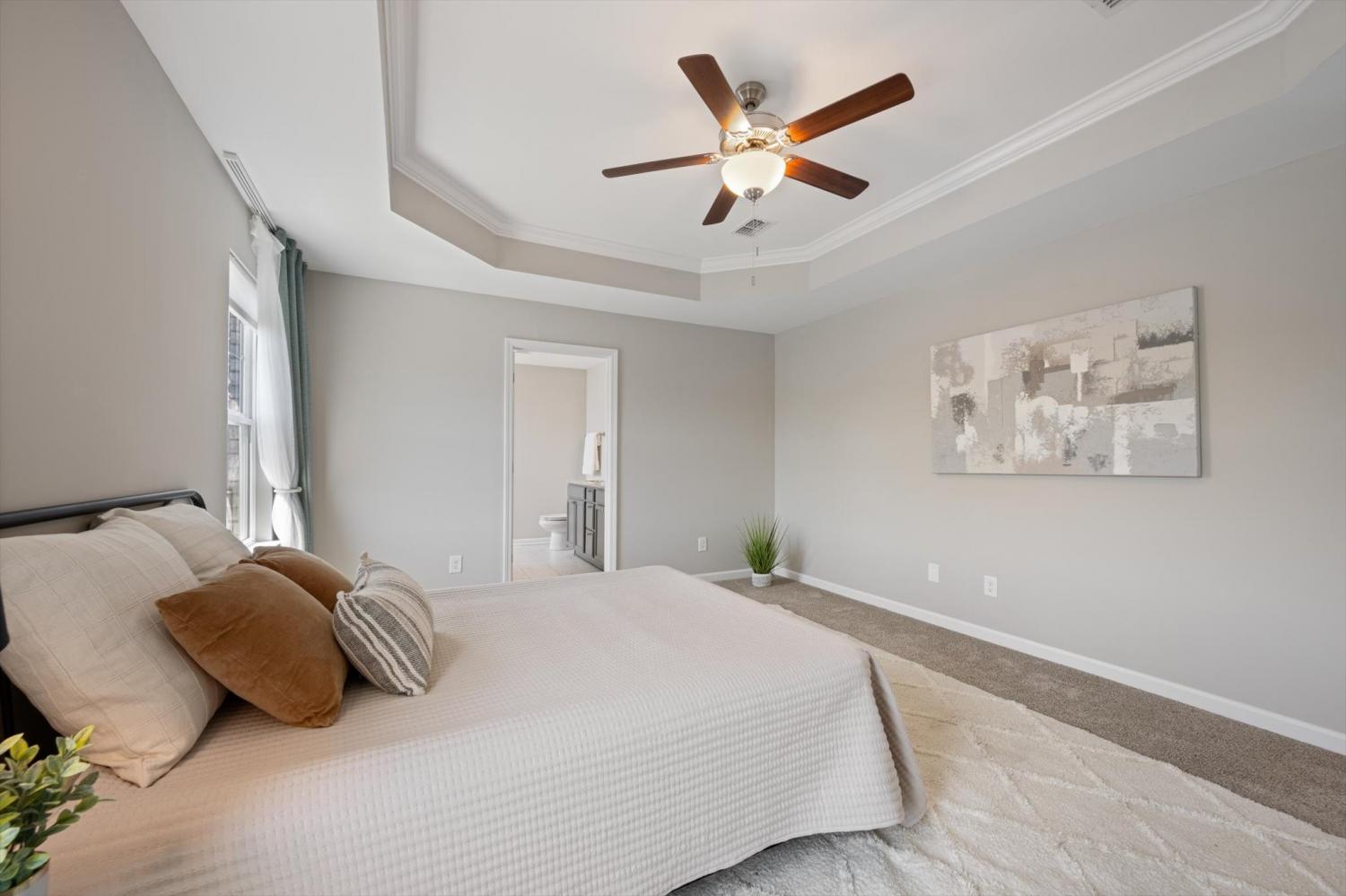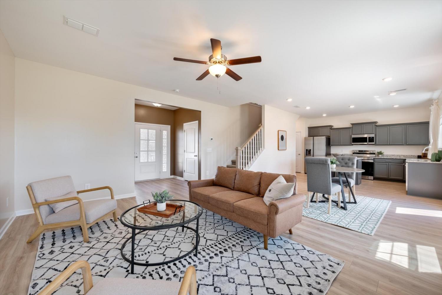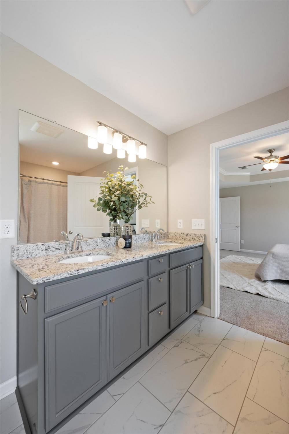 Move-in ready with a backyard that truly sets this home apart! From the welcoming front porch to the expansive outdoor space, this home is designed for both relaxing and entertaining. The flat, fully fenced backyard offers endless possibilities—perfect for play, pets, or creating your own outdoor retreat, with added trees for a more private feel. Inside, a bright foyer opens to an open-concept floor plan designed for everyday living and hosting. All bedrooms are impressively large—easily accommodating king-size beds plus additional space for seating, play, or work-from-home needs. The spacious primary suite features a walk-in shower and double vanities. The kitchen shines with a large island, pantry, and stainless steel appliances. A generous laundry room provides excellent storage and folding space. Blinds and drapery throughout the home will remain, adding a soft, cozy feel that makes the space feel instantly like home. Enjoy sidewalks, multiple playgrounds, and a neighborhood pool just minutes away, along with convenient access to shopping and dining.