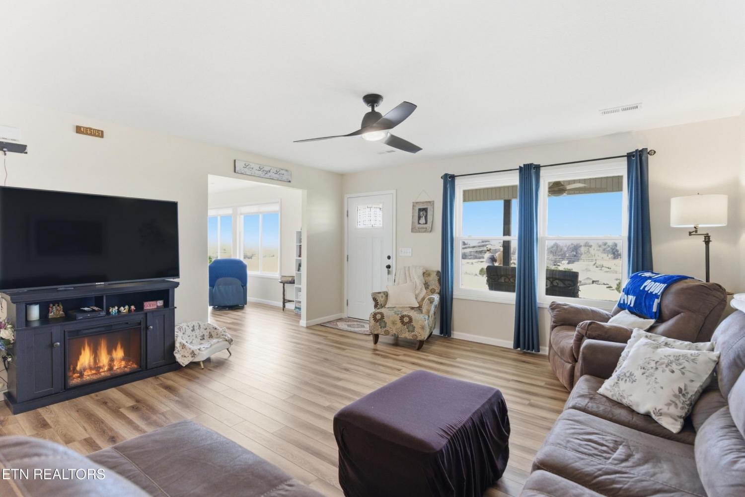 A RARE FIND!!! AN ALMOST NEW RANCHER SITUATED ON APPROXIMATELY A 5-ACRE LOT! This home has a gated entrance with Mountain Views and Lots of Room to Build or Expand! Zoned PR (2.5) or can be Rezoned to Agricultural thru Knox Co., This Ranch-type home is all on one level, with wheelchair accessible doorways and no steps to climb. It is a Split Floor Plan with 3 Bedrooms, 2.5 Bathrooms, and an Open Concept Design with Kitchen Island, Pantry, Family Room with Mountain Views, Laundry Room with Utility Sink, All LVP Flooring (No Carpet), 3 Car Garage and an Outdoor Patio. This Beautiful Home is located in the Gibbs/ Stormer Area and is a MUST SEE!