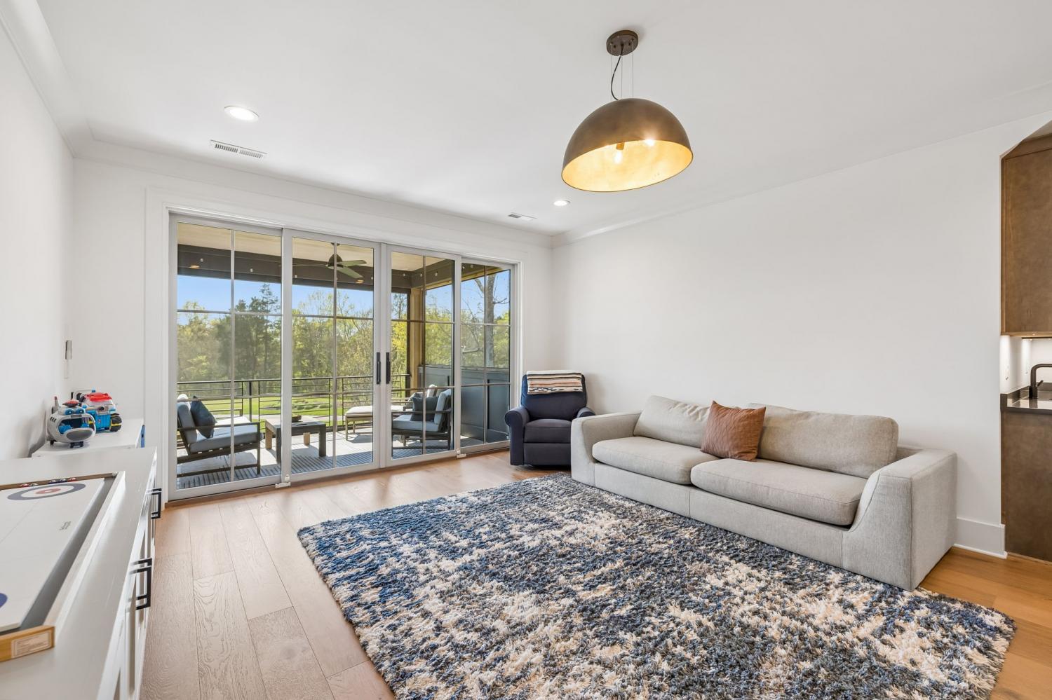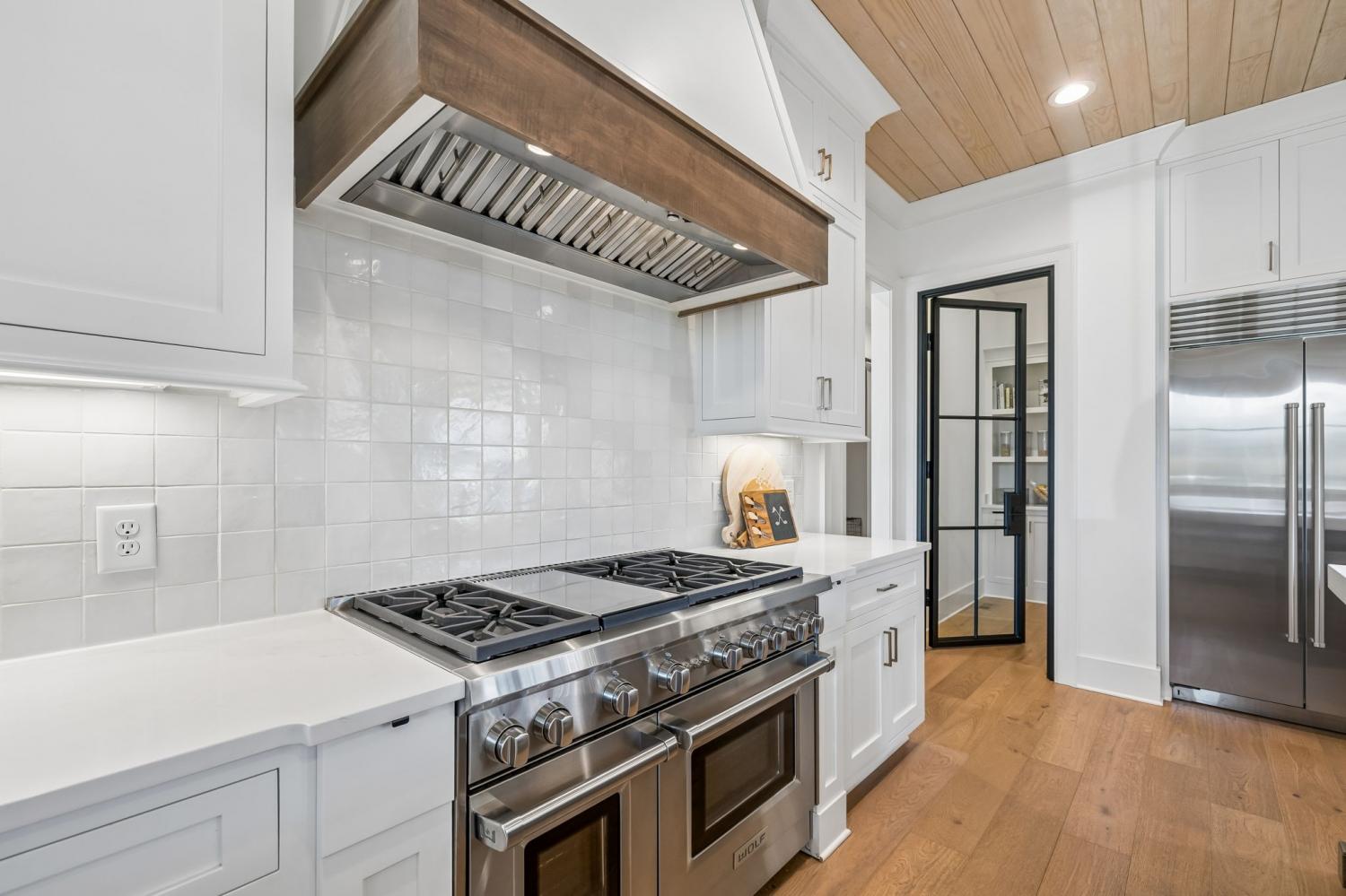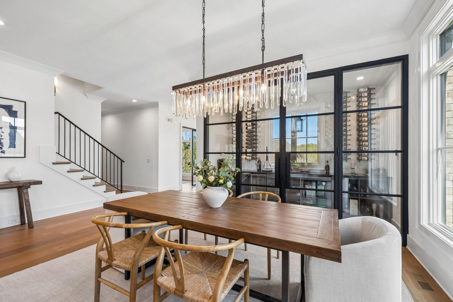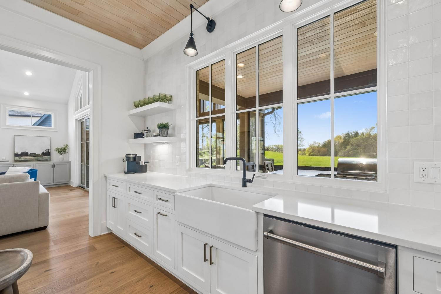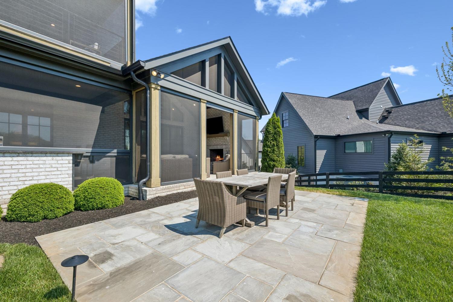 Gracefully positioned on Hole #4 of the prestigious Troubadour Championship Golf Course, this exceptional luxury residence offers refined design, thoughtful craftsmanship, and breathtaking golf course views. The open‑concept main level is anchored by a stunning chef’s kitchen featuring a substantial island with custom wood cabinetry, quartz countertops, professional‑grade appliances, designer lighting, and an inviting beamed tongue‑and‑groove ceiling. The kitchen flows seamlessly into the light‑filled living area, where soaring ceilings, exposed beams, a gas fireplace with custom surround, and expansive windows frame the panoramic fairway views. Designed for effortless entertaining, the home includes a striking glass‑enclosed wine room with custom racking, beverage refrigeration, and stone countertops. Sliding glass doors extend the living space outdoors to a covered, screened porch with a fireplace and serene views of the course and surrounding landscape, perfect for year‑round enjoyment. The main‑level primary suite is a private retreat, highlighted by vaulted ceilings, exposed beams, and wall‑to‑wall windows overlooking the lush grounds. The spa‑inspired en suite bath offers timeless finishes, and the expansive custom walk‑in closet features a center island and built‑in storage. Additional spaces include a beautifully designed office or flex room with custom cabinetry and shelving, a spacious laundry room with abundant cabinetry, and high‑end finishes throughout. Outdoor living is elevated by a meticulously landscaped backyard with stone fire pit, ideal for gathering under the stars while enjoying sweeping golf course views. The fully finished basement provides a generous extension of the living space, offering exceptional flexibility for recreation, media, fitness, or additional entertaining. With its elegant exterior, exceptional indoor‑outdoor flow, and premier Troubadour location, this home offers a rare opportunity to experience luxury living at its finest.