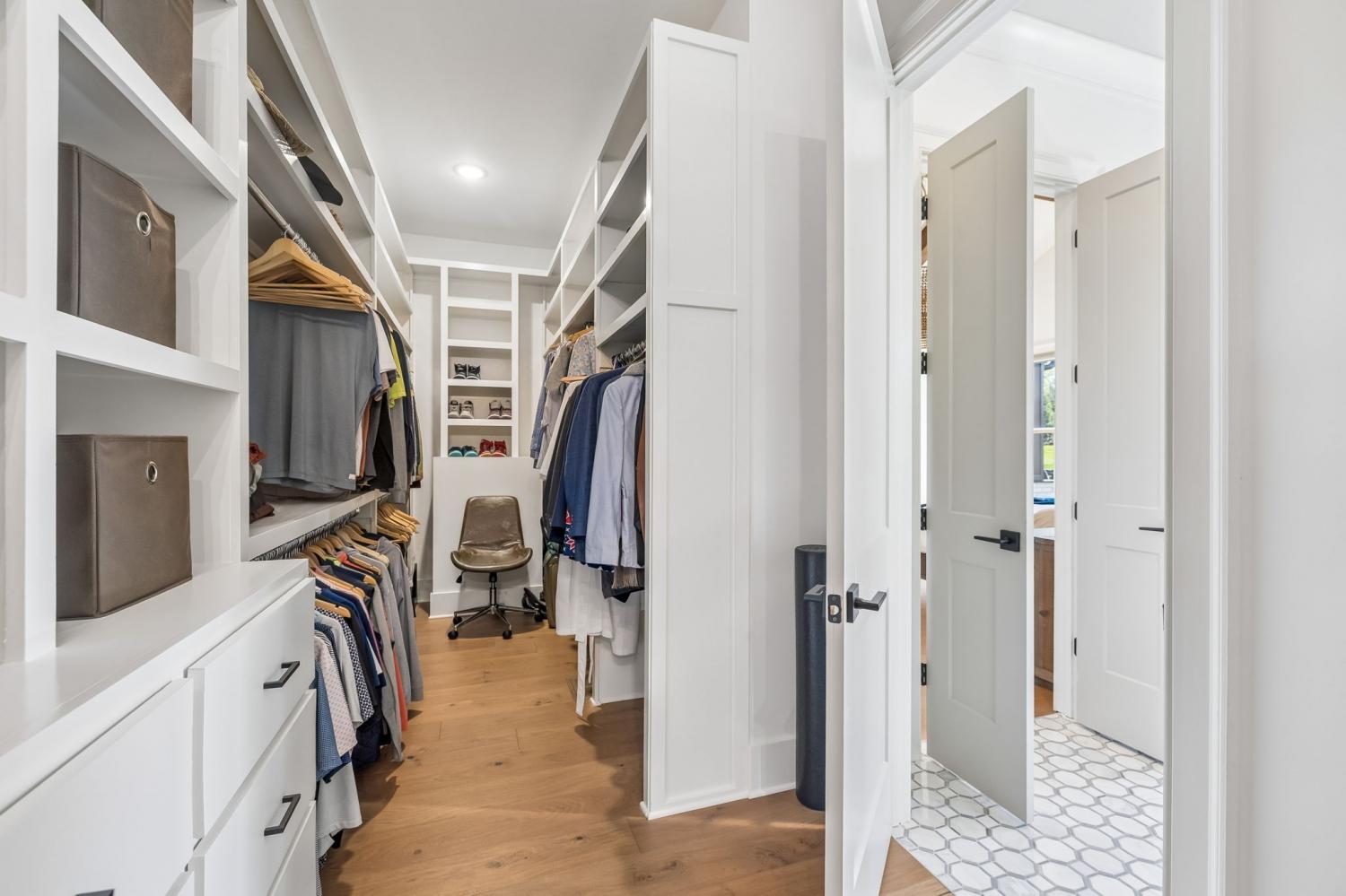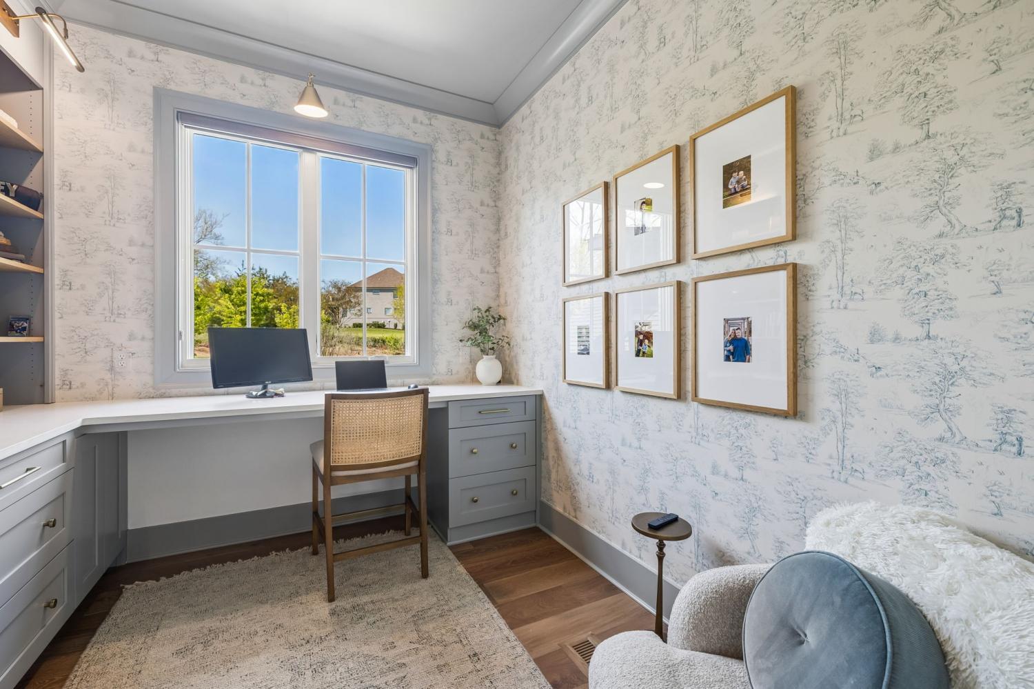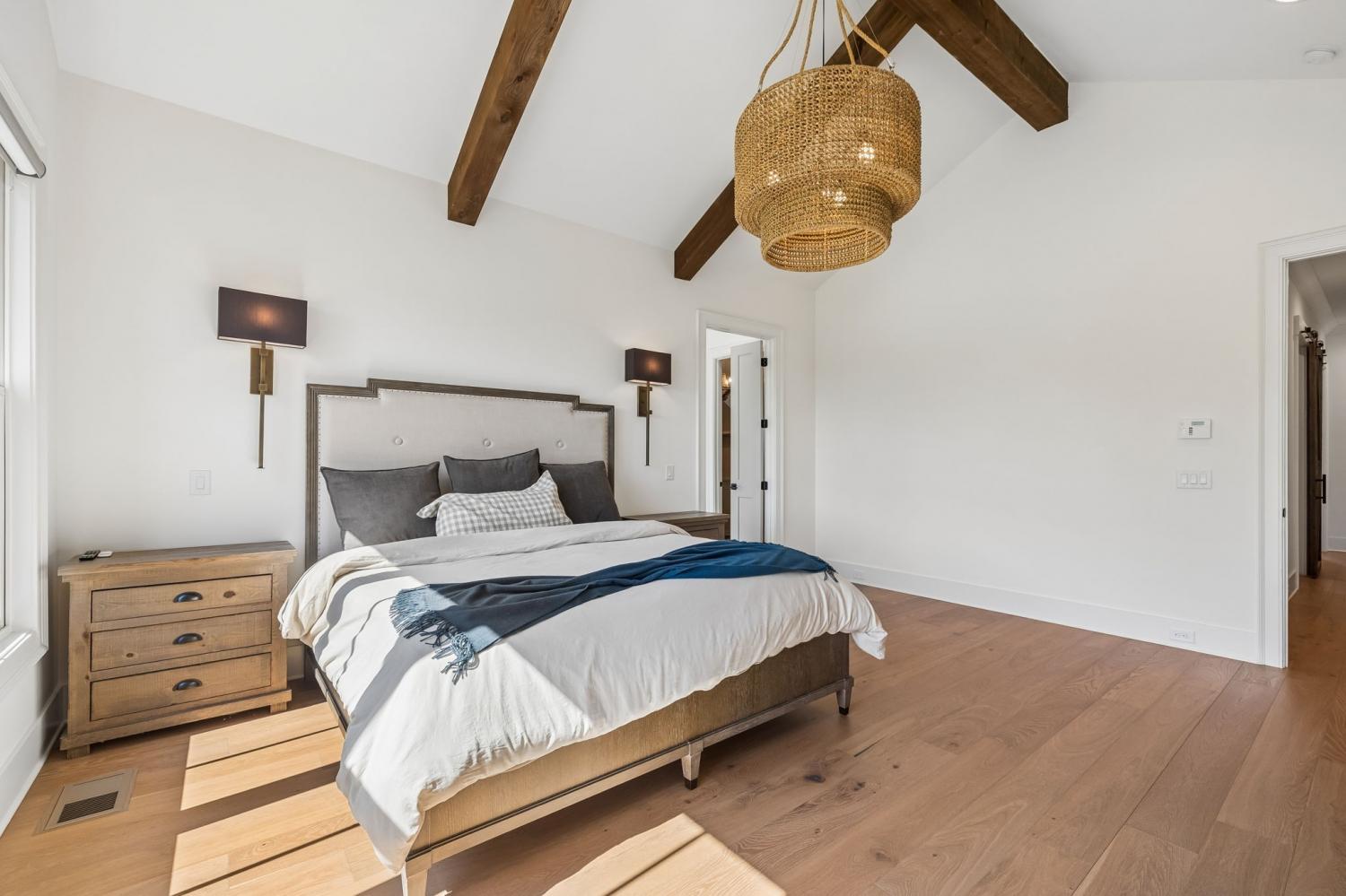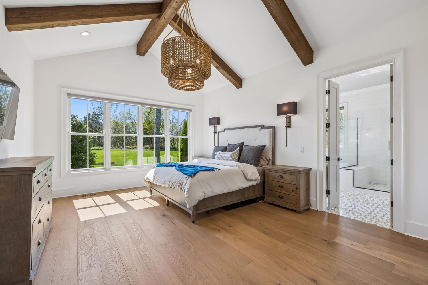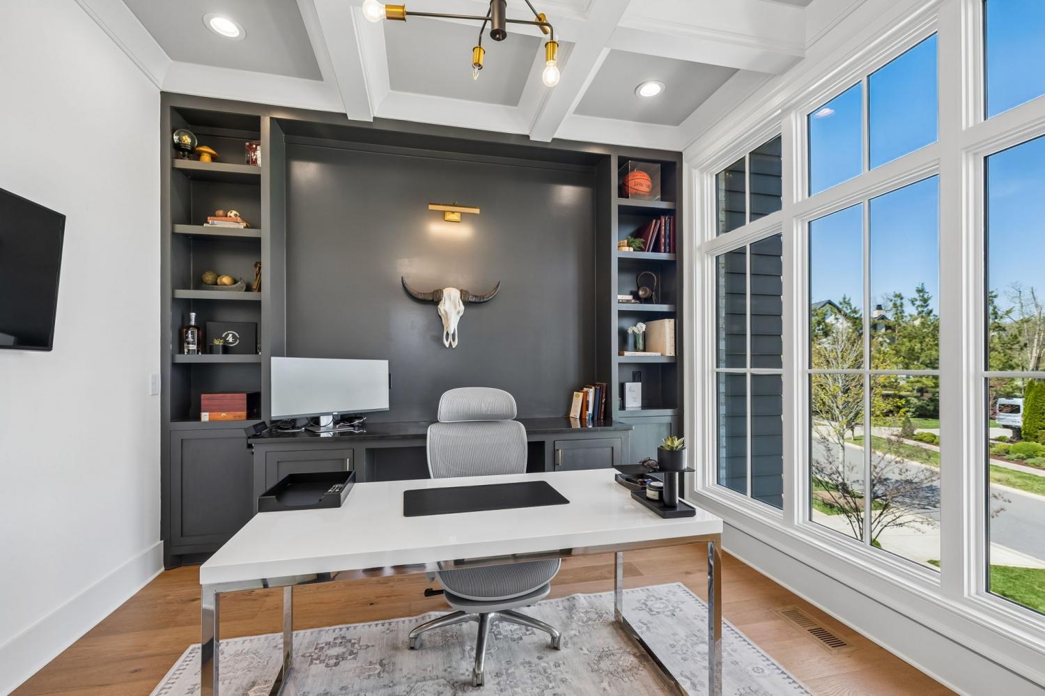Gracefully positioned on Hole #4 of the prestigious Troubadour Championship Golf Course, this exceptional luxury residence offers refined design, thoughtful craftsmanship, and breathtaking golf course views. The open‑concept main level is anchored by a stunning chef’s kitchen featuring a substantial island with custom wood cabinetry, quartz countertops, professional‑grade appliances, designer lighting, and an inviting beamed tongue‑and‑groove ceiling. The kitchen flows seamlessly into the light‑filled living area, where soaring ceilings, exposed beams, a gas fireplace with custom surround, and expansive windows frame the panoramic fairway views. Designed for effortless entertaining, the home includes a striking glass‑enclosed wine room with custom racking, beverage refrigeration, and stone countertops. Sliding glass doors extend the living space outdoors to a covered, screened porch with a fireplace and serene views of the course and surrounding landscape, perfect for year‑round enjoyment. The main‑level primary suite is a private retreat, highlighted by vaulted ceilings, exposed beams, and wall‑to‑wall windows overlooking the lush grounds. The spa‑inspired en suite bath offers timeless finishes, and the expansive custom walk‑in closet features a center island and built‑in storage. Additional spaces include a beautifully designed office or flex room with custom cabinetry and shelving, a spacious laundry room with abundant cabinetry, and high‑end finishes throughout. Outdoor living is elevated by a meticulously landscaped backyard with stone fire pit, ideal for gathering under the stars while enjoying sweeping golf course views. The fully finished basement provides a generous extension of the living space, offering exceptional flexibility for recreation, media, fitness, or additional entertaining. With its elegant exterior, exceptional indoor‑outdoor flow, and premier Troubadour location, this home offers a rare opportunity to experience luxury living at its finest.