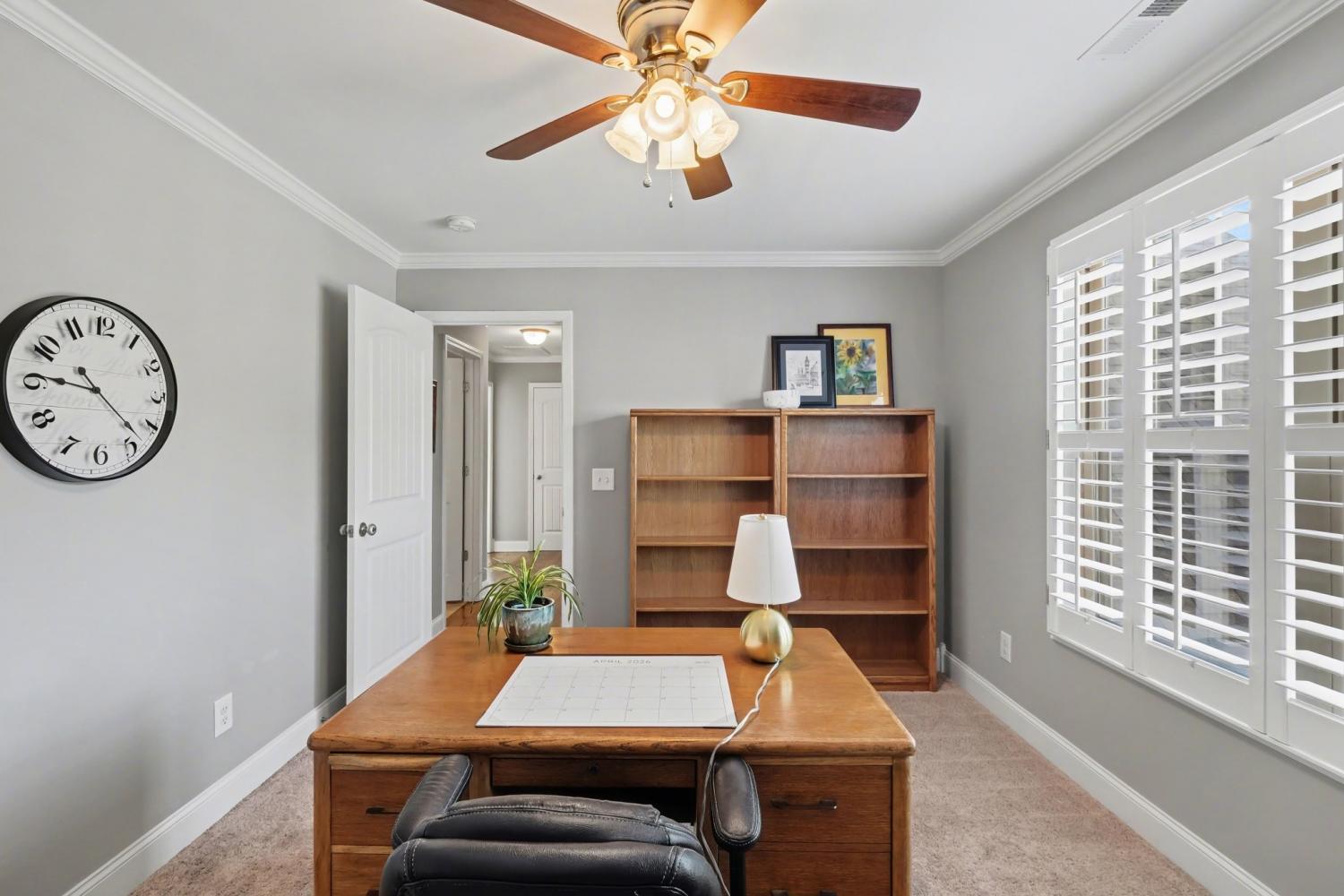 Absolutely stunning and *IMPECCABLY* maintained, this custom all brick home located in the heart of Spring Hill is the one you've been waiting for! One owner and lightly lived in. Vaulted ceilings, wainscoting, built-in bookcases, brick fireplace, plantation shutters (whole home!), front and rear yard irrigation, white oak hardwood floors, custom closets, walk-in pantry, stainless steel appliances (all 1 yr old & refrigerator included), crown molding, covered patio, fenced yard, and so much more. 1st floor Master Suite AND secondary bedroom with full bathroom. With french privacy doors, the large bonus/flex space is truly multipurpose- entertaining, homeschooling, office, craft room, game room, or additional bedroom space. Buyer/Buyer's Agent to verify all pertinent information. *Home has been professionally measured for accurate square footage. See documents section.