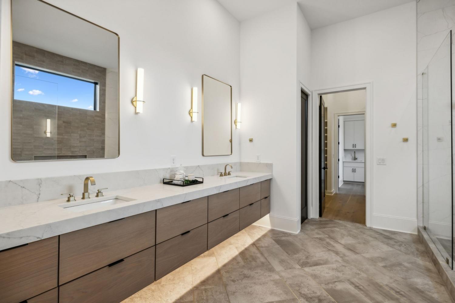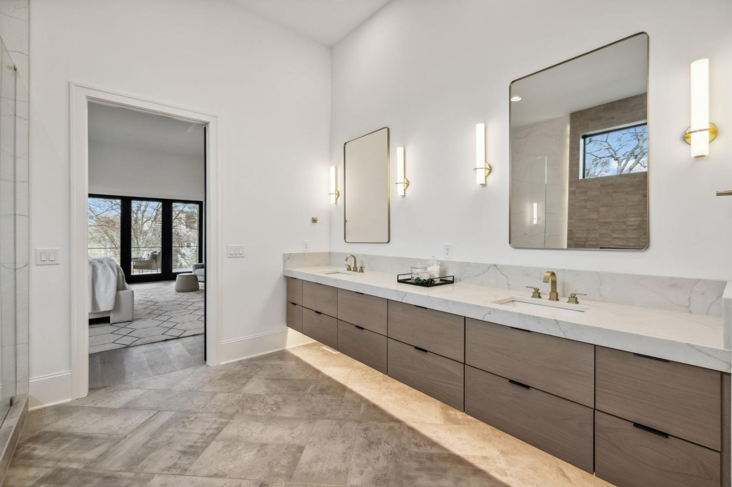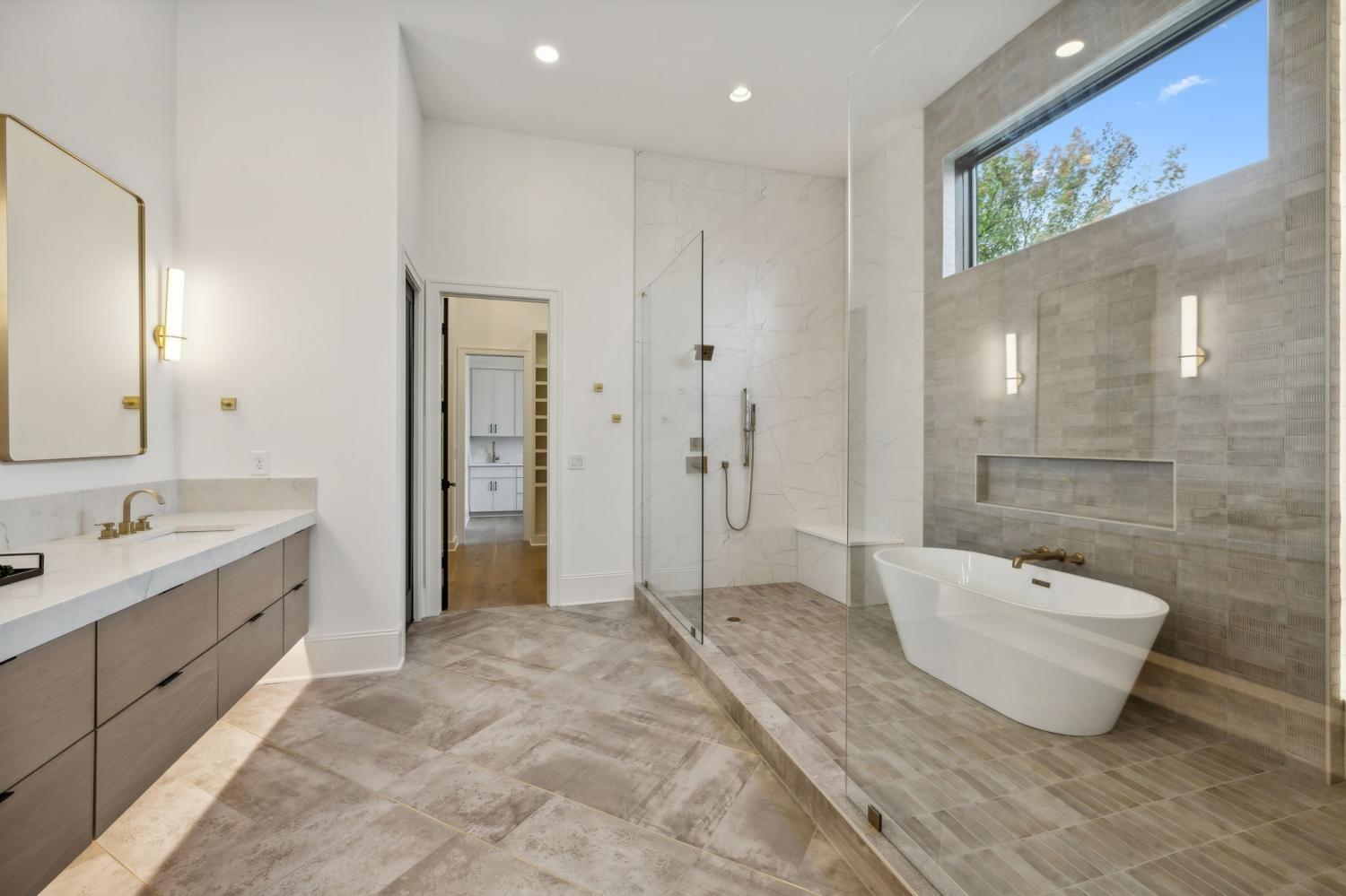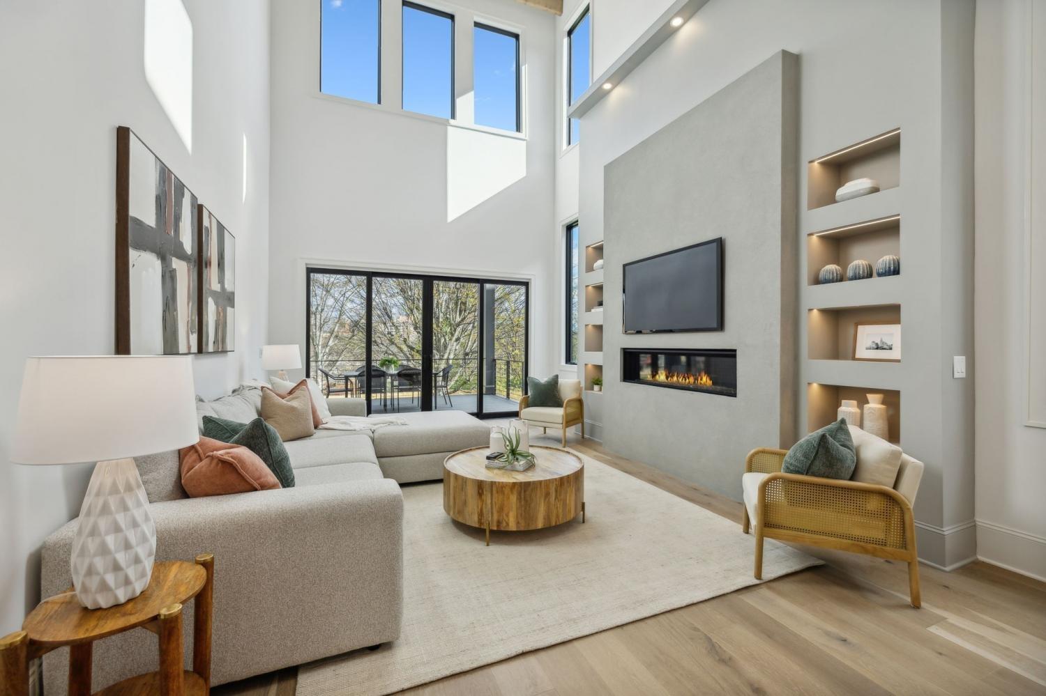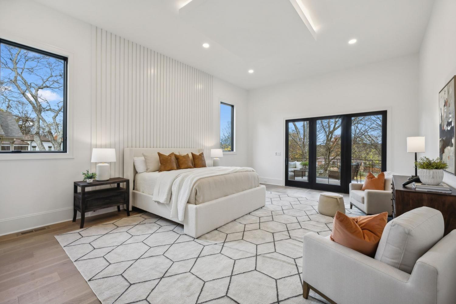 Back on the market due to buyer financing. Contemporary new build with 2-story, open ceilings & premium finishes on extra large lot. Amazing chef's kitchen featuring Thermador appliances, full-slab backsplash w pot filler, custom vent hood, cabinet-front fridge & freezer, butler's pantry with ice maker, beverage center & prep area. Massive primary suite on main floor with a must-see walk-in shower & soaking tub, plus large custom walk-in closet. This home includes 5 well-appointed bedrooms with 5 full baths. The lower level has flex spaces for nanny suite, teen suite, home gym, media, home business, etc etc. The main level rear deck also has multiple spaces for dining and cozy privacy off the primary suite & 2-sided outdoor gas fireplace, perfect for cold evenings. All this and more on a super-deep 1/2 acre lot - perfect for a pool and walking distance to Green Hills Mall, YMCA, Hill Center, etc.